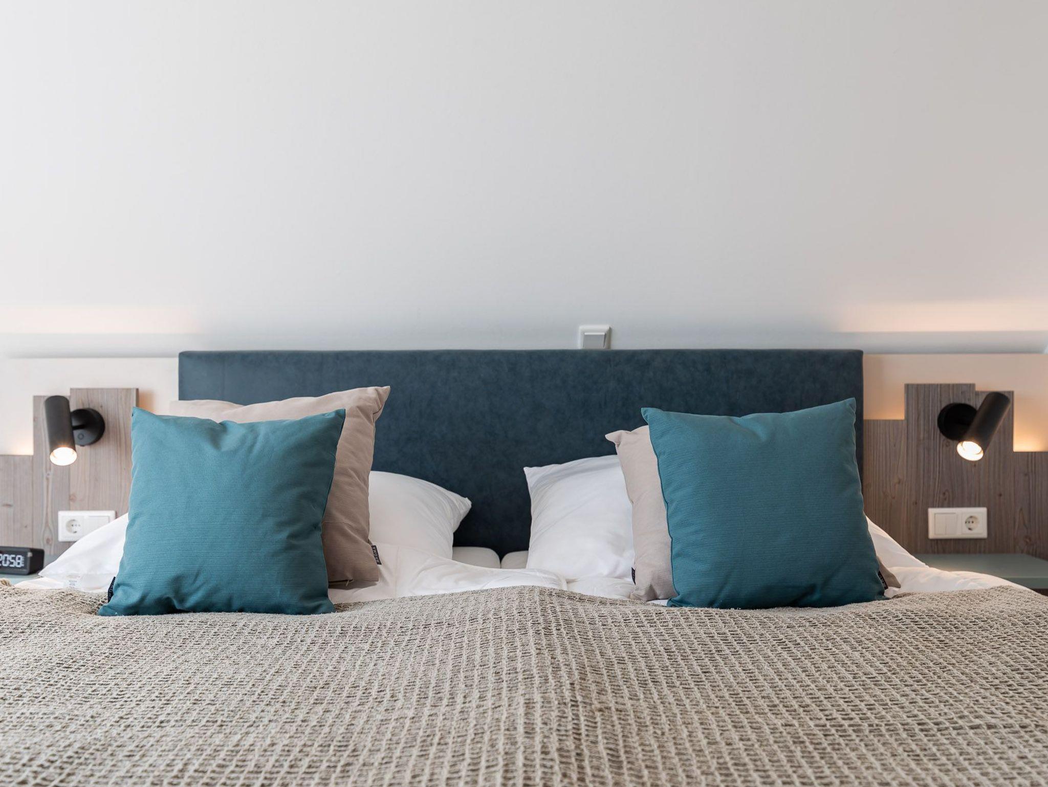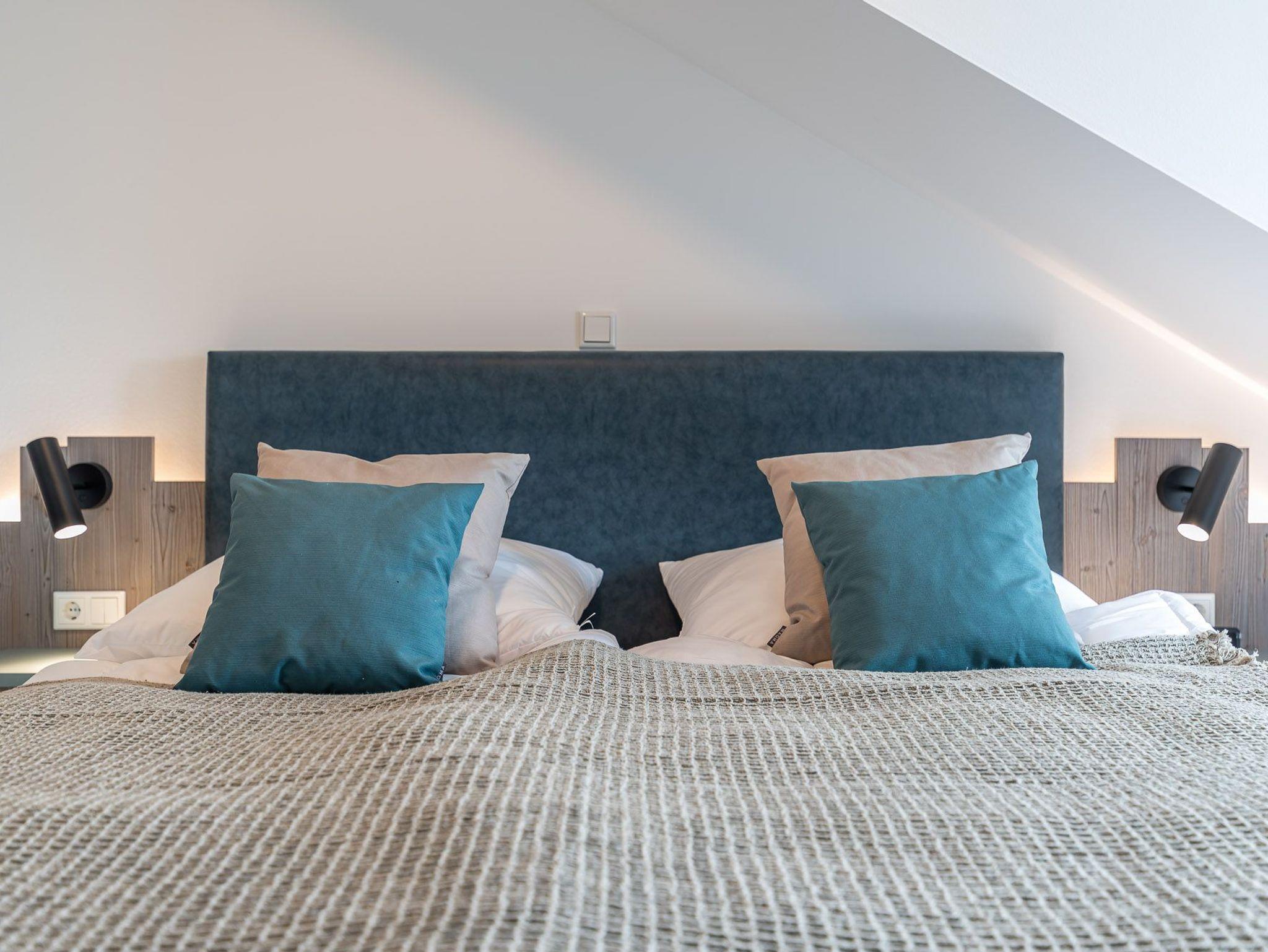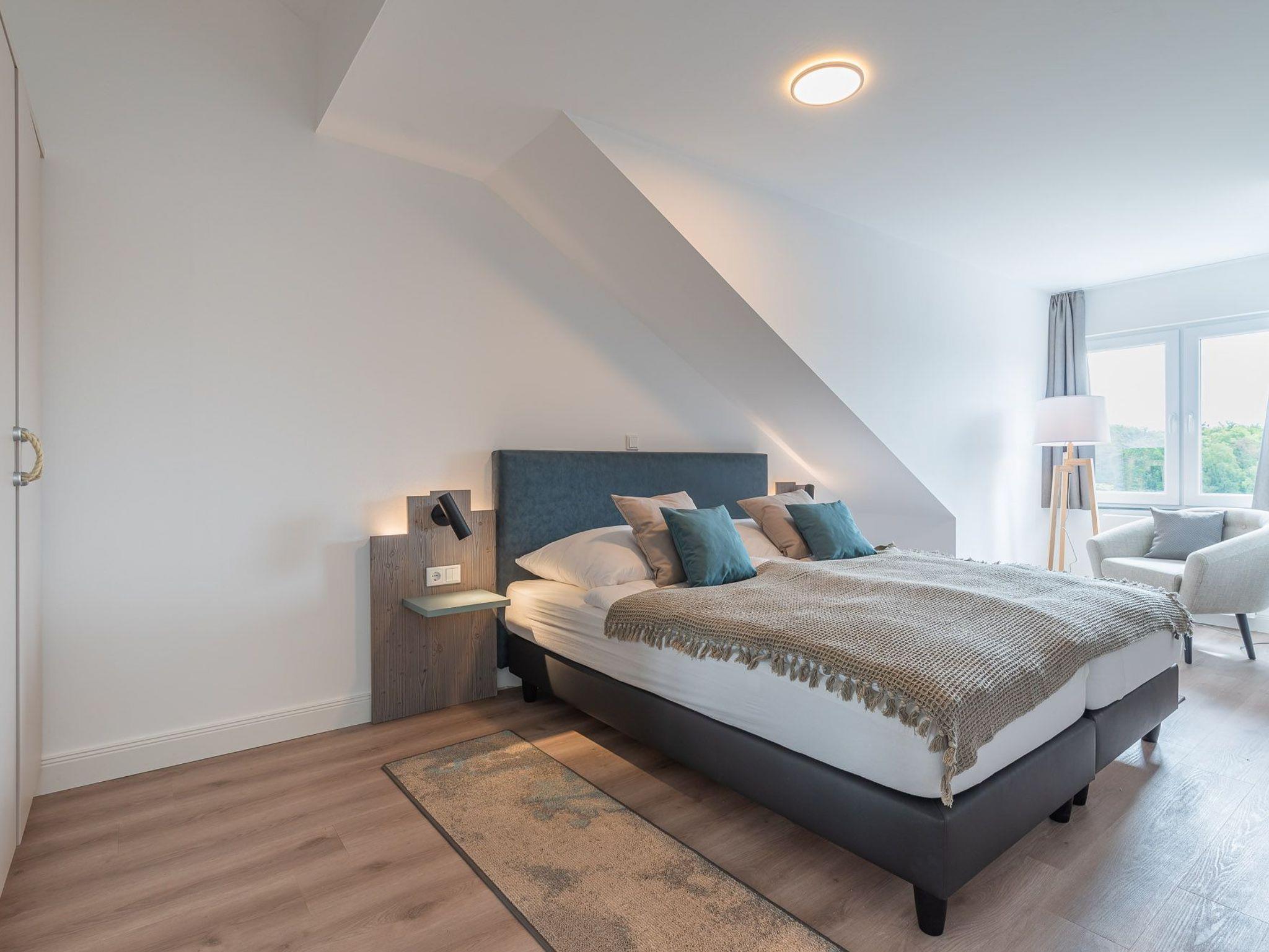 Die zwei Schlafzimmer verfügen jeweils über ein 1,80 x 2,00 m Bett, sowie über einen Kleiderschrank und ein TV-Gerät. Des Weiteren stehen Ihnen 2 Schlafcouchen, eine im Wohnbereich und eine im Schlafzimmer (1,50mx1,95m) zur Verfügung. Für unsere kleinen Gäste können ein Kinderreisebett und ein Kinderhochstuhl bereitgestellt werden (kostenpflichtig zu buchbar).