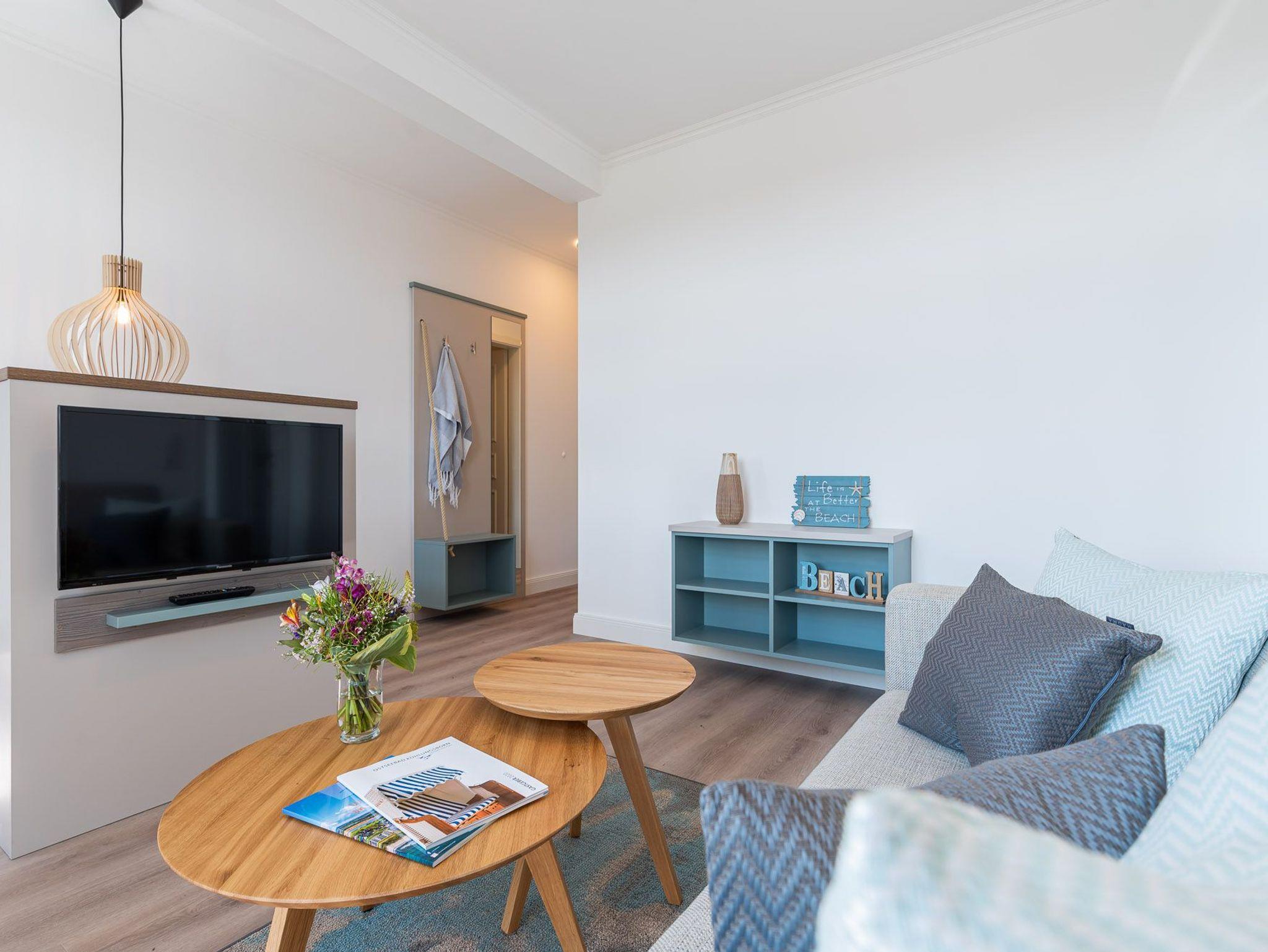 Das Apartment bietet mit seinen zwei Zimmern genügend Platz für 4 Personen. Außerdem verfügt es neben seiner Wohnfläche von ca. 44 qm auch über einen Balkon. Dieser ist mit Balkonmöbeln und einem Sonnenschirm ausgestattet.