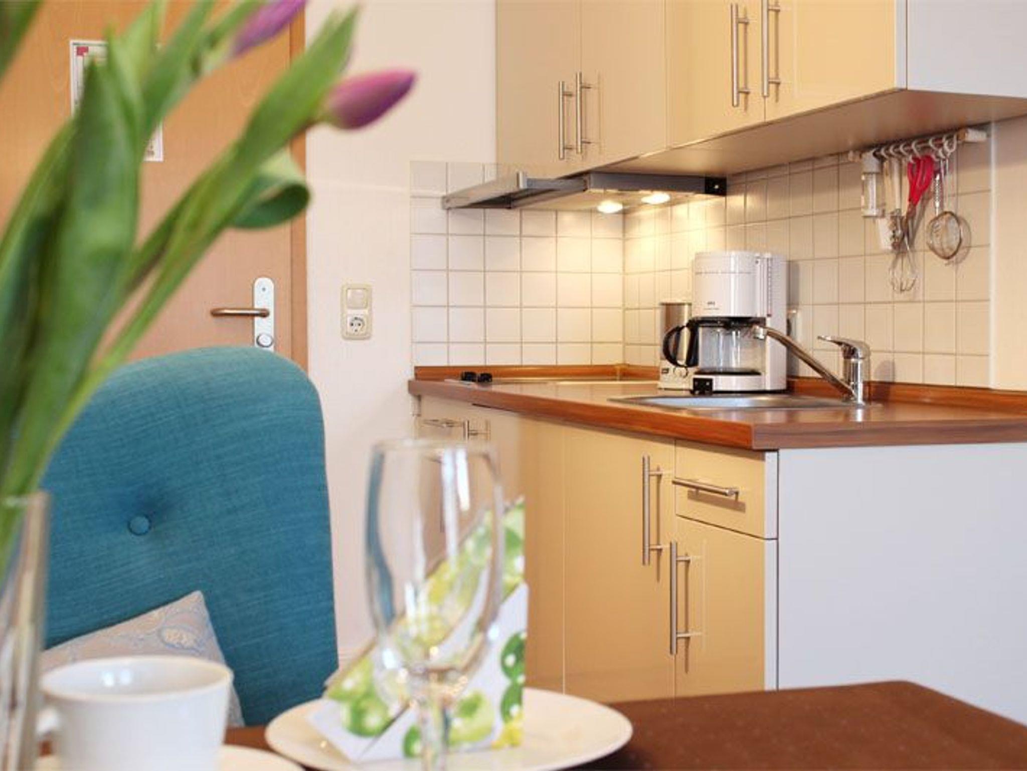 In einigen Appartements steht im Schlafzimmer zusätzlich eine Polsterliege, die Schlafcouch im Wohnzimmer ermöglicht auf Anfrage eine Aufbettung. Zur Ausstattung der Küchenzeilen gehören Geschirrspüler, Kochfelder, Kühlschrank mit Gefrierfach, Kaffeemaschine, Toaster und Wasserkocher, teilweise zusätzlich Mikrowelle und Backofen.