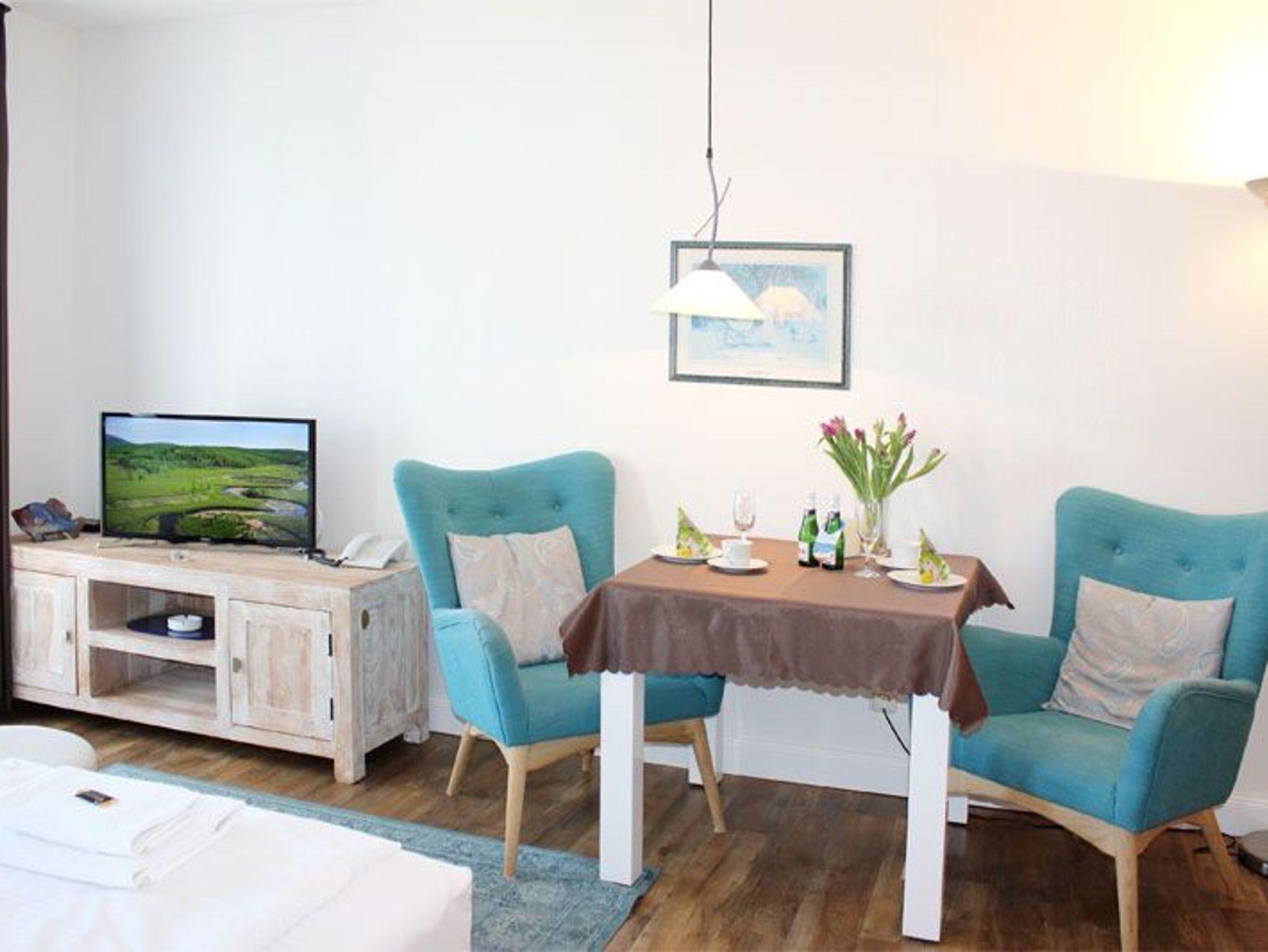 Unsere Zweiraumappartements für bis zu drei Personen haben eine Wohnfläche von 35 bis 55 m². Im Wohnzimmer laden gemütliche Sessel oder Couchen zur Entspannung ein.