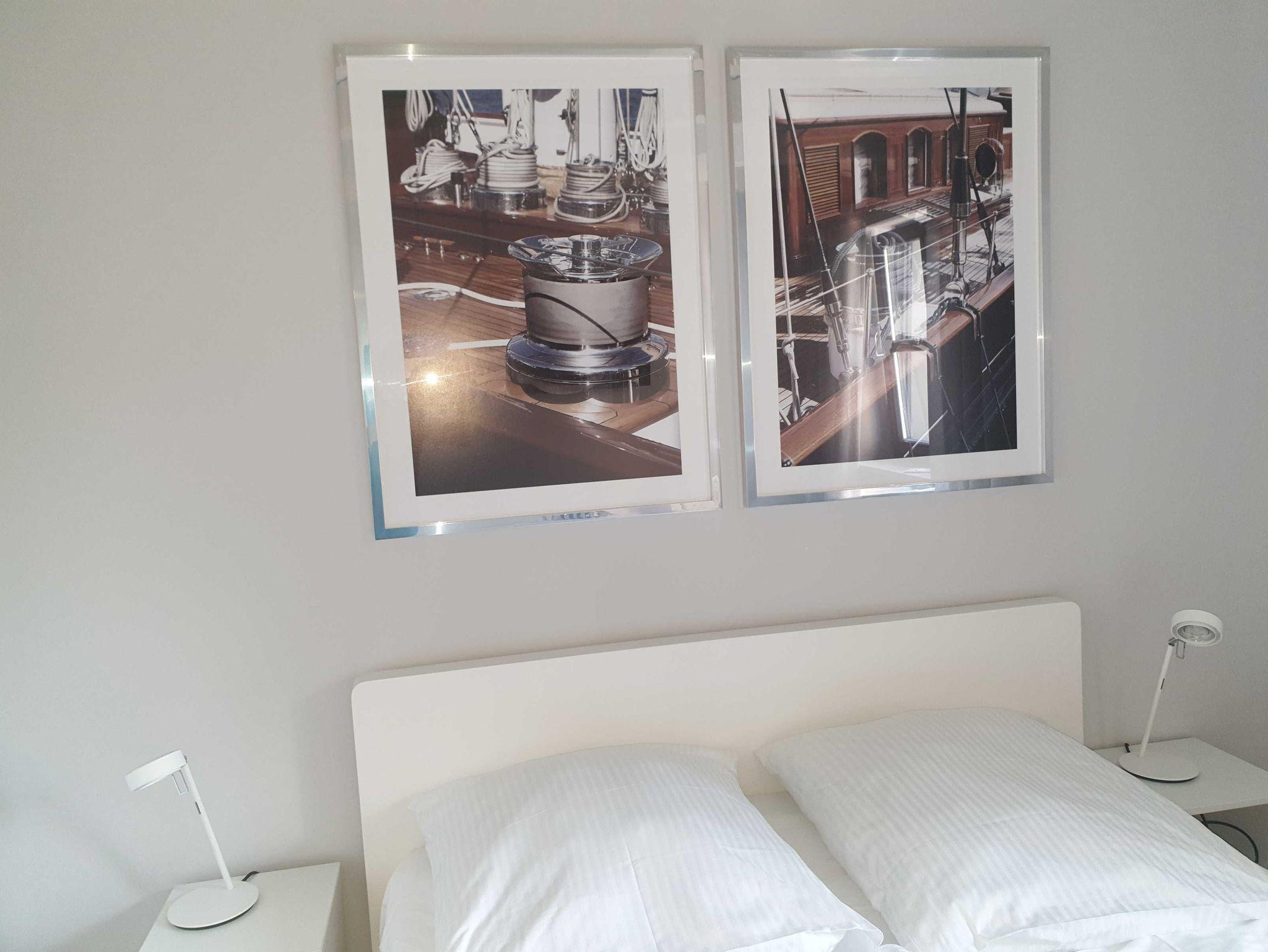Die ca. 73 qm, neu eingerichtete große Ferienwohnung liegt in der I. Etage, hat neben dem Wohnbereich mit Küchenzeile noch ein Schlaf- und ein Gästezimmer sowie ein Duschbad und einen Balkon zur Ostseite.
