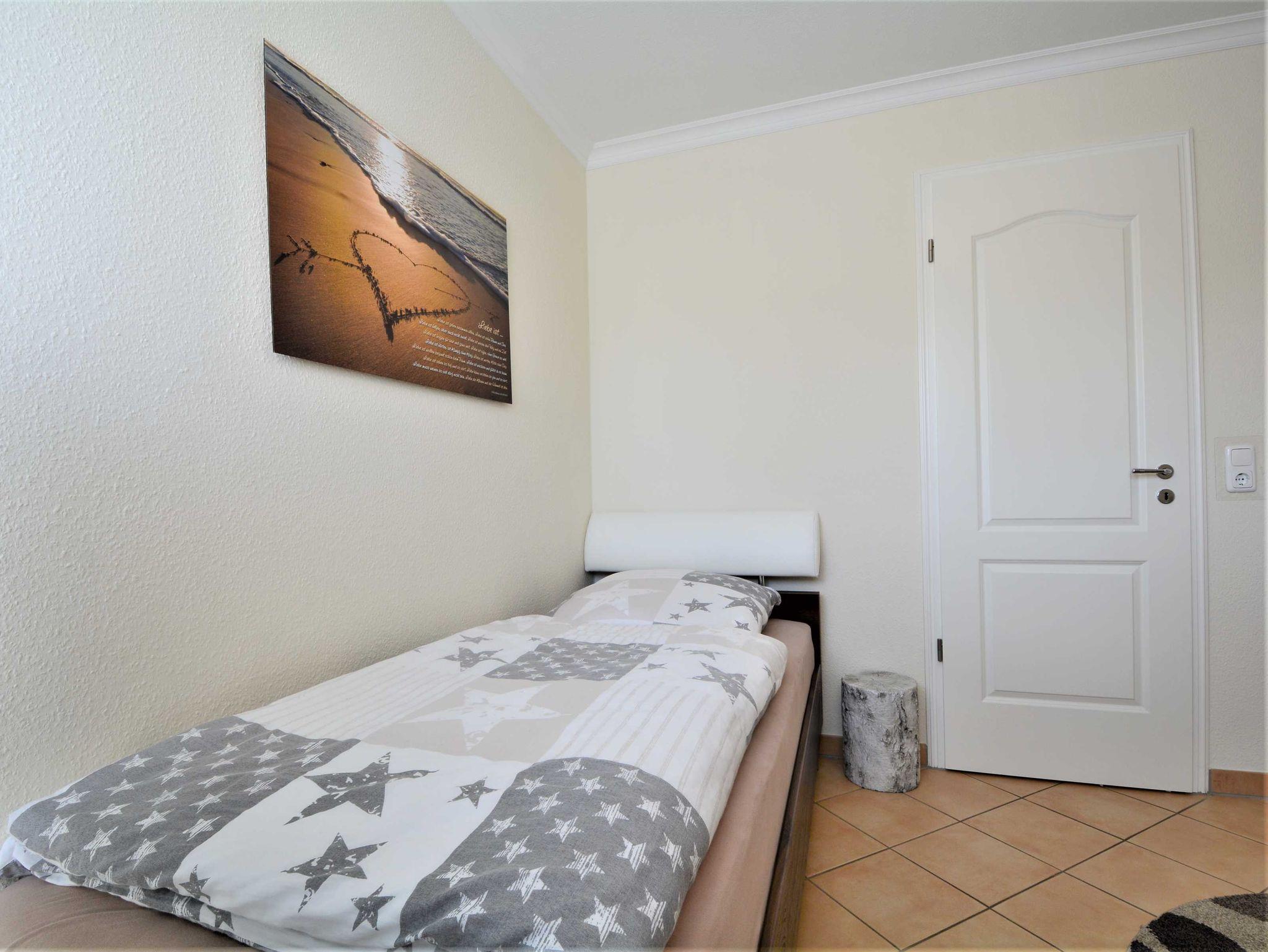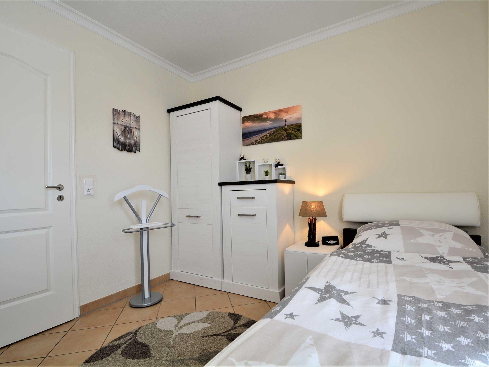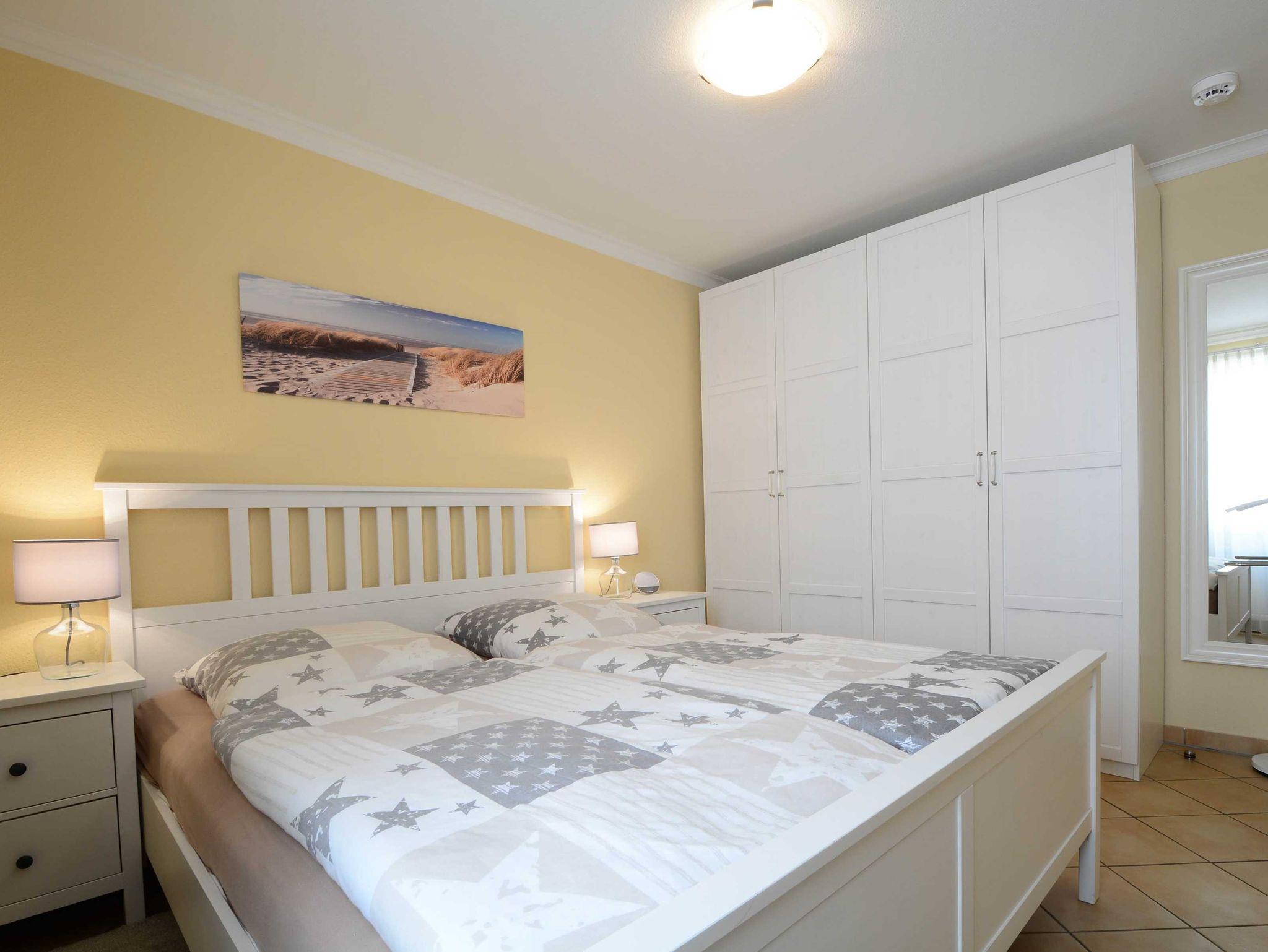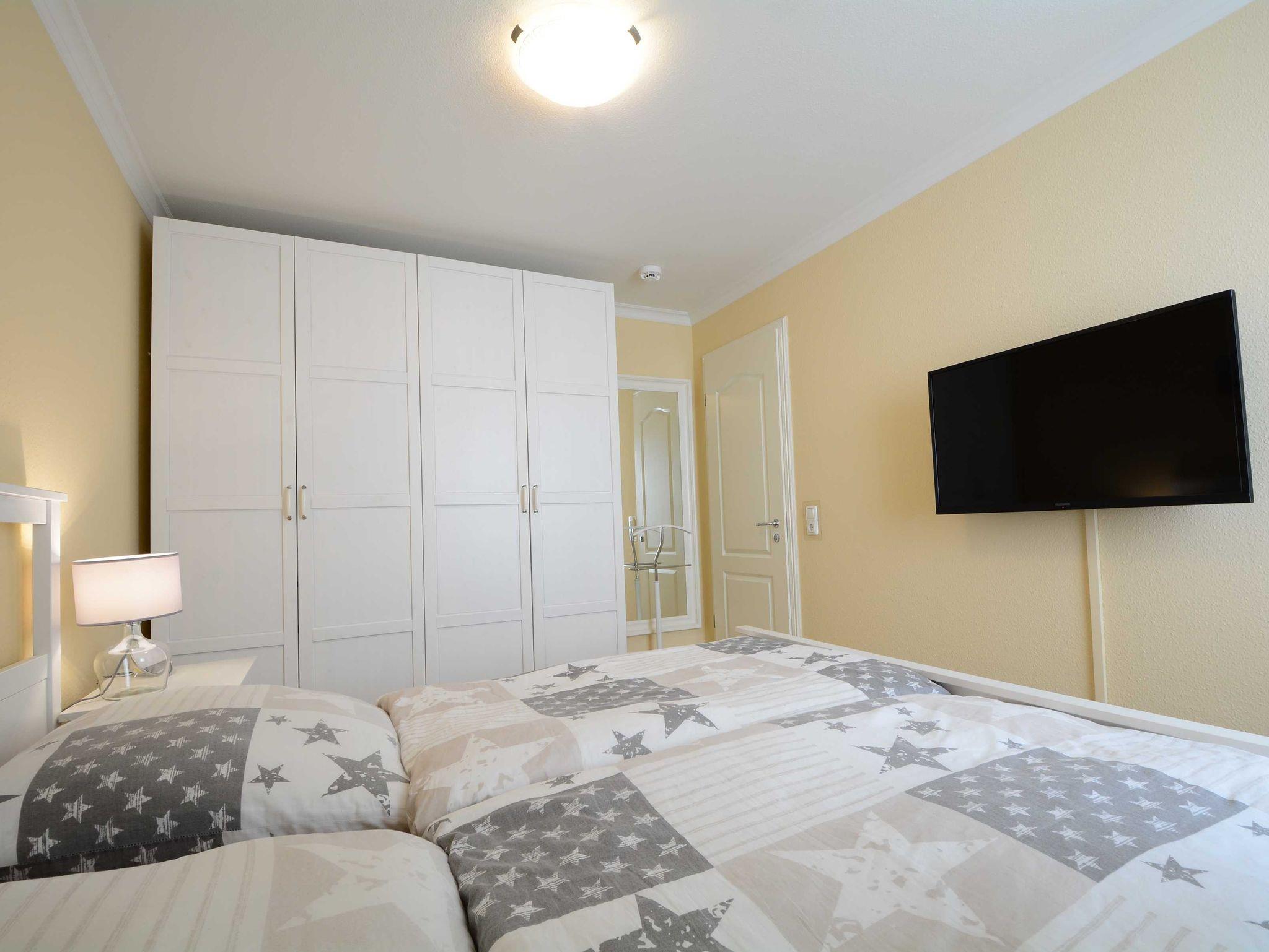 Im ersten Schlafzimmer lädt Sie ein komfortables Doppelbett (2 x 90cm x 200 cm) zur Nachtruhe ein. Der großzügige Kleiderschrank bietet genügend Platz für Ihre Urlaubsgarderobe. Das zweite Schlafzimmer ist mit zwei Einzelbetten (jeweils 90cm x 200cm) ausgestattet. In beide Schlafzimmer sind 39-Zoll-TV-Geräte angebracht.