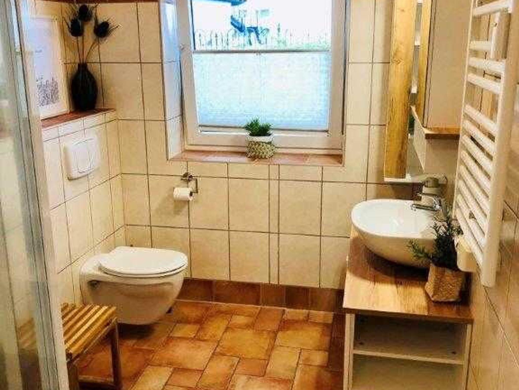 - Küchenzeile mit Herd/Backröhre, Kühlschrank, Geschirrspüler, Wasserkocher,