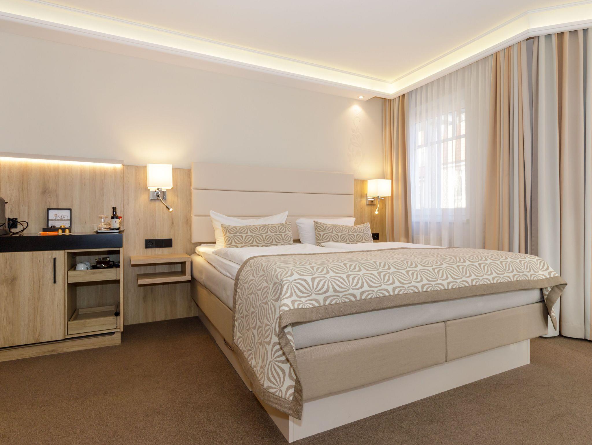 40 liebevoll ausgestatteten Hotelzimmer bieten exklusiven Schlafkomfort. Viel Wohlfühlkomfort bieten Ihnen auch die modernen großzügigen Bäder. Moderne LED Flachbildschirme, persönlicher Zimmersafe, Minibar, Telefon und kostenfreies Internet (WLAN) stehen Ihnen zur Verfügung.
