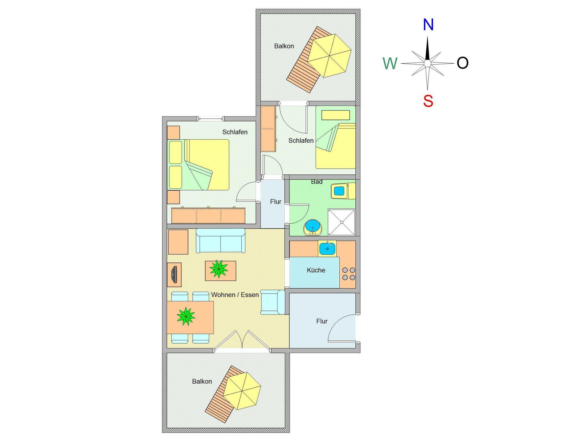 LIEBEVOLL EINGERICHTETE 3-RAUM-FERIENWOHNUNG MIT 2 BALKONEN