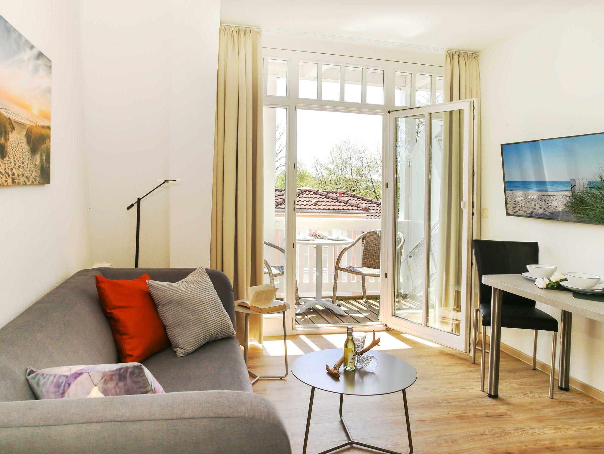Die Ferienwohnungen sind dem Apart-Hotel „Rosenhof“ angeschlossen. Daher besteht die Möglichkeit, den Service des Hotels mit zu nutzen. Sie können Frühstück und die tägliche Reinigung der Wohnung dazu buchen. Die Ferienwohnung liegt am Rande des Baltic-Parks. Bis zur Ostsee sind es ca. 150 m.
