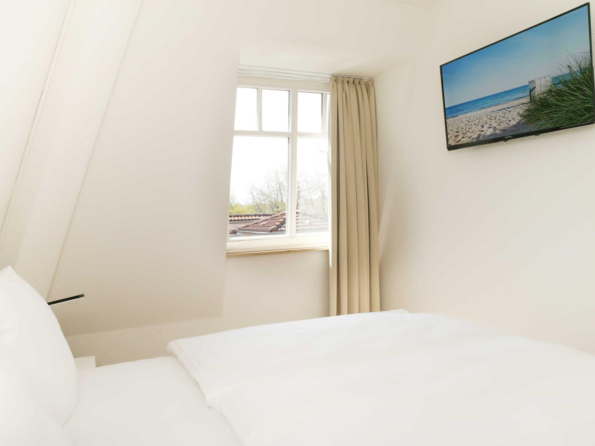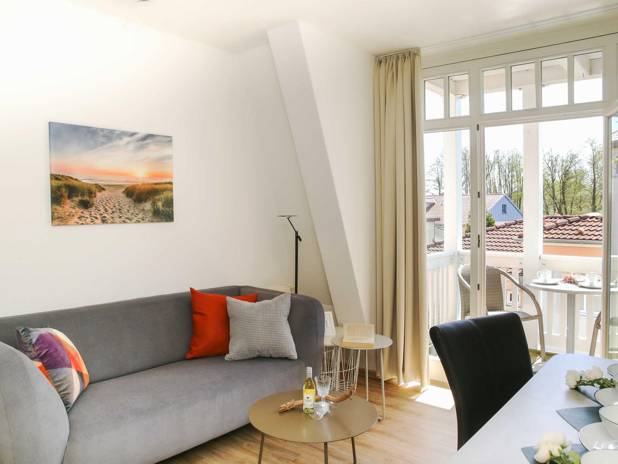 Nur 150 m vom Strand wohnen Sie in einer 3-Raum-Ferienwohnung. Die 31 qm große Wohnung liegt in der Zweiten Etage. Das Wohnzimmer ist mit einer Couch, Couchtisch, Anrichte, mit Kabel-TV (Flachbildschirm), Radio, Essbereich (Tisch und Stühle) und Küchenzeile ausgestattet. Der Balkon mit Tisch und Stühle geht zur Südtseite. Im Schlafzimmer stehen ein Doppelbett und eine kleine Anrichte. Im Gästezimmer stehen ein Schlafcouch, Nachtschrank und ein kleiner Kleiderschrank. Die Küchenzeile wurde ausgestattet mit Mikrowelle, Kühlschrank, Kaffeemaschine, Zwei-Platten-Kochfeld, Toaster und Wasserkocher. Das Bad mit Dusche und WC komplettiert die Wohnung.