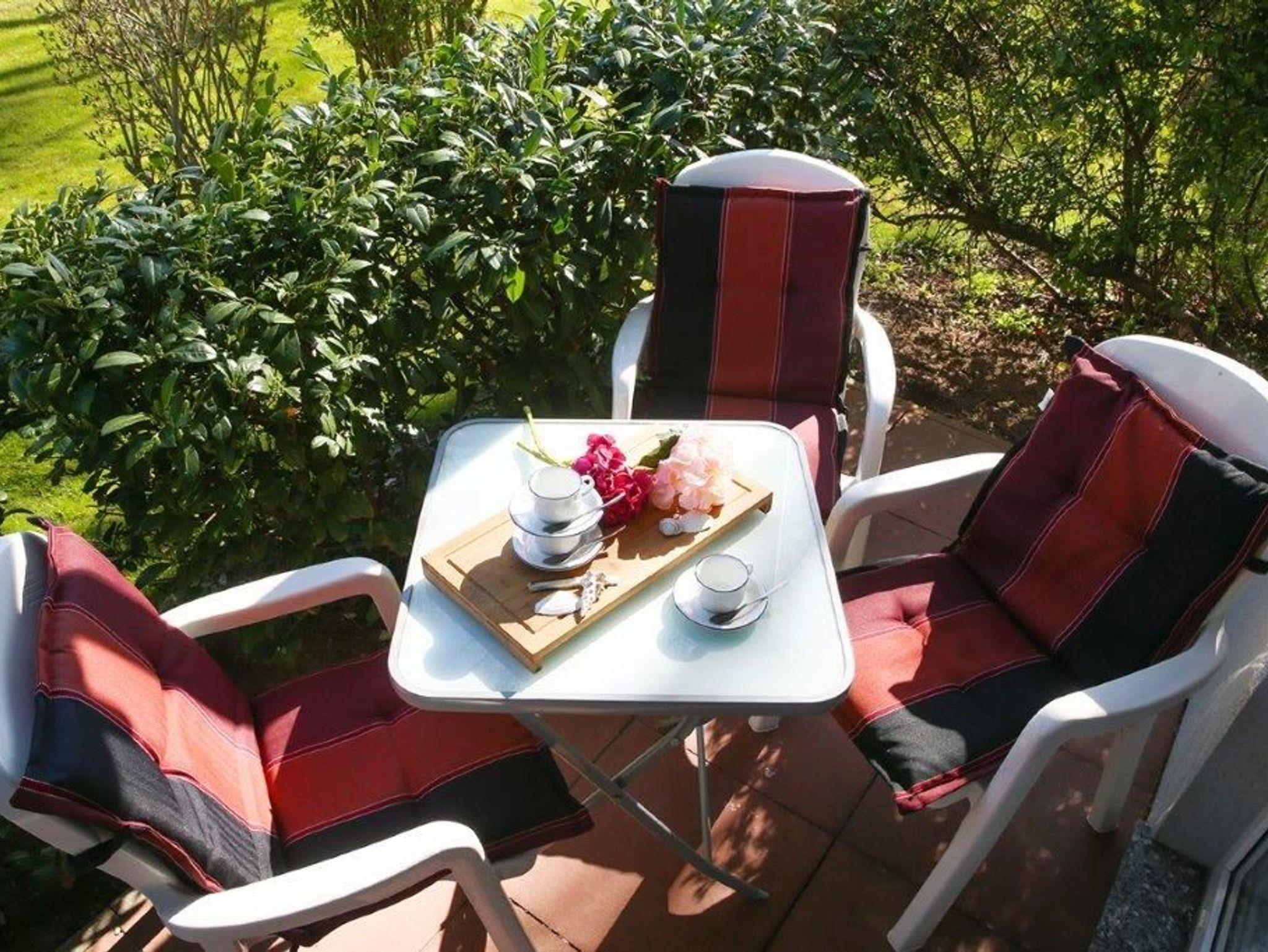 Sehr lieblos eingerichtet. Keine Kissen für die Gartenstühle .Diese so genannte Dachterrasse war gerade mal ca. 1,50 X 1,80 , kleiner als der kleinste Balkon. Im Besteckkasten 2 Teelöffel. Schaut sich das überhaupt mal jemand an ??? Wenn man von diese Dachterrasse in das Zimmer zurückkehren will, muss man aufpassen, dass man nicht STÜRZT! Da ist ein ganz tiefer Einstieg ohne Vorwarnung. STURZGEFAHR !!