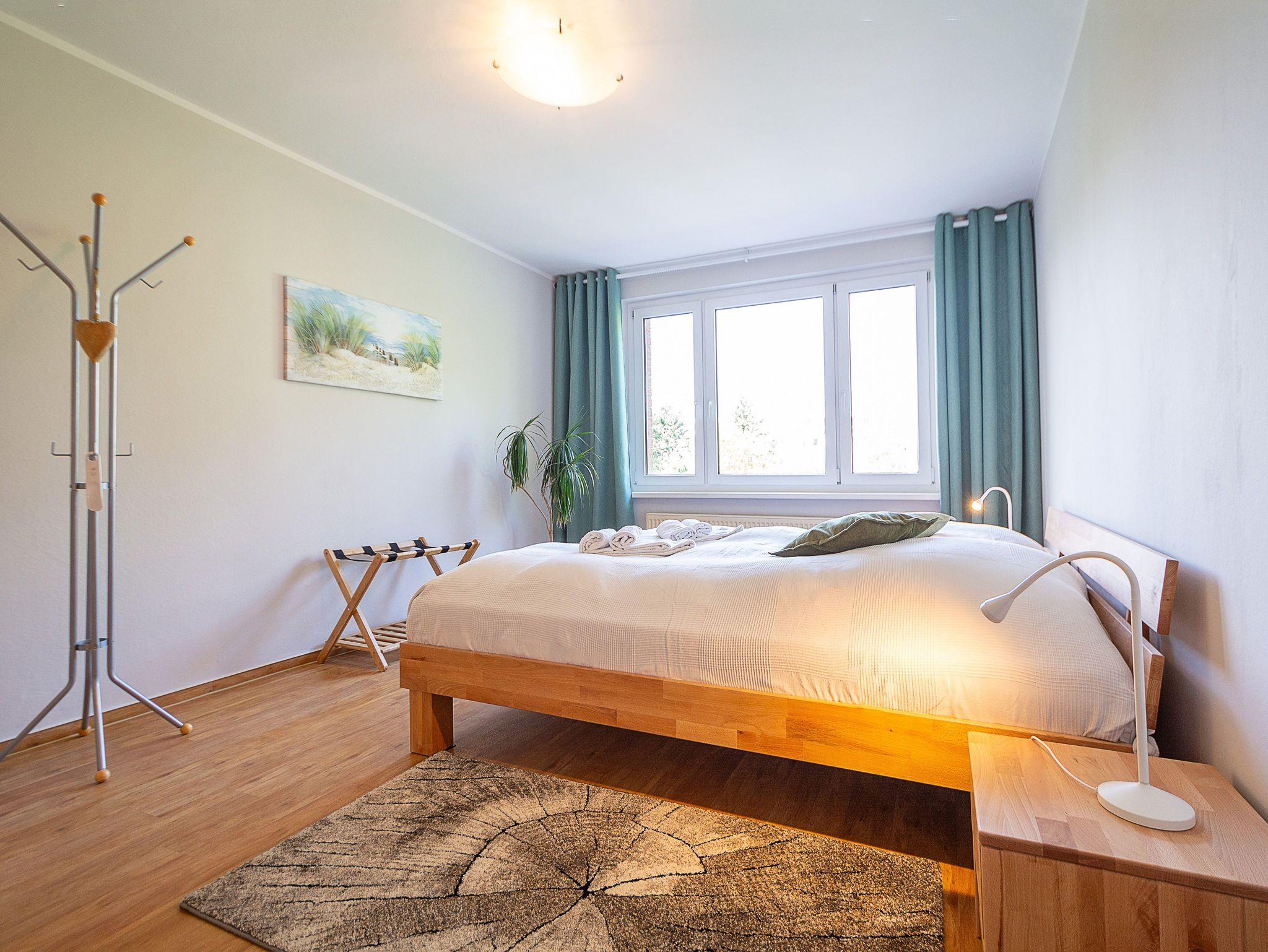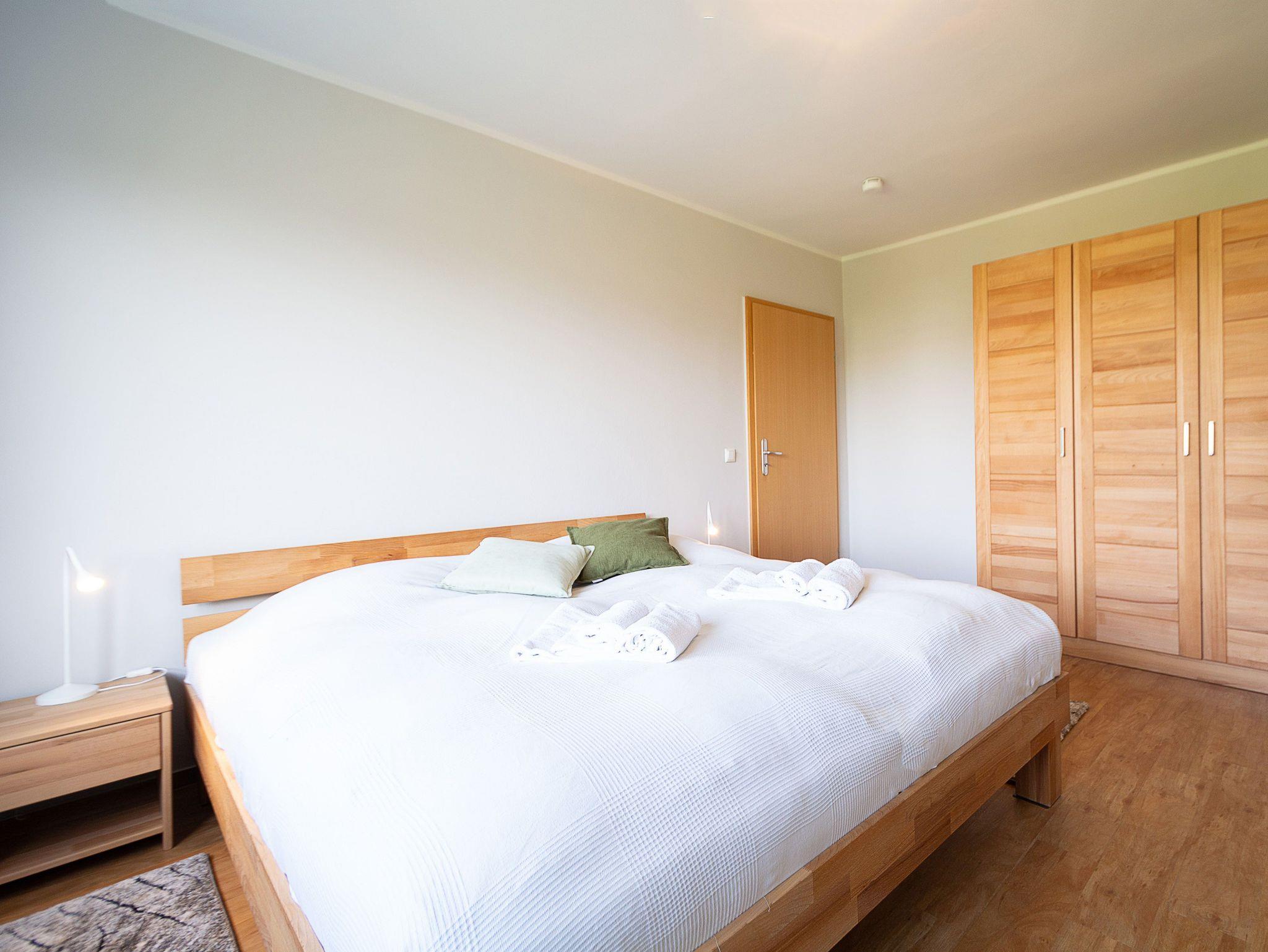 Im Schlafzimmer lädt Sie ein komfortables Doppelbett (2 x 90cm x 200cm) zur Nachtruhe ein. Der großzügige Kleiderschrank bietet genügend Platz für Ihre Urlaubsgarderobe.