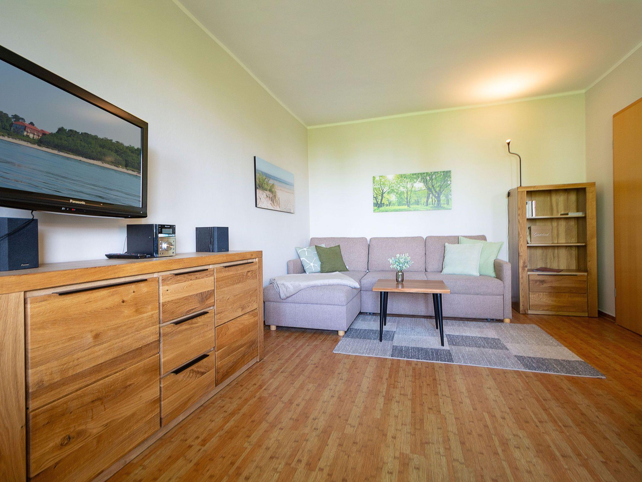 Herzlich willkommen in der Whg. Nr. 41 in der Residenz Dünengarten. Die geschmackvoll eingerichtete 2-Raum-Ferienwohnung befindet sich im 1. Obergeschoss des Hauses. Auf 50 qm Wohnfläche können hier 2 bis 4 Personen erholsame Urlaubstage genießen. Es empfangen Sie ein heller offener Wohn-und Essbereich mit einer Küchenzeile, ein Schlafzimmer, ein Wannenbad sowie ein Balkon mit Ausrichtung nach Westen (Innenhof).