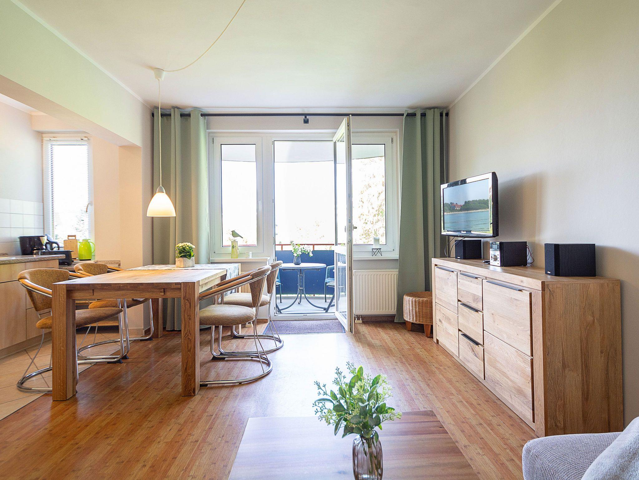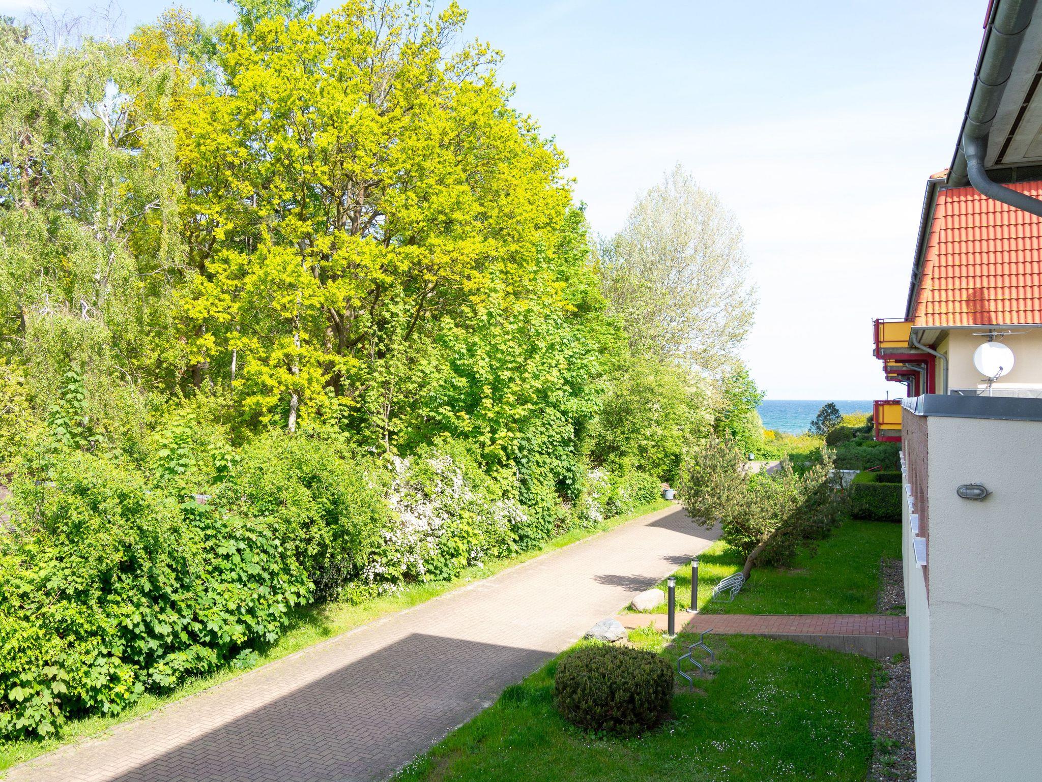 Vom Wohnbereich betreten Sie den möblierten Balkon, der nach Westen in den Innenhof ausgerichtet ist. Hier können Sie Sonne tanken, relaxen und den Abend nach einem schönen Tag am Meer ausklingen lassen.