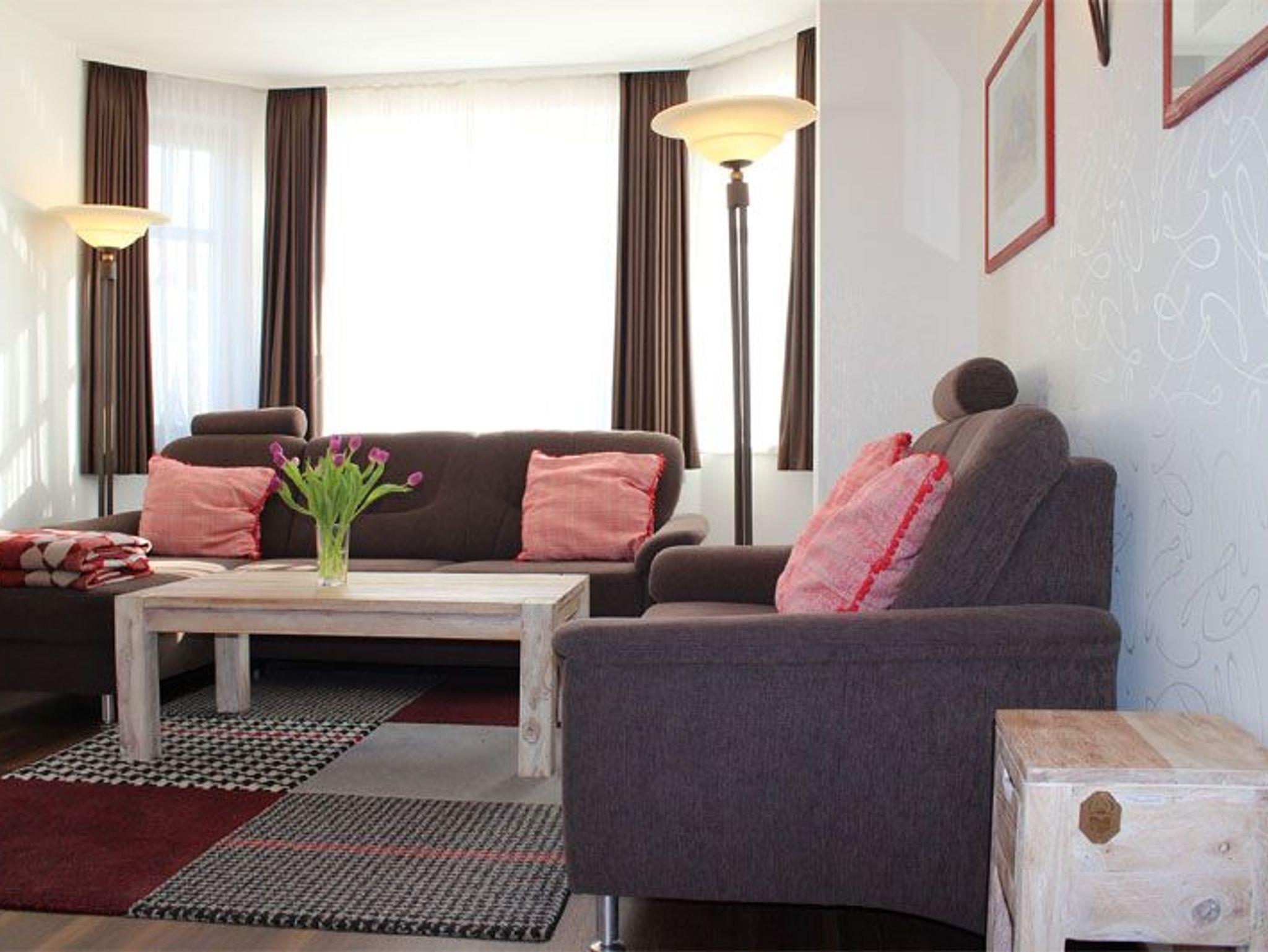 Unsere Zweiraumappartements für bis zu drei Personen haben eine Wohnfläche von 35 bis 55 m². Im Wohnzimmer laden gemütliche Sessel oder Couchen zur Entspannung ein.