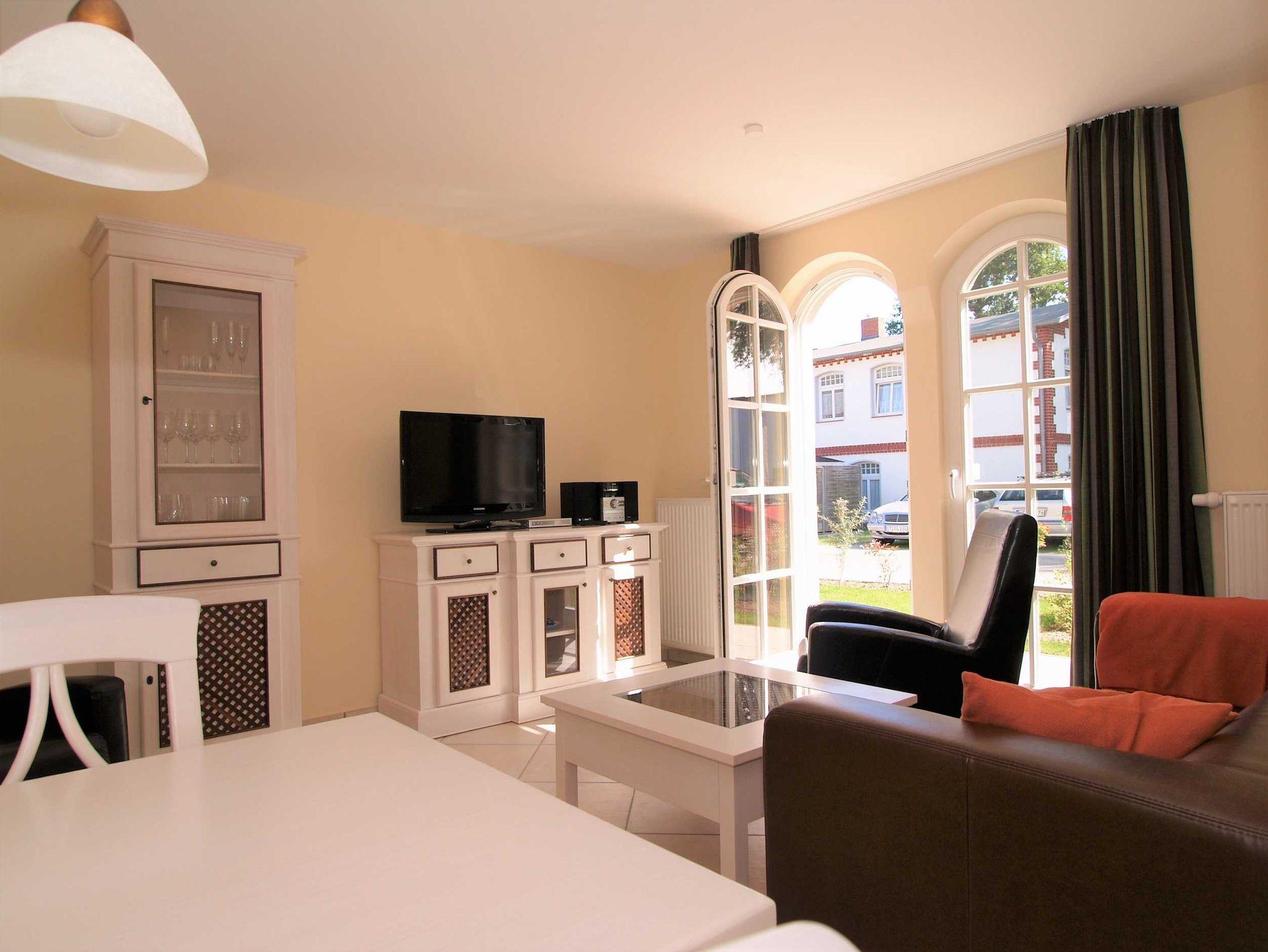 Die stilvoll möblierte Ferienwohnung verfügt auf rund 68 Quadratmetern über 3 Räume, die bis zu 4 Personen Übernachtungsmöglichkeiten bieten. Eine bequeme Couch und ein hochwertiges 32-ZollTV-Gerät laden zu gemütlichen Abenden ein. Nebenan befindet sich die Küche, die mit allen wichtigen Küchengeräten und -utensilien ausgestattet ist, die Sie für Ihr perfektes Dinner benötigen: 4-Platten-Cerankochfeld mit Dunstabzugshaube, Mikrowelle, Geschirrspüler, Kaffeemaschine, Wasserkocher und Toaster sowie eine Kühl/Gefrierkombination sind vorhanden. Abgerundet wird der Wohnkomfort des Objektes durch 2 Schlafräume, die mit jeweils einem komfortablen Doppelbett (je 180cm x 200cm) ausgestattet sind. Modern kommt auch das Bad mit Dusche und WC daher. Gästen dieser Ferienwohnung steht kostenloses WLAN zur Verfügung, wobei gem. AGB keine Haftung für etwaige Störungen besteht.