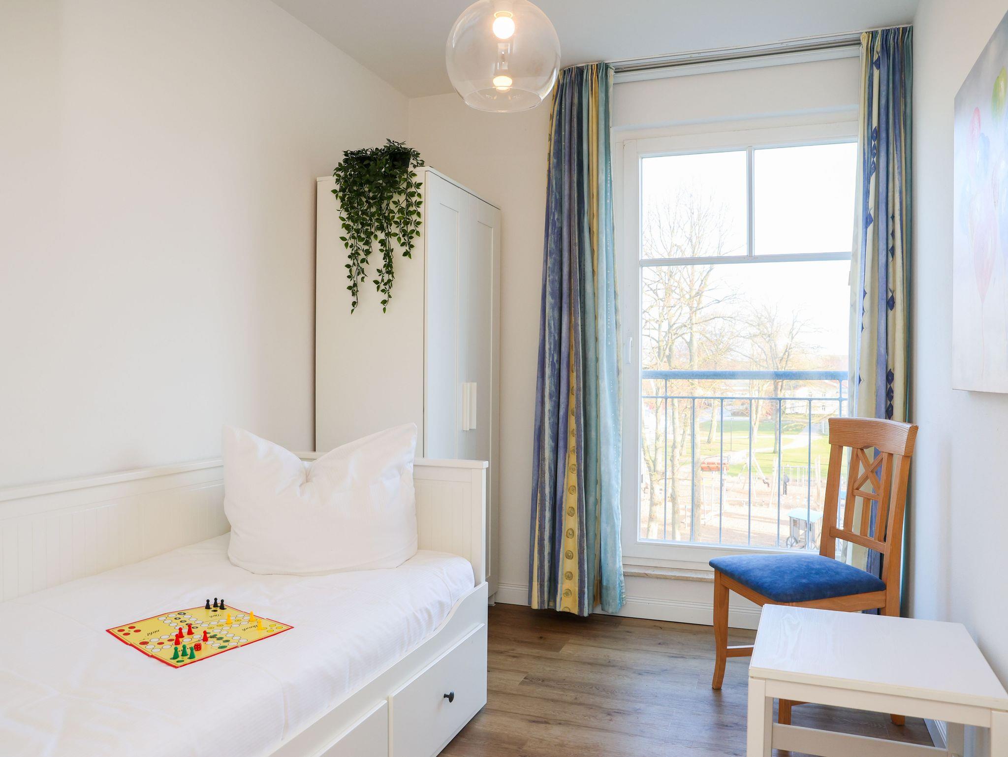 Die Wohnung WM325 ist eine komfortable Dreiraum-Wohnung mit Balkon zur Seeseite und ca. 60 qm groß. Der Preis für die Ferienwohnung WM325 beinhaltet passwortgeschütztes W-LAN, Wäsche für 2 Personen und Endreinigung. Zu der Wohnung steht Ihnen der Parkplatz-Nr. 102 in der Tiefgarage (2,00 m hoch) kostenfrei zur Verfügung. Die zweckmäßig gestaltete Ferienwohnung in der 3. Etage hat einen offenen Wohnbereich mit Küchenzeile und Essbereich, ein Schlafzimmer mit Doppelbett, ein Gästezimmer mit Einzelbett (mit Ausziehfunktion) und einen Balkon zur Nordseite mit freien Blick auf die Ostsee. Die funktionale Küchenzeile ist mit 2-Platten-Ceranfeld, Kühlschrank mit Gefrierfach, Geschirrspüler, Mikrowelle, Kaffeemaschine und div. Geschirr ausgestattet. Ein Bad mit Dusche, Waschtisch und WC komplettieren den sehr modernen Gesamteindruck der Wohnung.