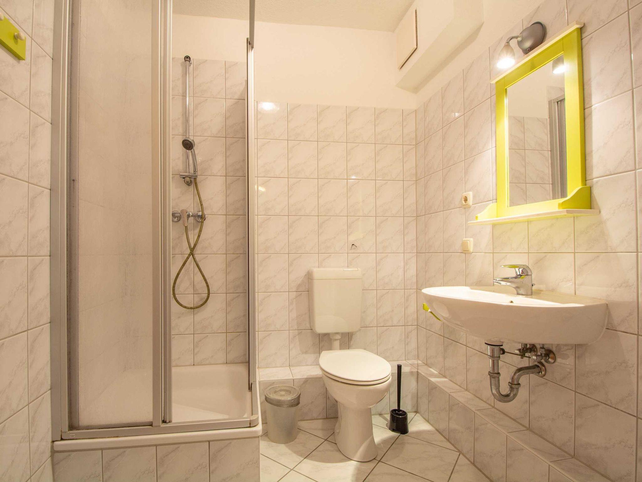 Zwei separate Schlafzimmer sorgen für erholsamen Schlaf ? eines mit einem gemütlichen Doppelbett, das andere mit zwei Einzelbetten. Das Badezimmer ist mit Dusche und WC ausgestattet, zusätzlich steht Ihnen ein Gäste-WC zur Verfügung ? besonders praktisch bei Belegung mit mehreren Personen.
