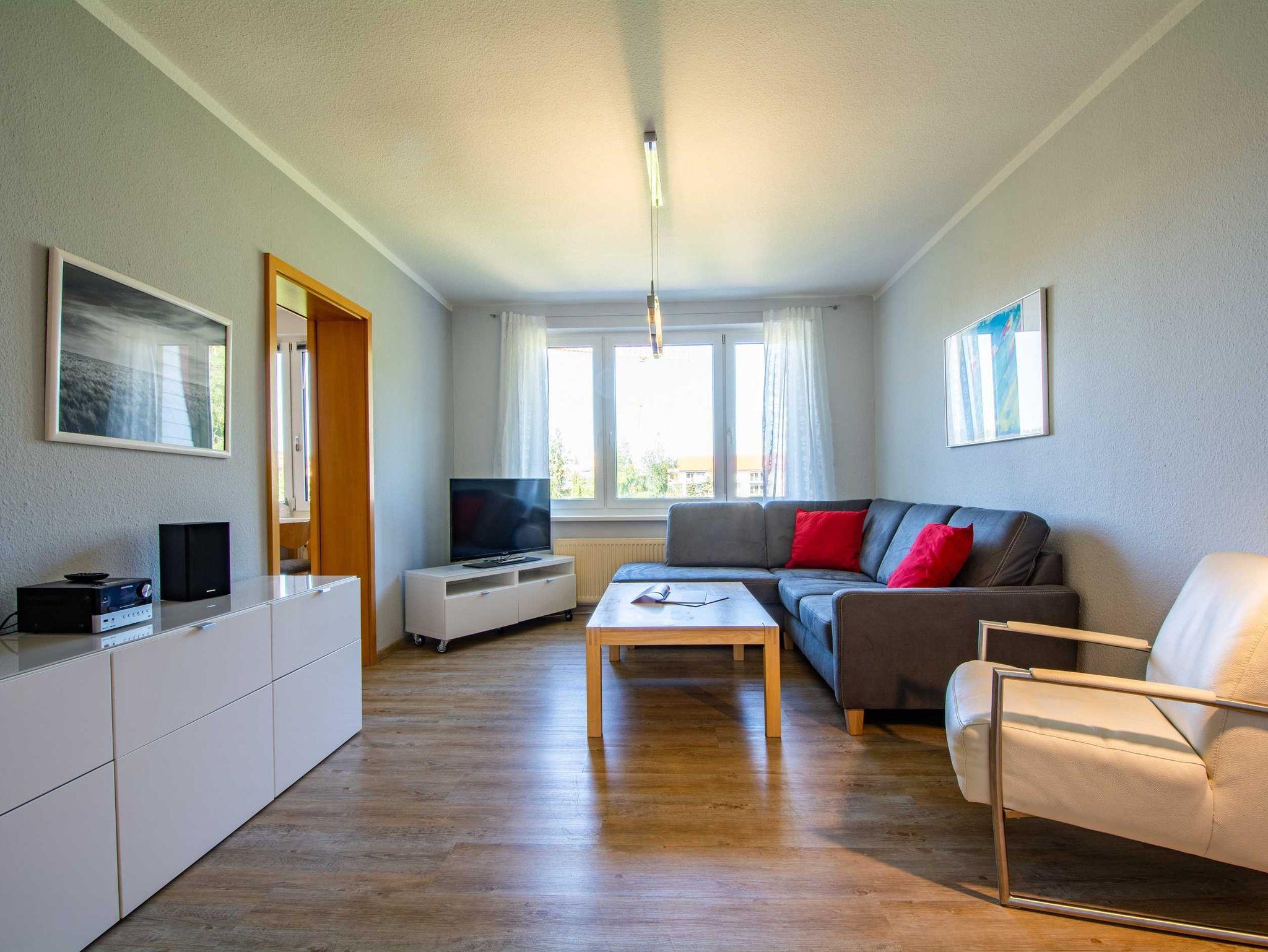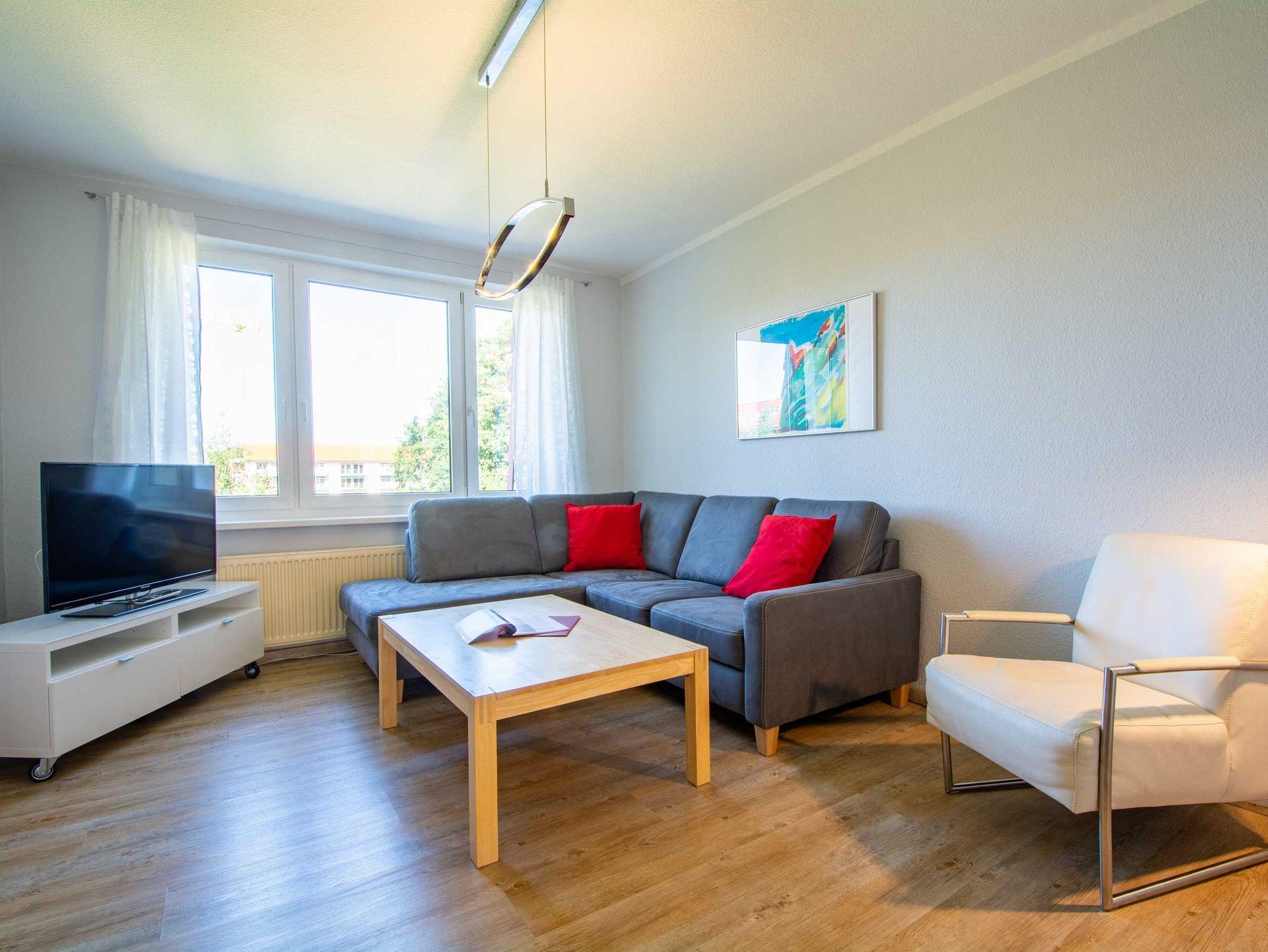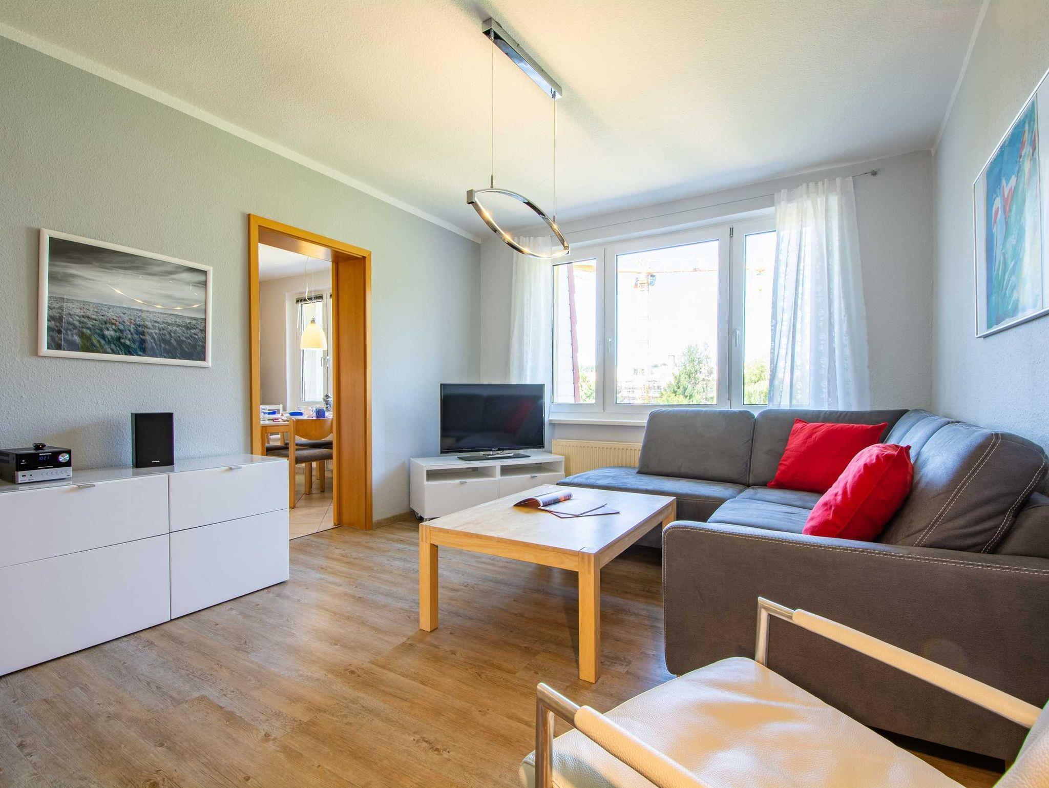Diese liebevoll maritim eingerichtete 3-Raum-Ferienwohnung befindet sich im 2. Obergeschoss der gepflegten Residenz Dünengarten und bietet auf ca. 80m² ausreichend Platz für bis zu 5 Personen.