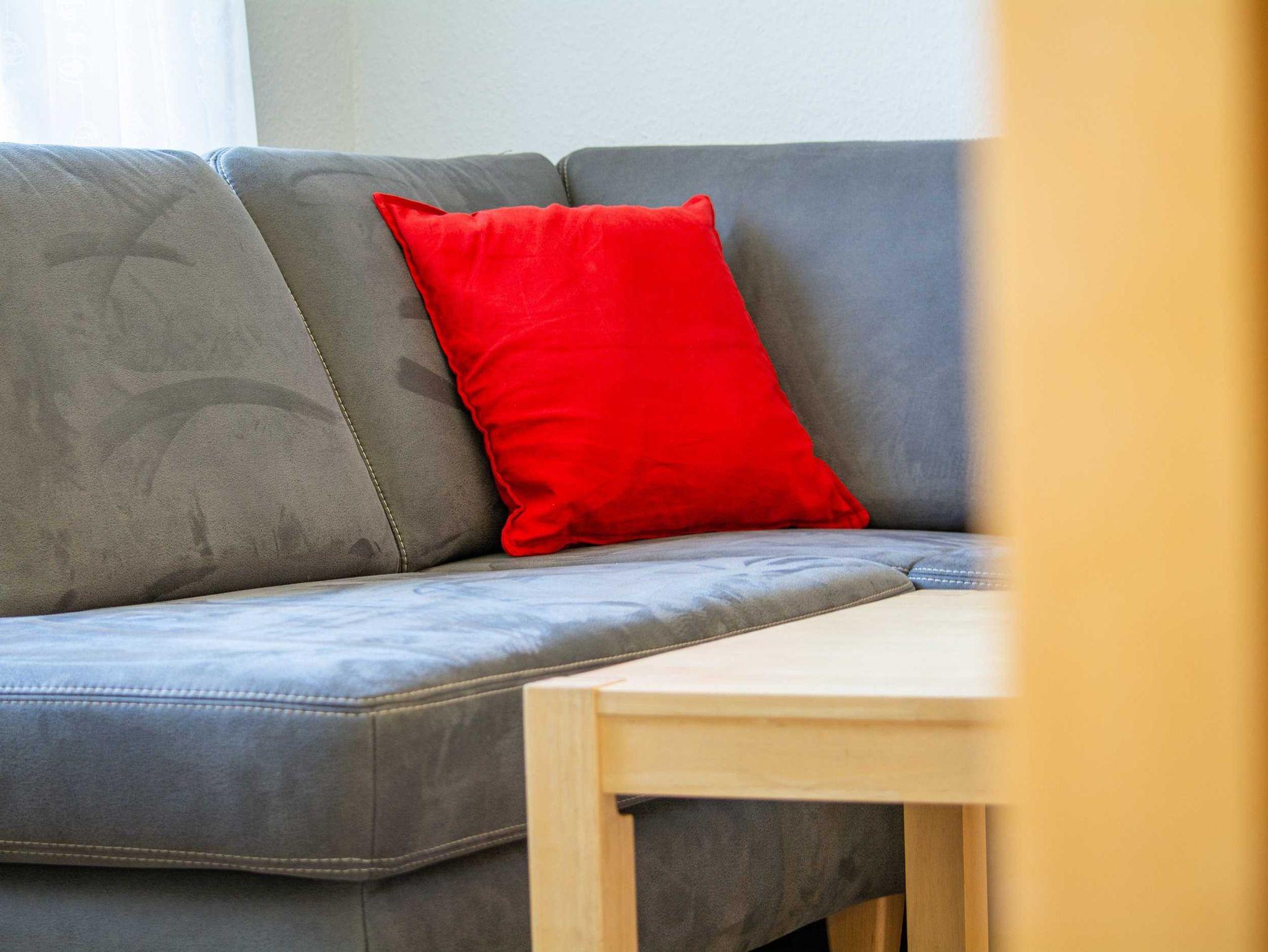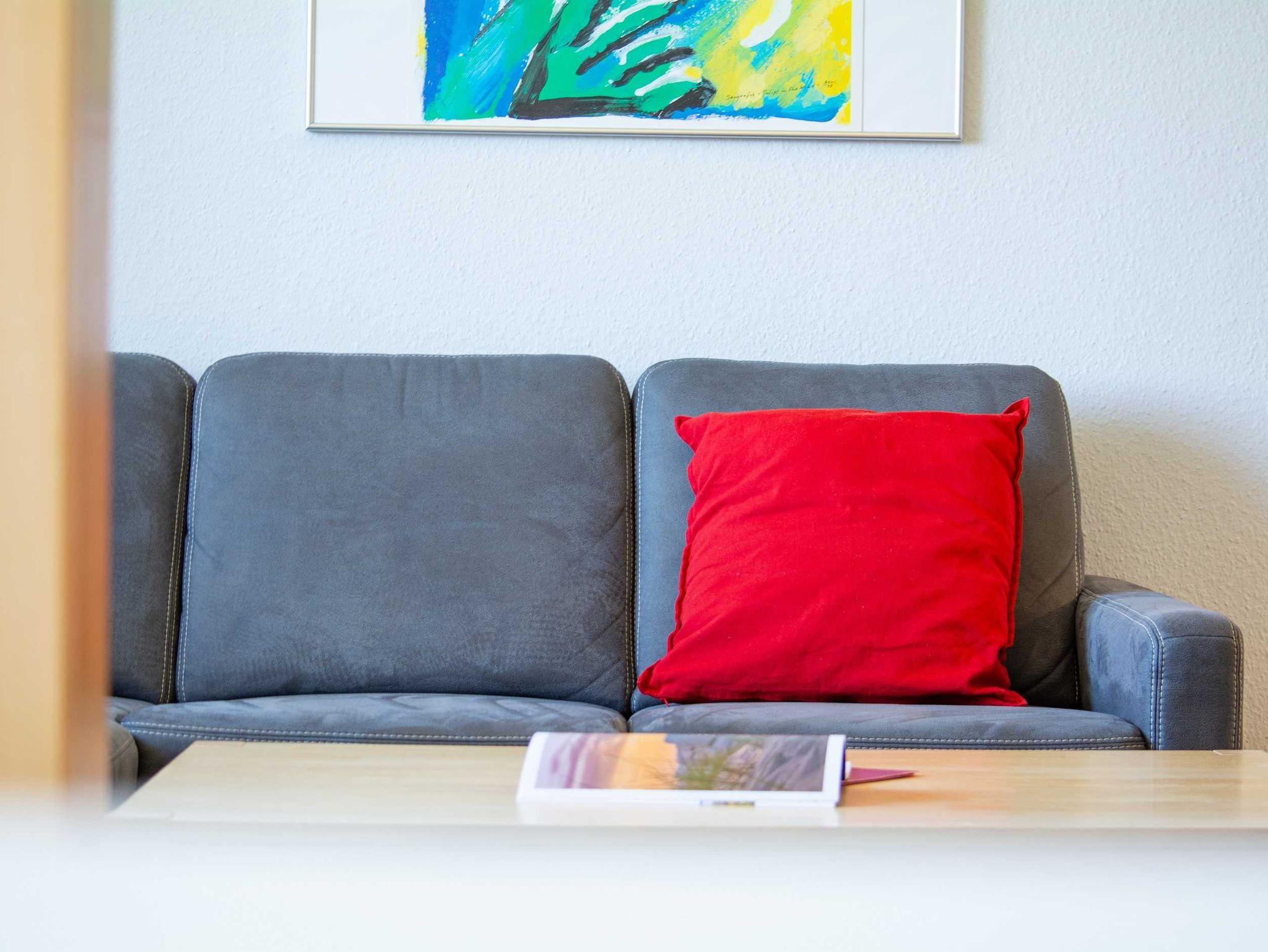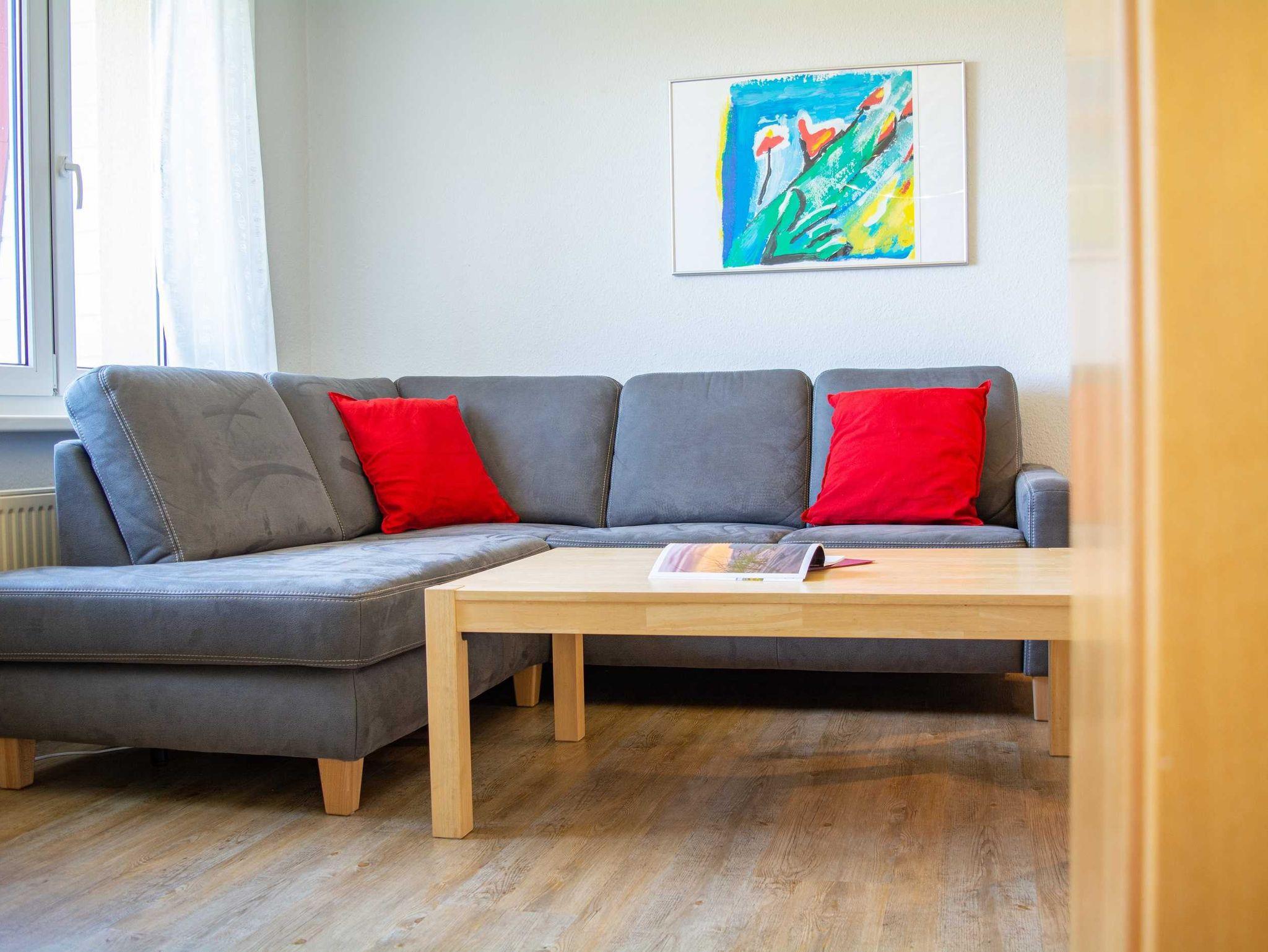 Der helle Wohnbereich ist freundlich gestaltet und lädt zum Verweilen ein. Eine gemütliche Couch, die sich mit wenigen Handgriffen in eine komfortable Schlafgelegenheit verwandeln lässt, ein Flachbild-TV sowie ein Radio sorgen für entspannte Stunden nach einem Strandtag.
