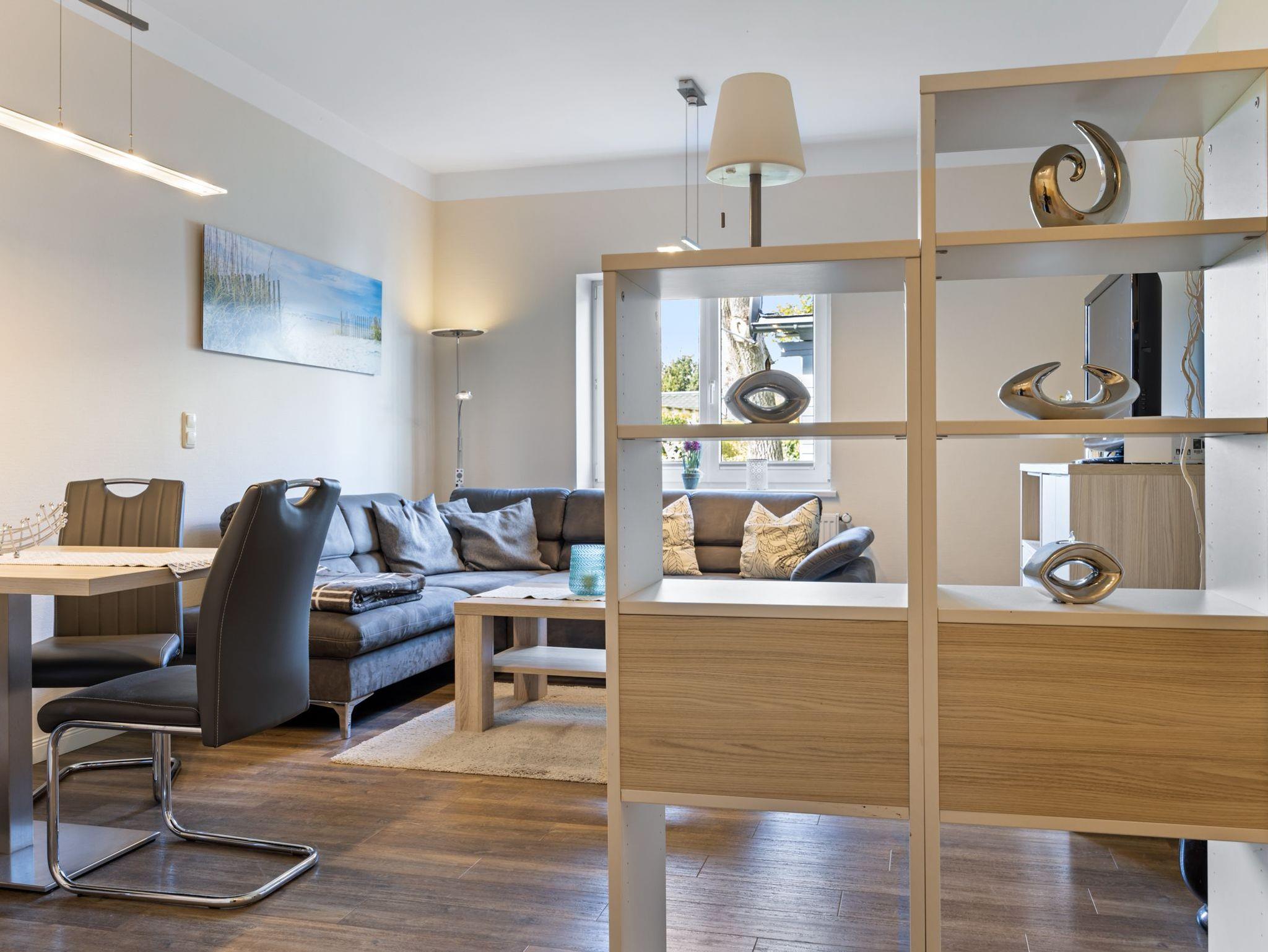 Die drei Ferienwohnungen sind umfangreich und komfortabel ausgestattet und bieten Platz für 2 - 4 Gäste und jeweils ein Kleinkind. Jede Wohnung verfügt über einen Terrassenbereich mit Strandkorb und der Garten bietet viel Platz zum Erholen, Spielen, Draußensein.