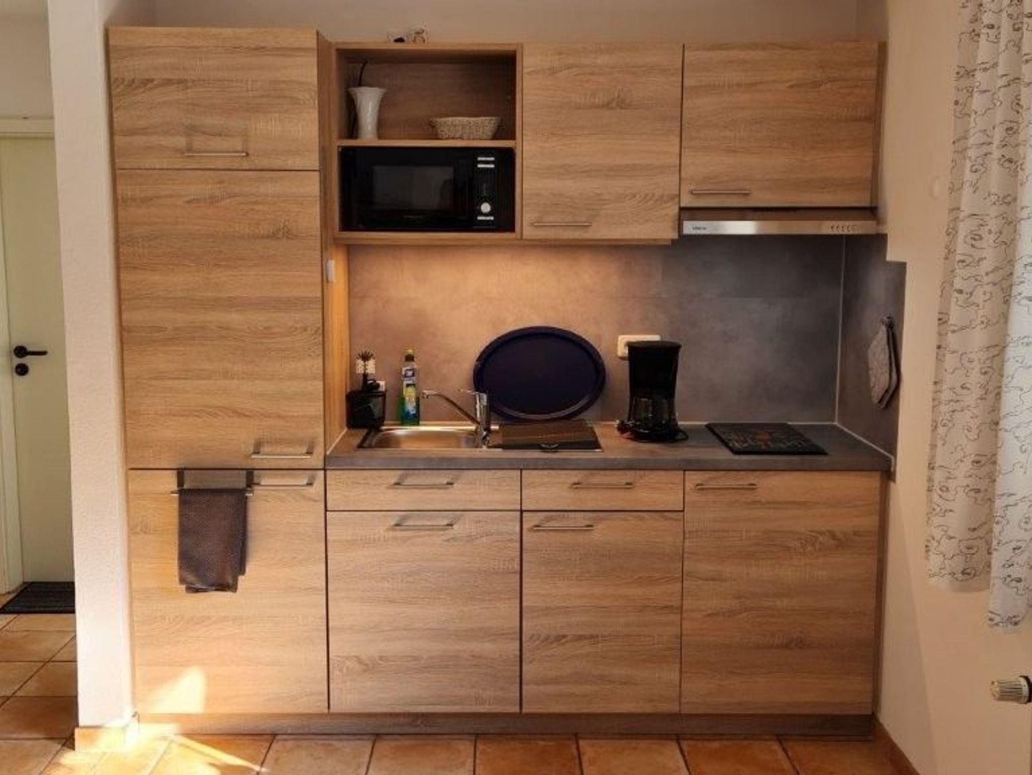 - Küche -Ceranfeld mit 2 Platten, Mikrowelle mit Grillfunktion und Kühlschrank