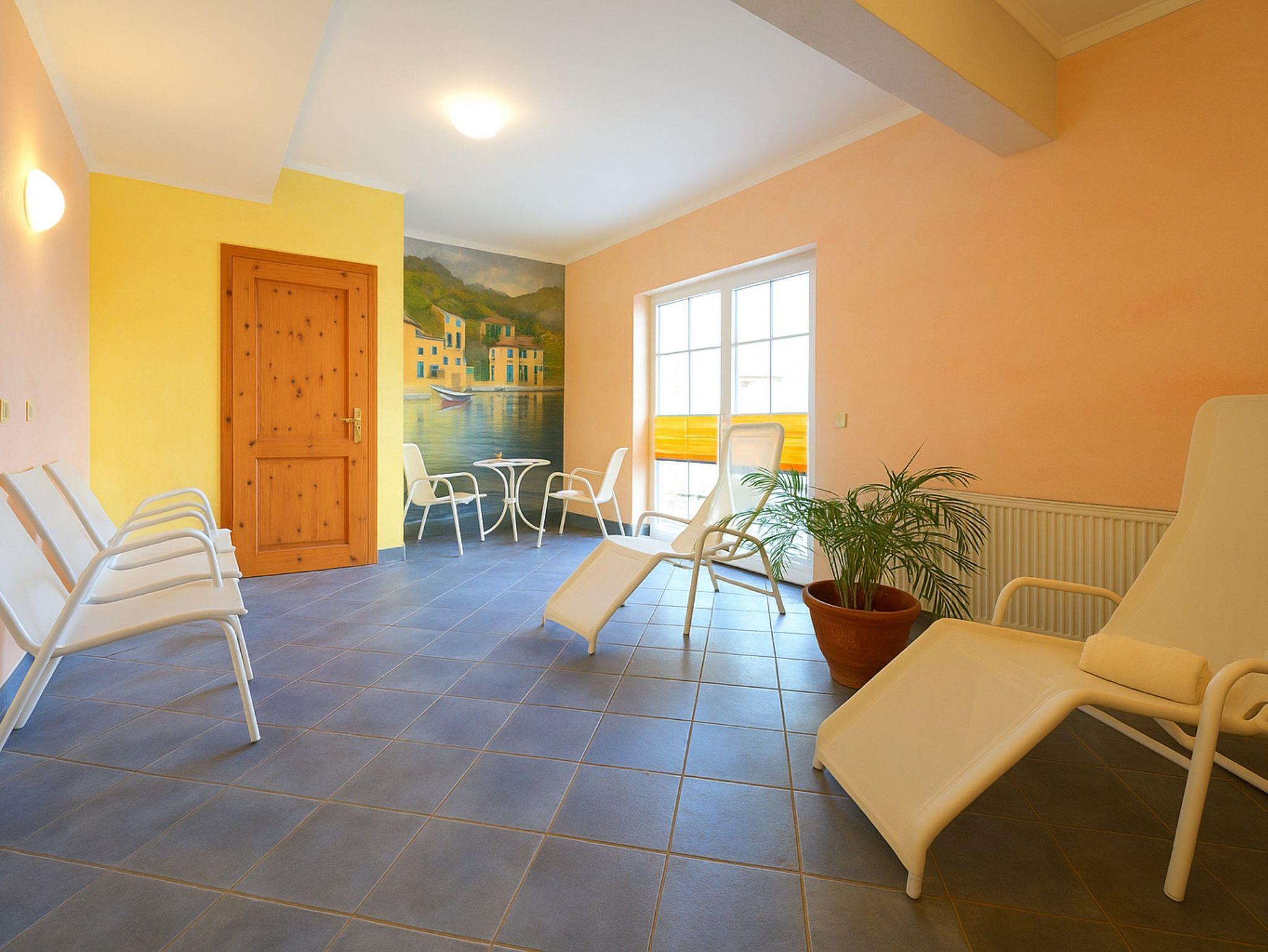 Waschmaschine und Trockner sowie eine Sauna befinden sich auf der Anlage und können gegen Gebühr genutzt werden. Gästen dieser Ferienwohnung steht ein kostenloser Tiefgaragen-Stellplatz zur Verfügung.