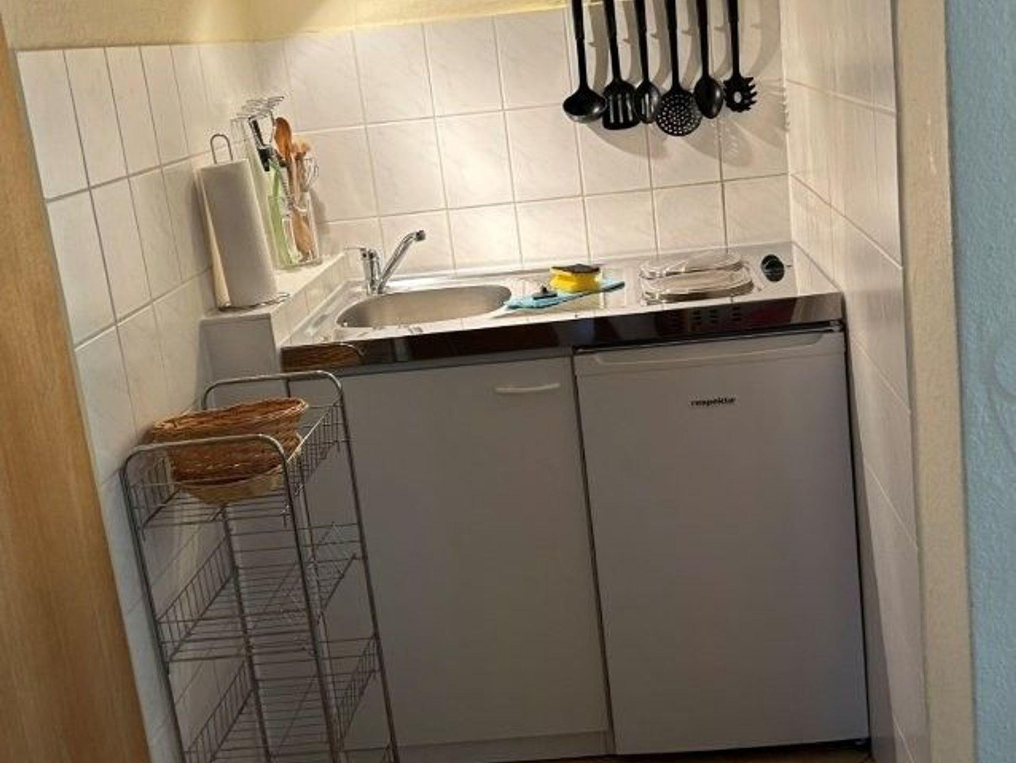 - Küche - 2 Kochplatten, Minibackofen und Kühlschrank