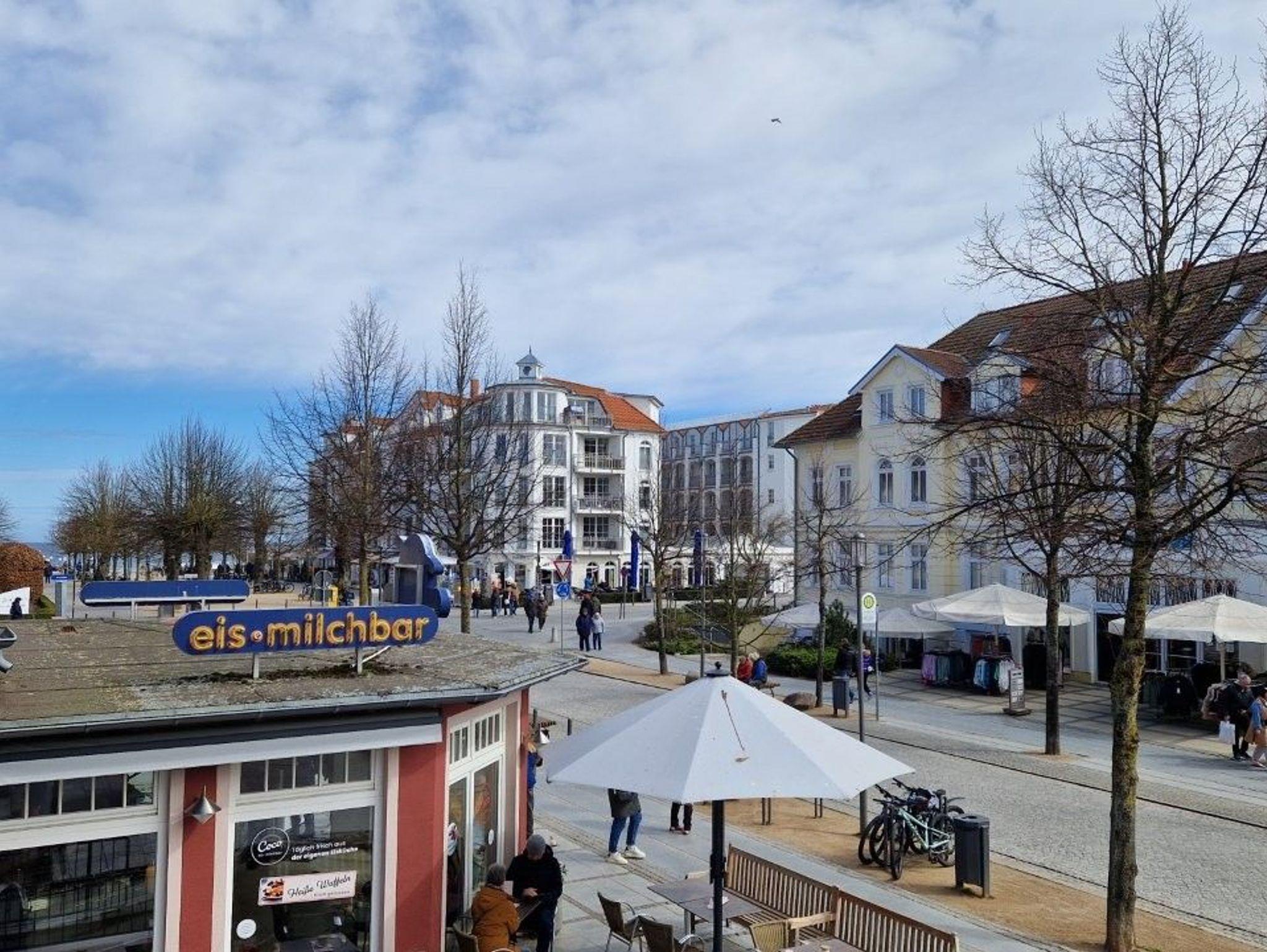 Der möblierte Balkon zur Ostseite bietet einen direkten Blick auf die Flaniermeile
