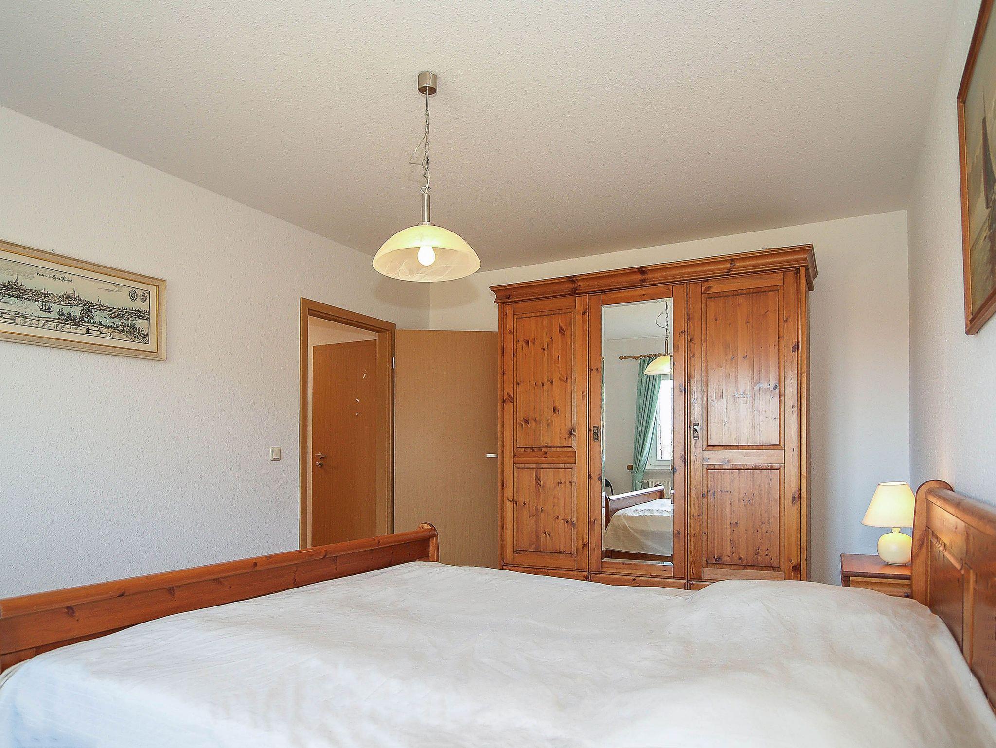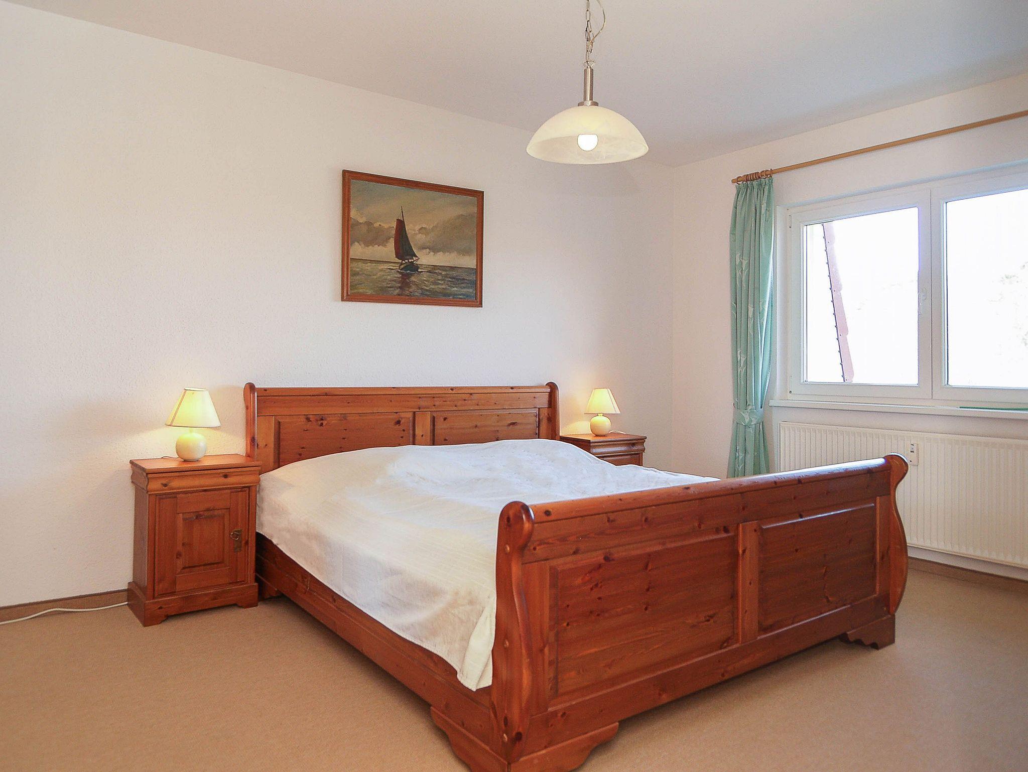 Im Schlafzimmer lädt Sie ein komfortables Doppelbett (2 x 90 x 200 cm) zur Nachtruhe ein. Der großzügige Kleiderschrank mit Ganzkörperspiegel bietet genügend Platz für Ihre Urlaubsgarderobe. In der oberen Etage finden Sie einen Wohn- Schlafraum mit Schlafcouch (ausgezogen 150cm breit) und TV. Die große nach Süden ausgerichtete Dachterrasse, die zum Sonnenbaden und langen Abenden zu einem Gläschen Wein einlädt, betreten Sie vom oberen Wohnraum aus.