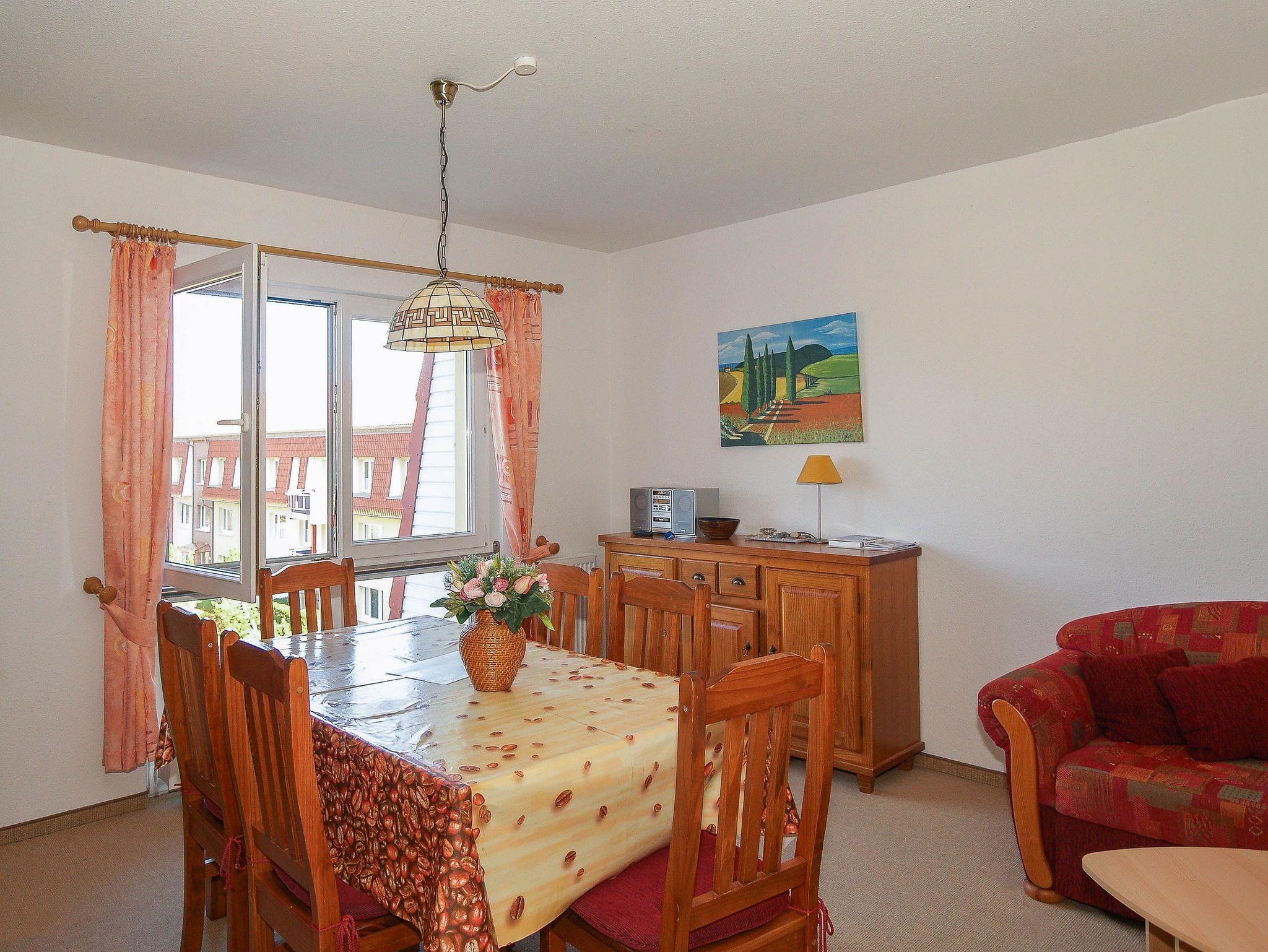 Herzlich willkommen in der Wohnung Nr. 26 in der Residenz Dünengarten! Die helle und lichtdurchflutete 3-Raum-Maisonettewohnung befindet sich im 2. Obergeschoss des Hauses und verläuft über zwei Etagen bis ins Dachgeschoss. Auf 74 qm Wohnfläche können hier bis zu 6 Personen erholsame Urlaubstage genießen. Es empfangen Sie ein gemütlicher Wohn-und Essbereich mit einer offenen Küchenzeile, ein Schlafzimmer, ein Duschbad sowie im oberen Geschoss ein kombinierter Wohn und Schlafbereich mit Dachterrasse.