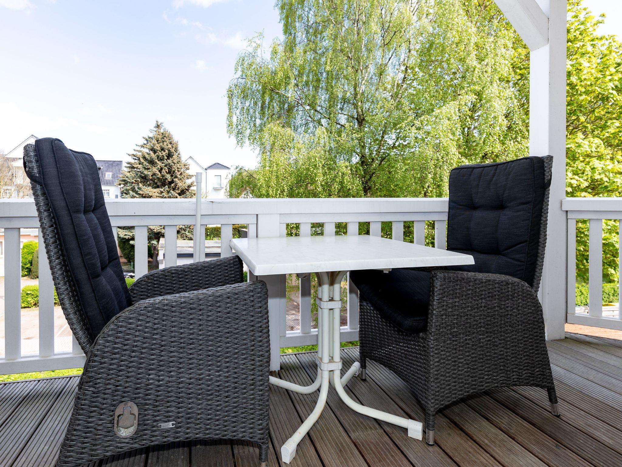Die Wohnung ist im 2. Obergeschoss gelegen und hat einen Balkon zur Ostseite. Die Wohnungsgröße beträgt ca. 48 qm und teilt sich in Wohnzimmer, Küche, Schlafzimmer, kl. Kinderzimmer, Bad mit Dusche. Im Wohnzimmer befindet sich ein Esstisch mit 4 Stühlen, Küche mit 2 Kochfeldern, Kühlschrank, Geschirrspüler, Tresor, HD-Sat TV und Telefon.