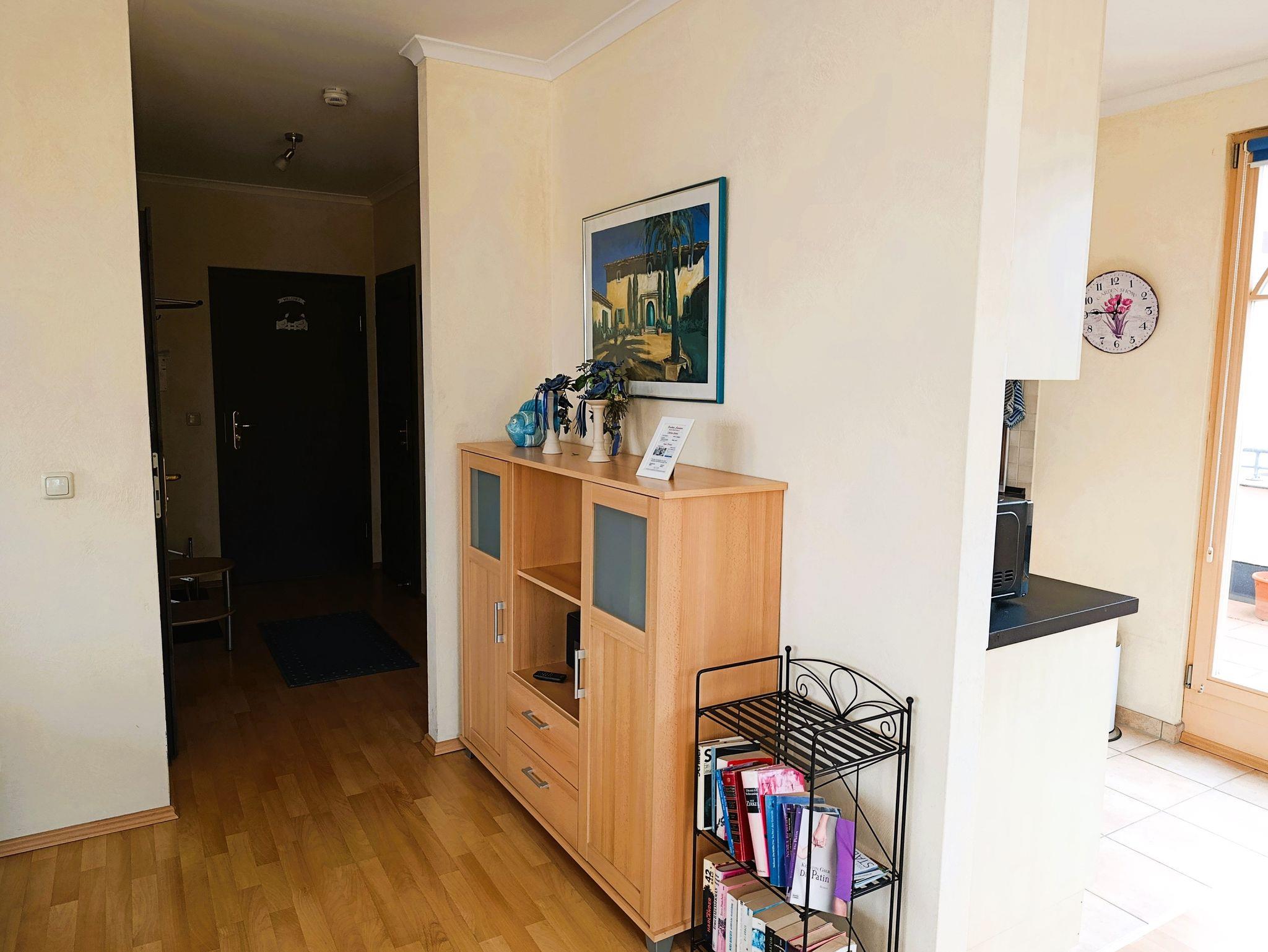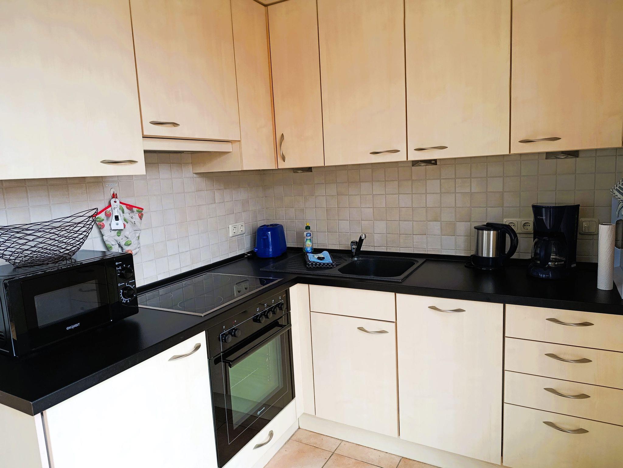 Größe ca. 60 qm - Wohnzimmer mit Schlafcouch, Esstisch, Küchenzeile, Kabel-TV, Radio und 2 Balkone - Flur mit Garderobe - Küchenzeile mit Mikrowelle, Herd mit Backofen, Kühlschrank, Kaffeemaschine und Geschirrspüler. Schlafzimmer mit Doppelbett und Kleidrschrank