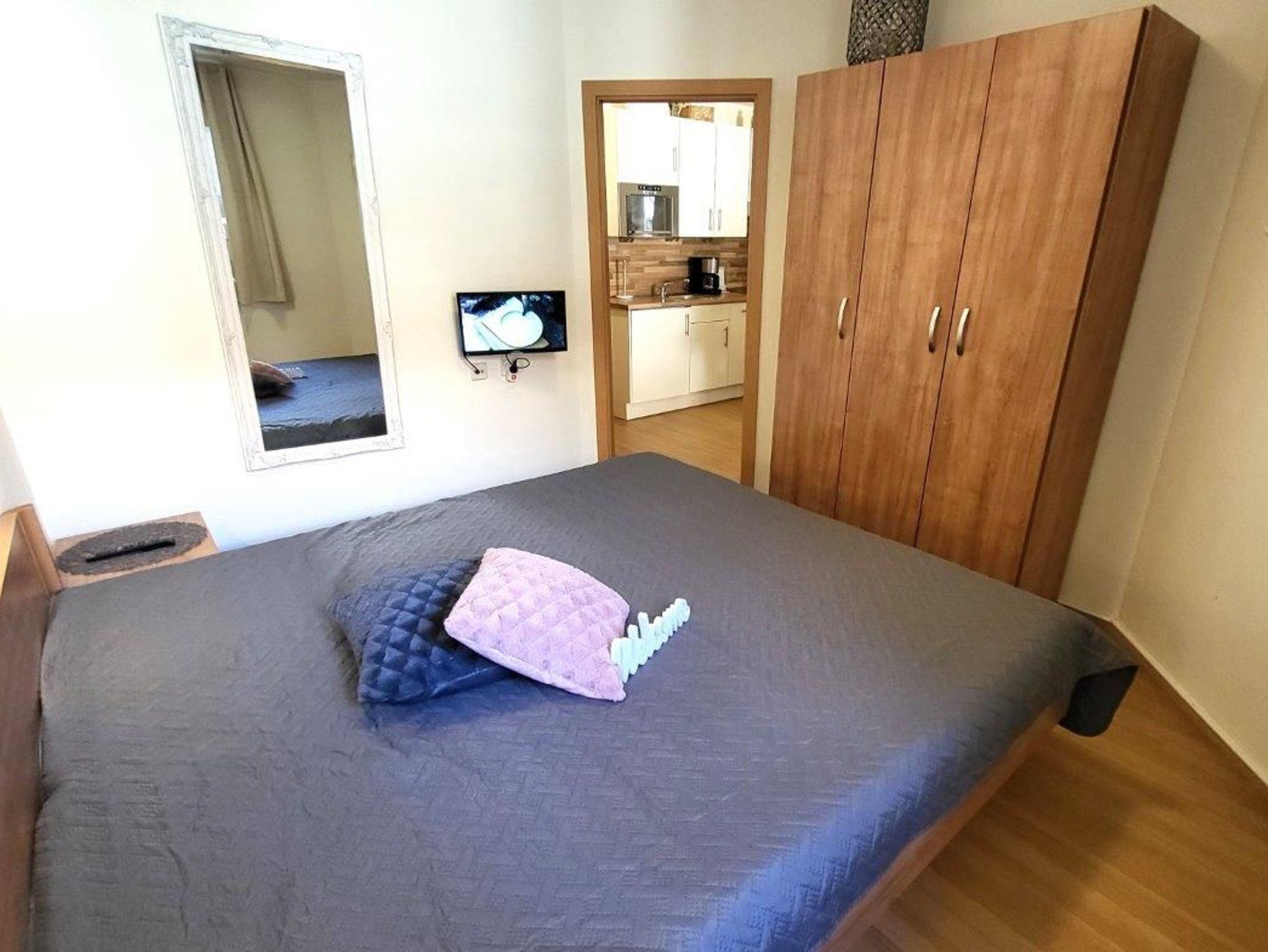 - Schlafzimmer mit Doppelbett und Kleiderschrank