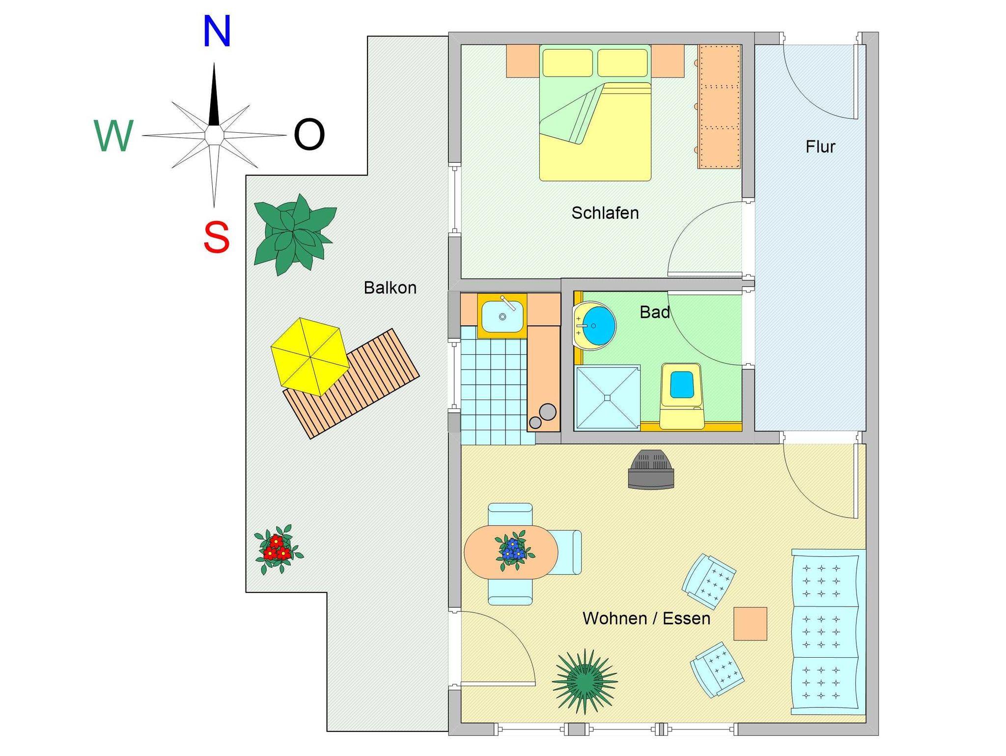 Herzlich willkommen in der Ferienwohnung Nr. 06 in der Villa Casa Nova! Die liebevoll eingerichtete 2-Raum-Ferienwohnung befindet sich im ersten Obergeschoss der Appartementanlage. Auf 36 qm Wohnfläche können hier bis zu 2 Personen erholsame Urlaubstage genießen. Es empfangen Sie ein heller offener Wohn-und Essbereich mit einer Küchenzeile, ein Schlafzimmer, ein Duschbad sowie ein großer Balkon Terrasse mit West-Ausrichtung. Die Wohnung ist mit mediterranen Terracotta-farbenen Designer-Fliesen ausgestattet.