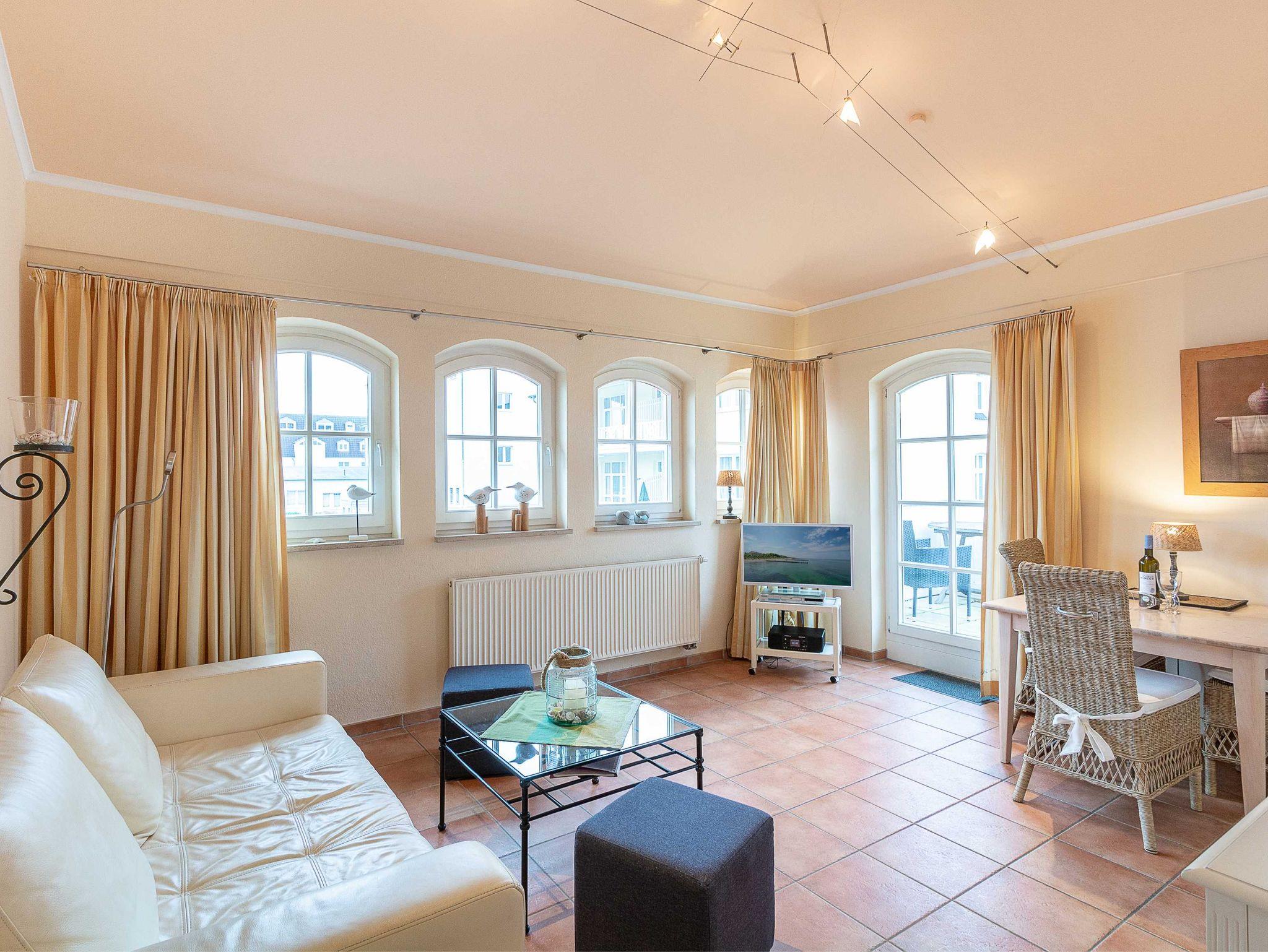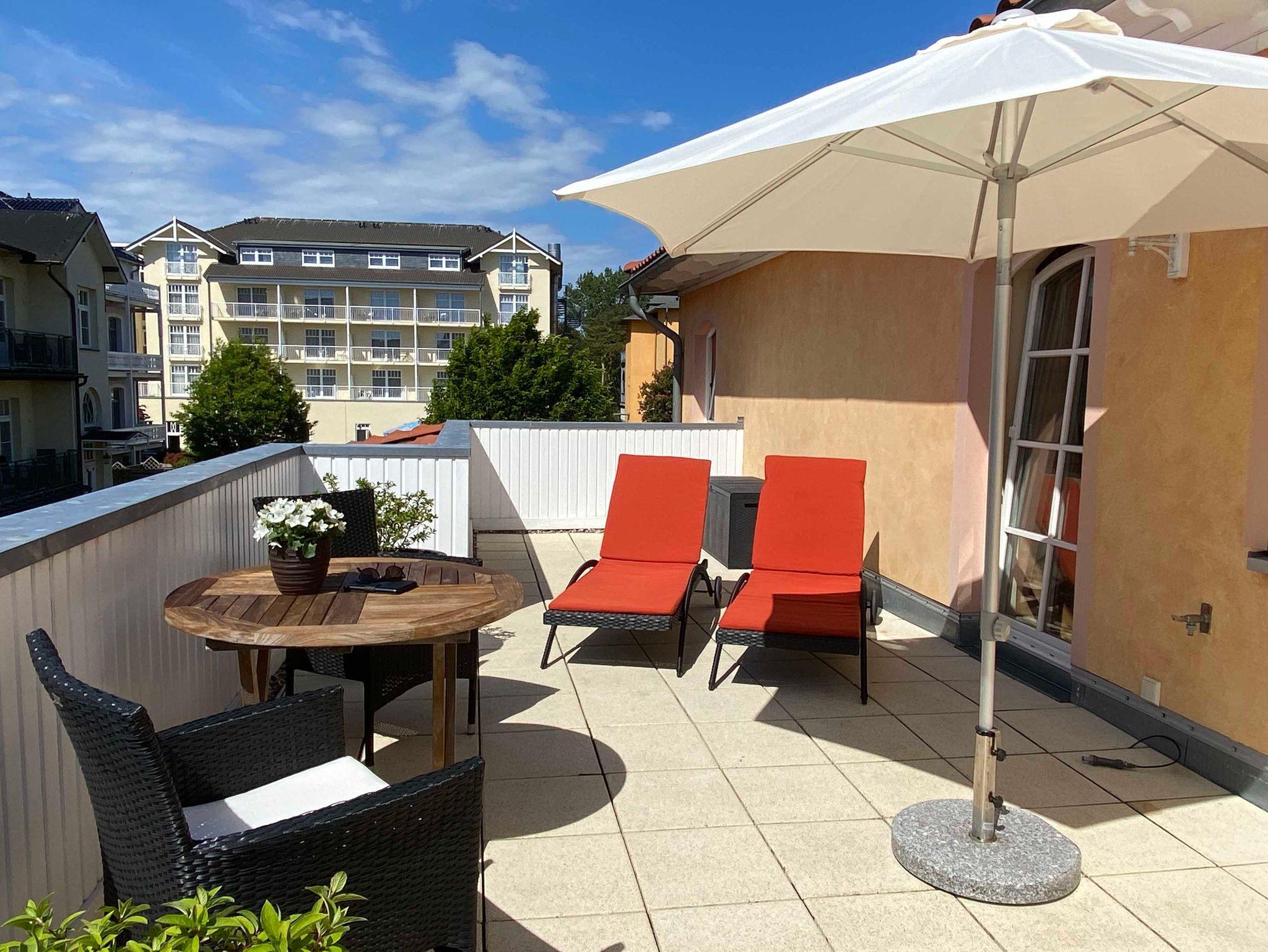 GESCHMACKVOLL EINGERICHTETE 2-RAUM-FERIENWOHNUNG MIT GROSSER WEST-TERRASSE