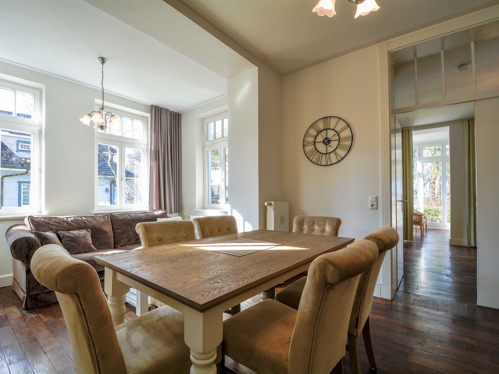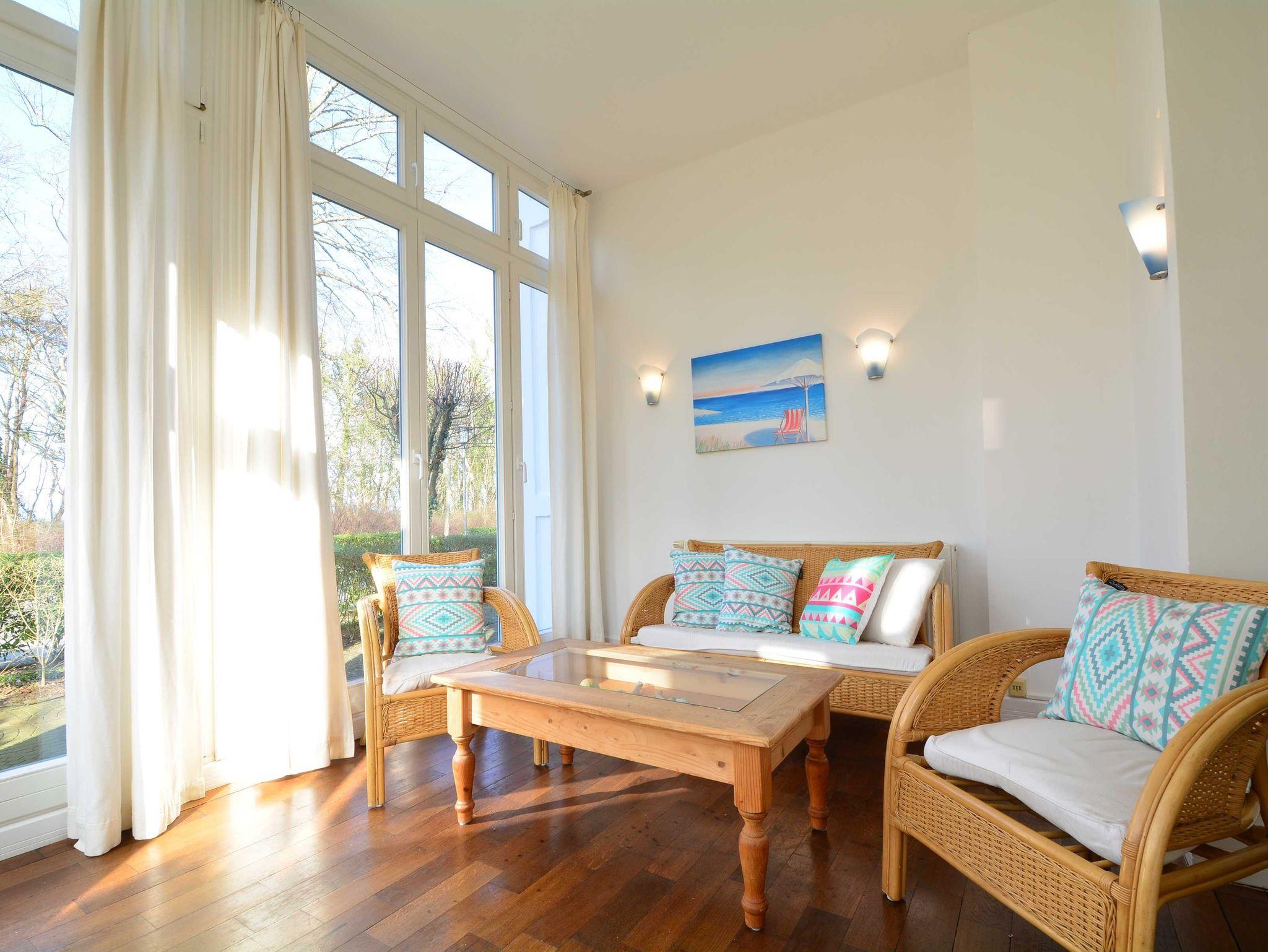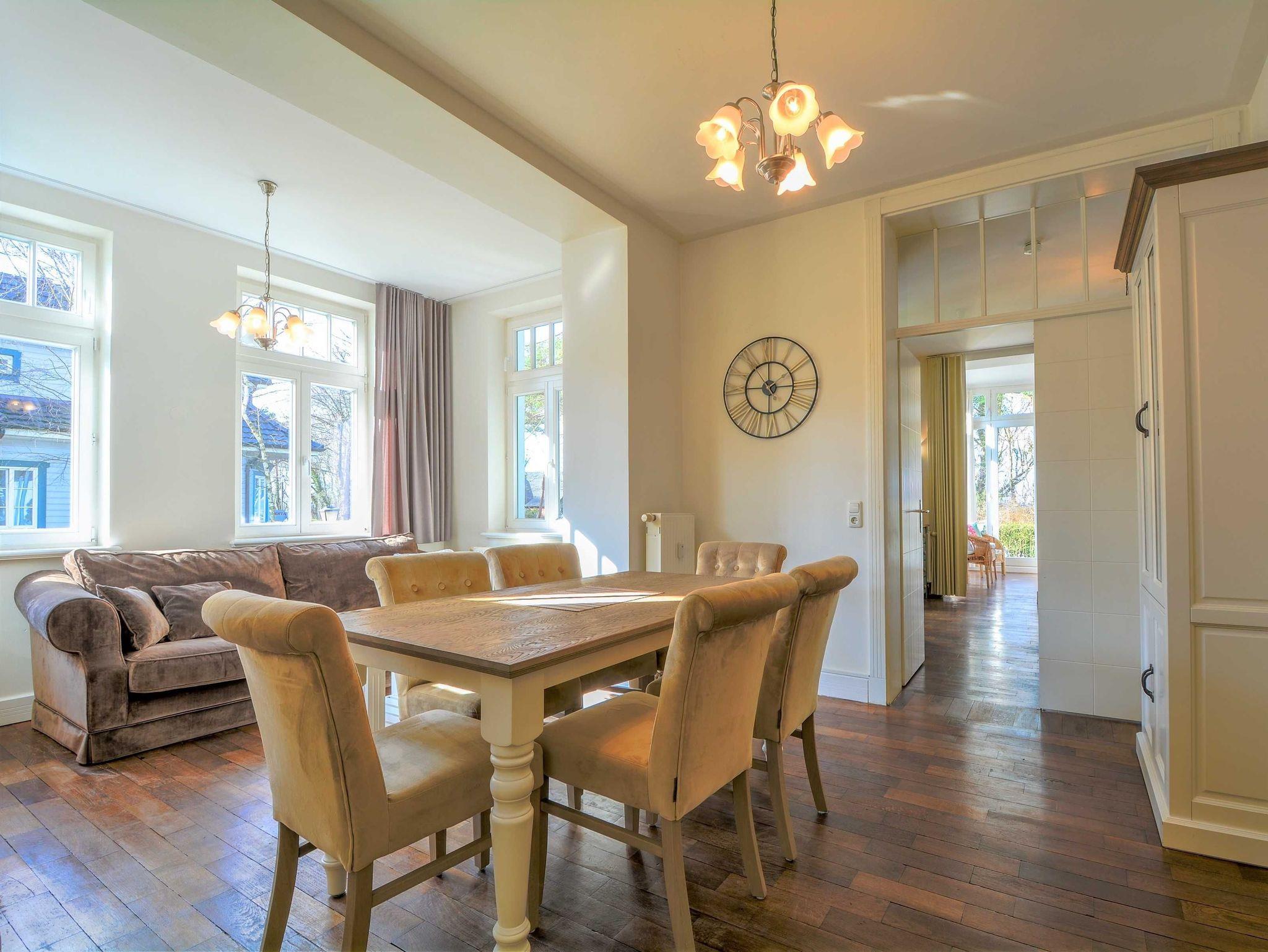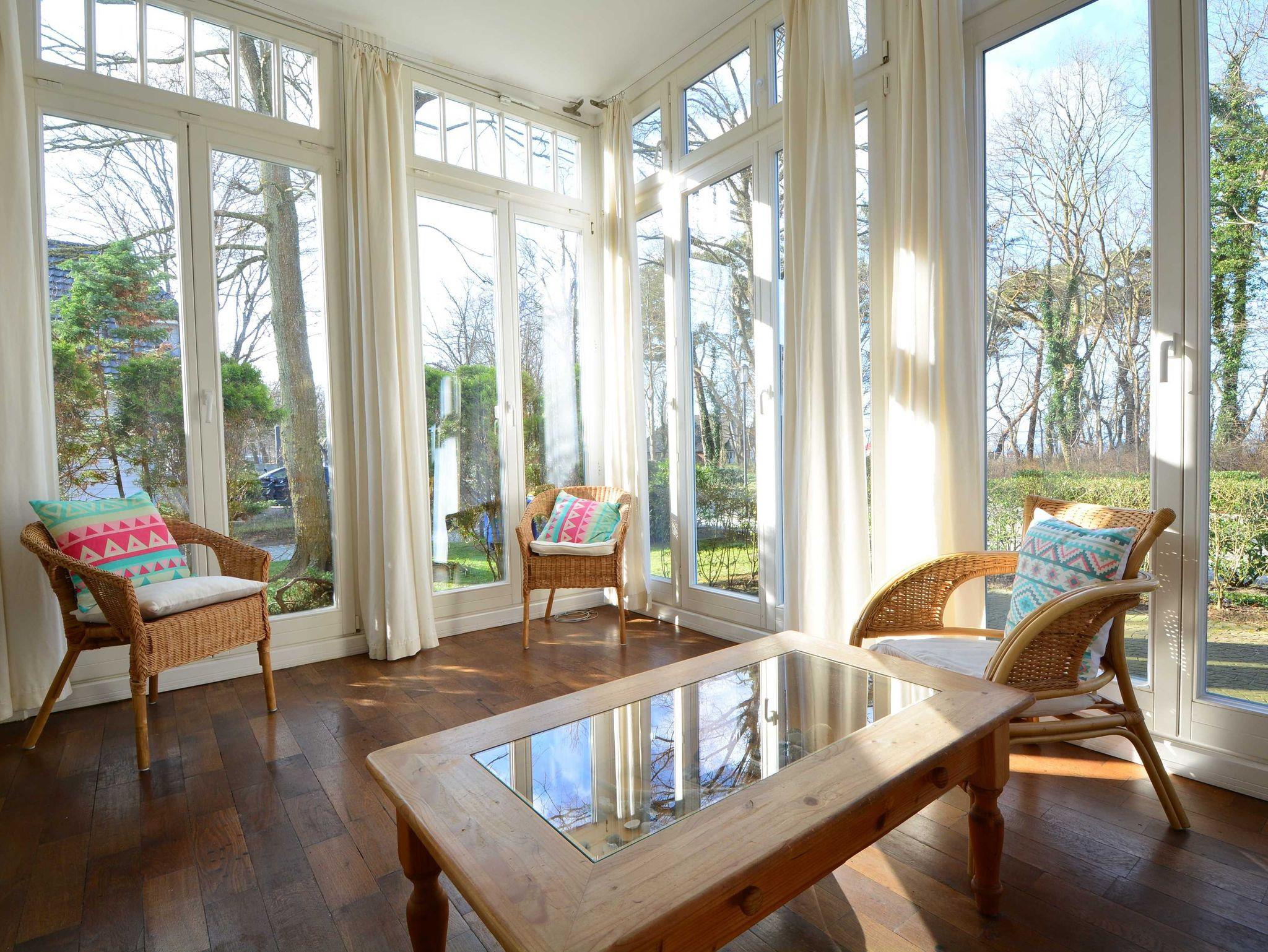 Herzlich willkommen in der Wohnung 3 in der Villa Waldburg. Die rustikal im Landhausstil eingerichtete 3-Raum-Ferienwohnung befindet sich im Erdgeschoss des Appartementhauses und bietet auf 87 qm reichlich Platz für bis zu 4 Personen. Mit einem Wohn- und Essbereich mit separierter Küchenzeile, einem Wintergarten, zwei Schlafzimmern einem Bad und Gäste-WC bietet die Wohnung den idealen Wohnkomfort für Ihren perfekten Ostseeurlaub. Die original erhaltenen Holzfußböden verleihen der Wohnung zudem eine warme und einladende Atmosphäre.