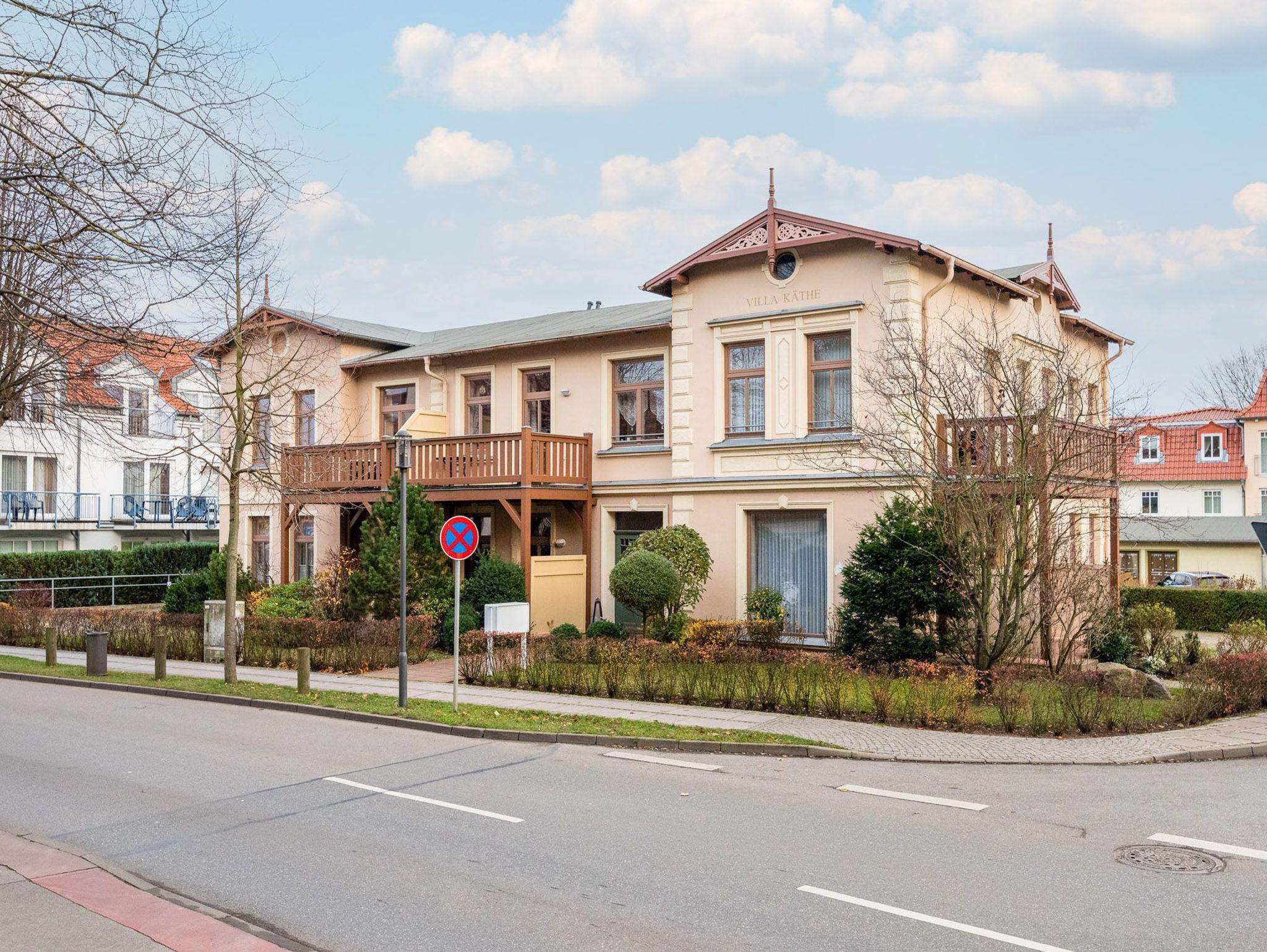 Nur 900 m vom Strand entfernt befindet sich die Ferienwohnung Villa Käthe WE02 in einer typischen Bäderstilvilla von 1906 im Erdgeschoss der Strandstrasse 13.