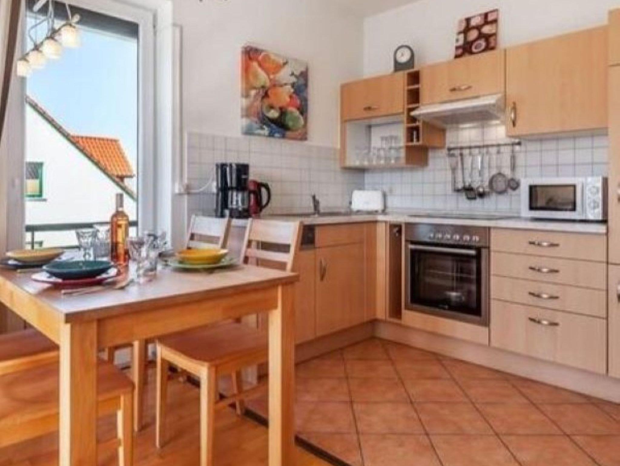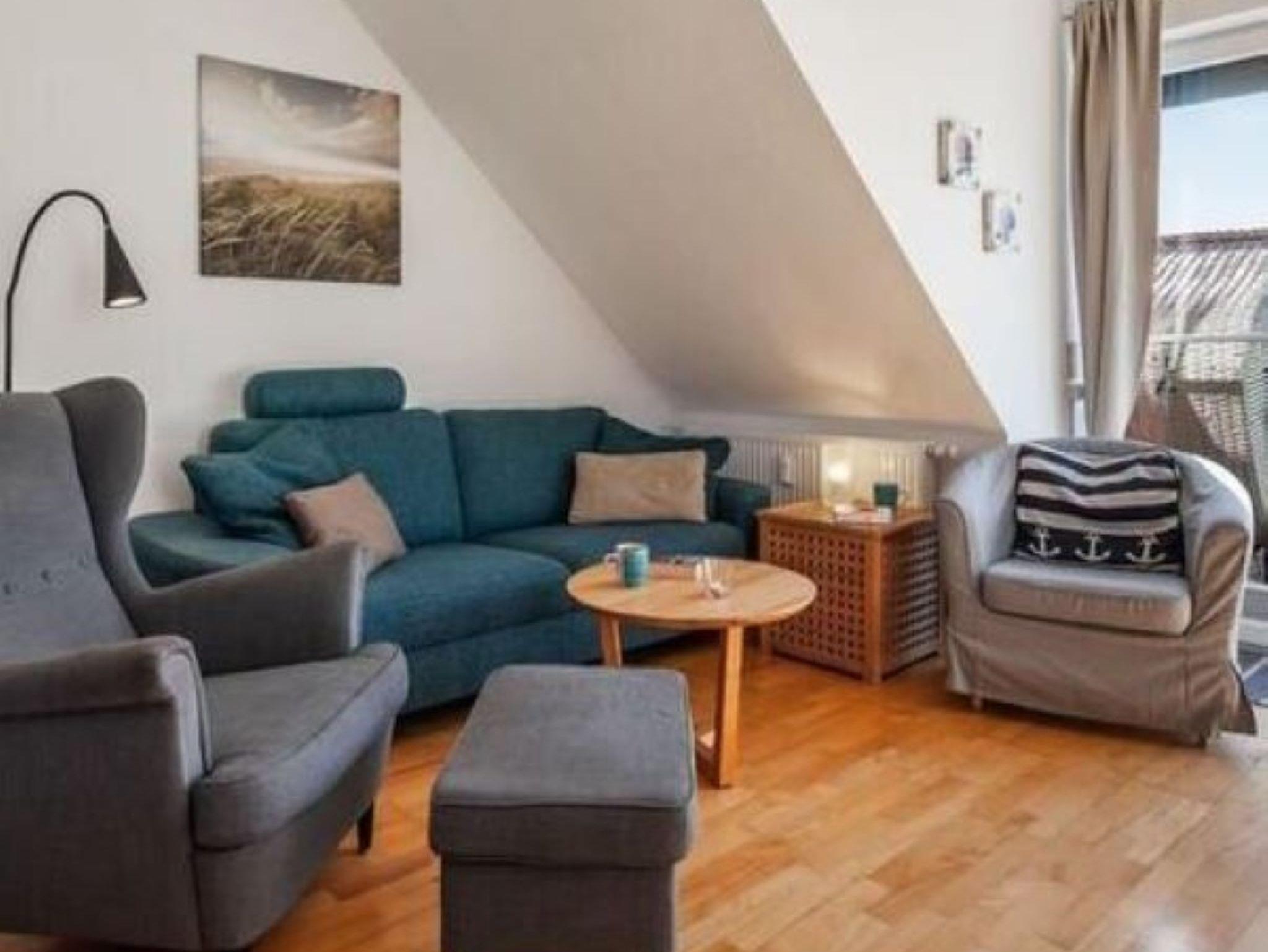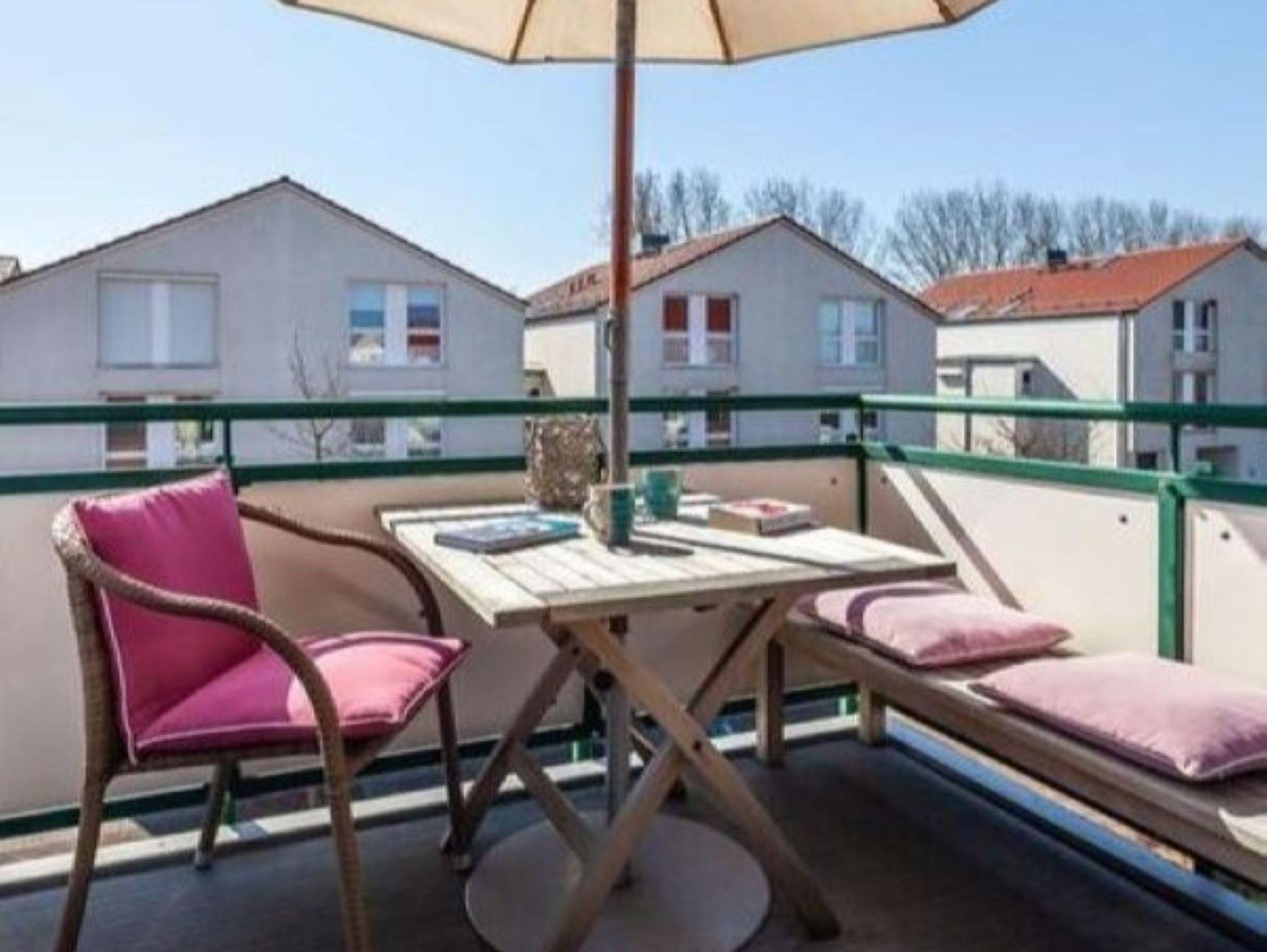 Auf dem Balkon können Sie ganz entspannt die Sonne in einem Strandkorb genießen. Diese Wohnung ist ideal für Familien mit 3 Kindern.