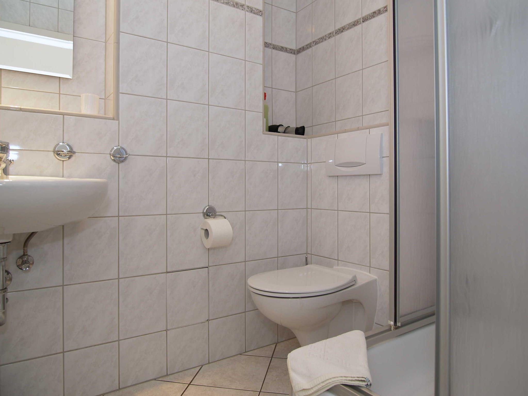 Im Schlafzimmer lädt Sie ein komfortables Doppelbett (2 x 90cm x 200 cm) zur Nachtruhe ein. Der geräumige Kleiderschrank bietet genügend Platz für Ihre Urlaubsgarderobe. Als Sichtschutz bzw. zum Verdunkeln ist im Schlafzimmer ein Plissee und ein Vorhang an den Fenstern angebracht. Das geflieste Bad mit Dusche und WC vervollständigen das Gesamtbild dieser Wohnung.