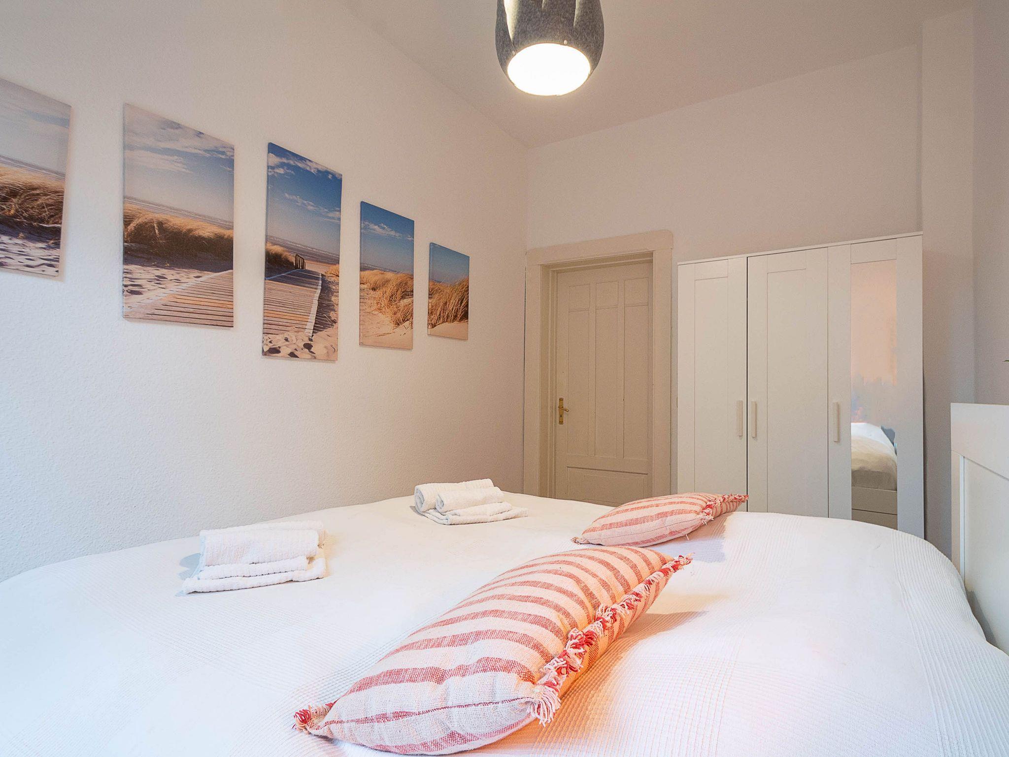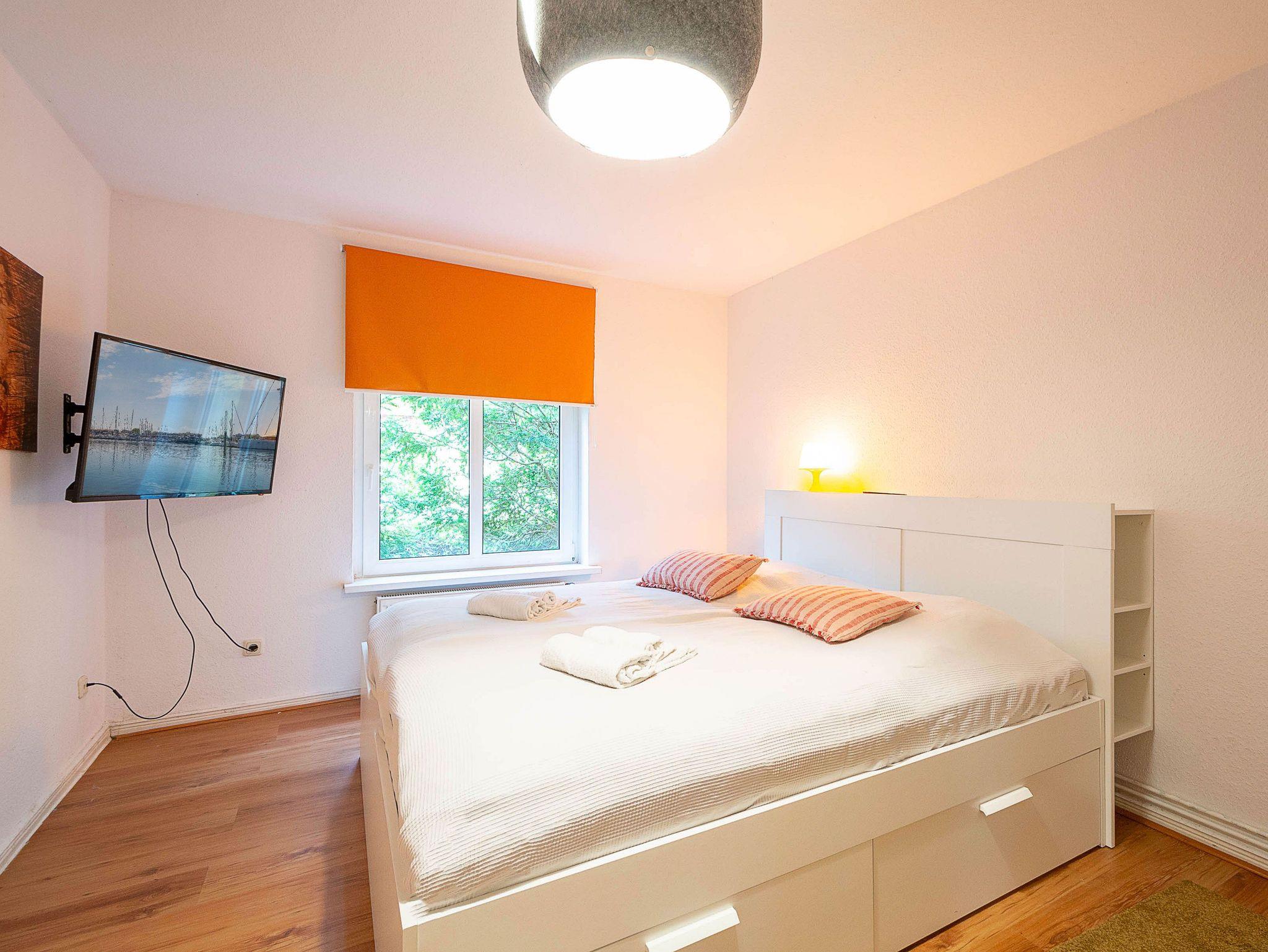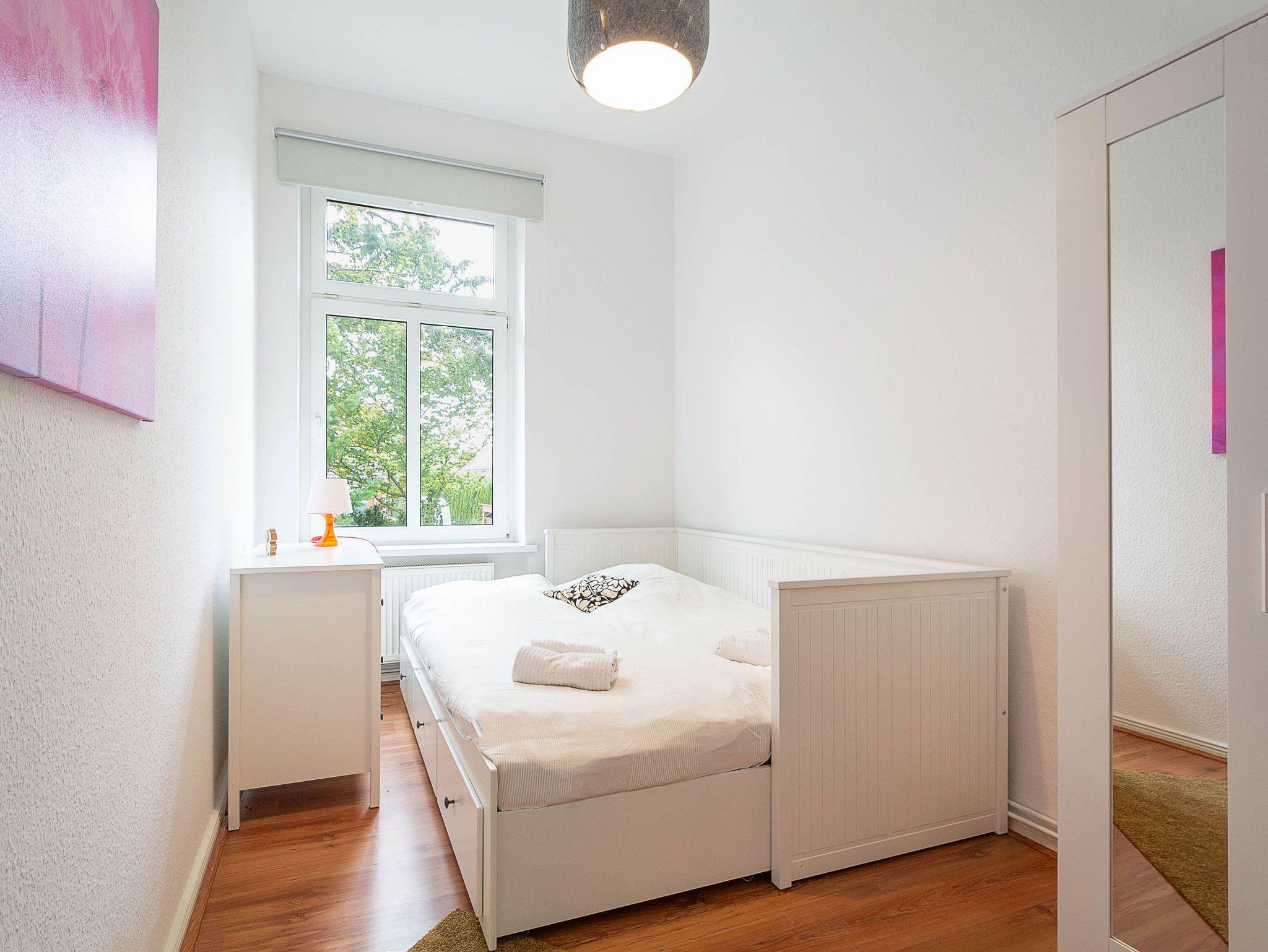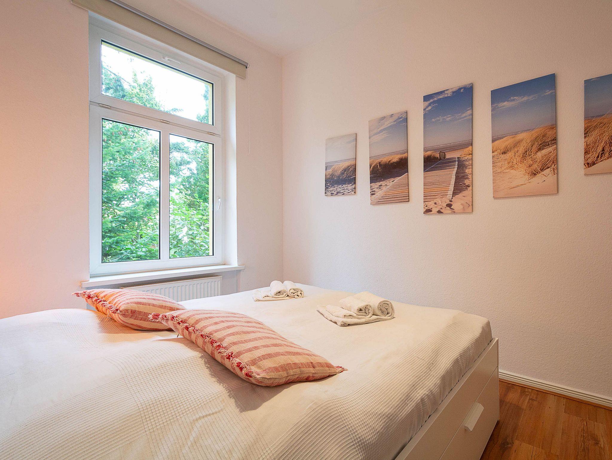 Die Wohnung verfügt über 3 Schlafzimmer, zwei davon sind mit bequemen Doppelbetten (je 180 cm x 200 cm) eingerichtet, das dritte Schlafzimmer verfügt über ein ausziehbares Kojenbett (80 cm x 200 cm / ausgezogen 160 cm x200 cm).