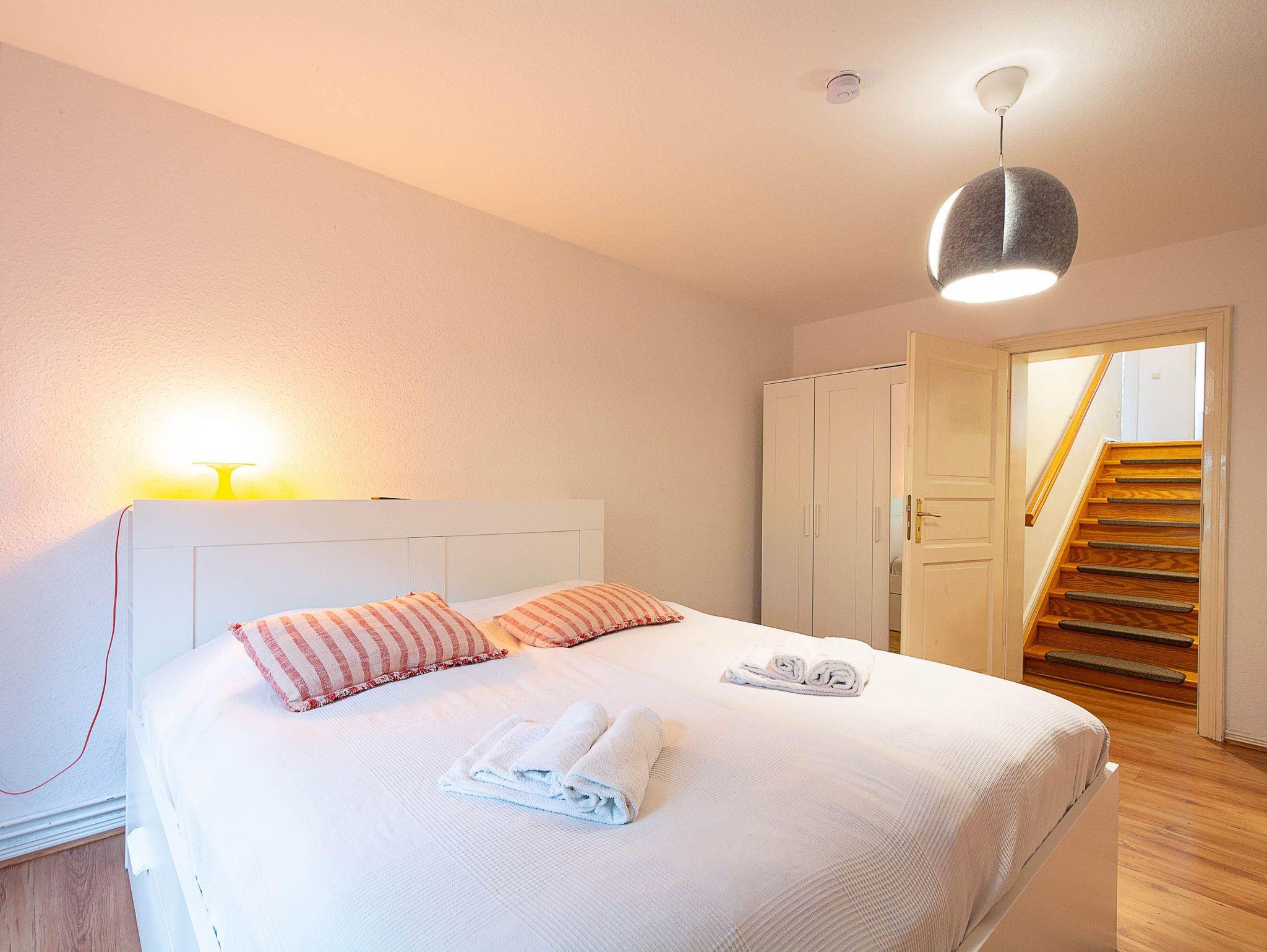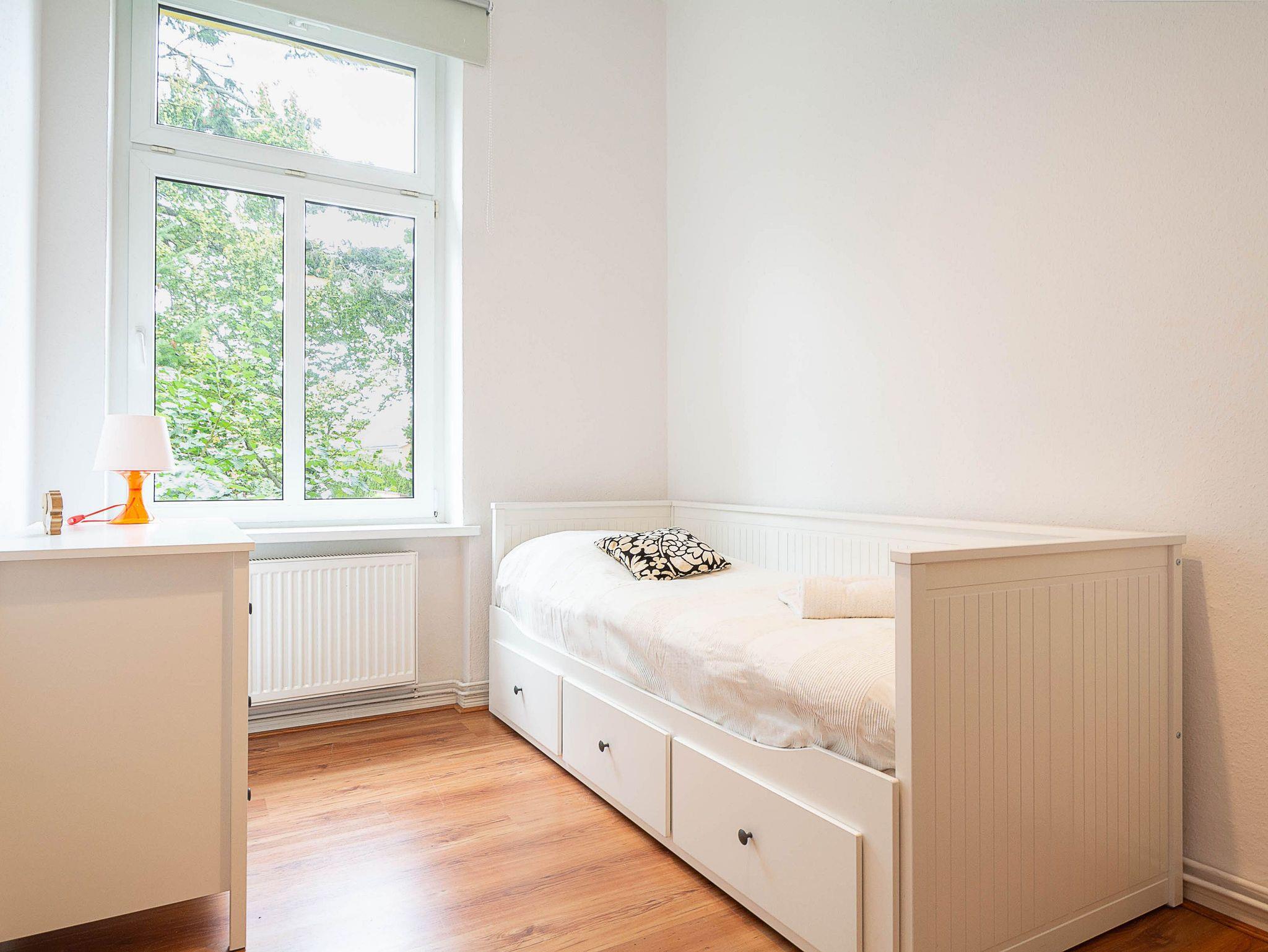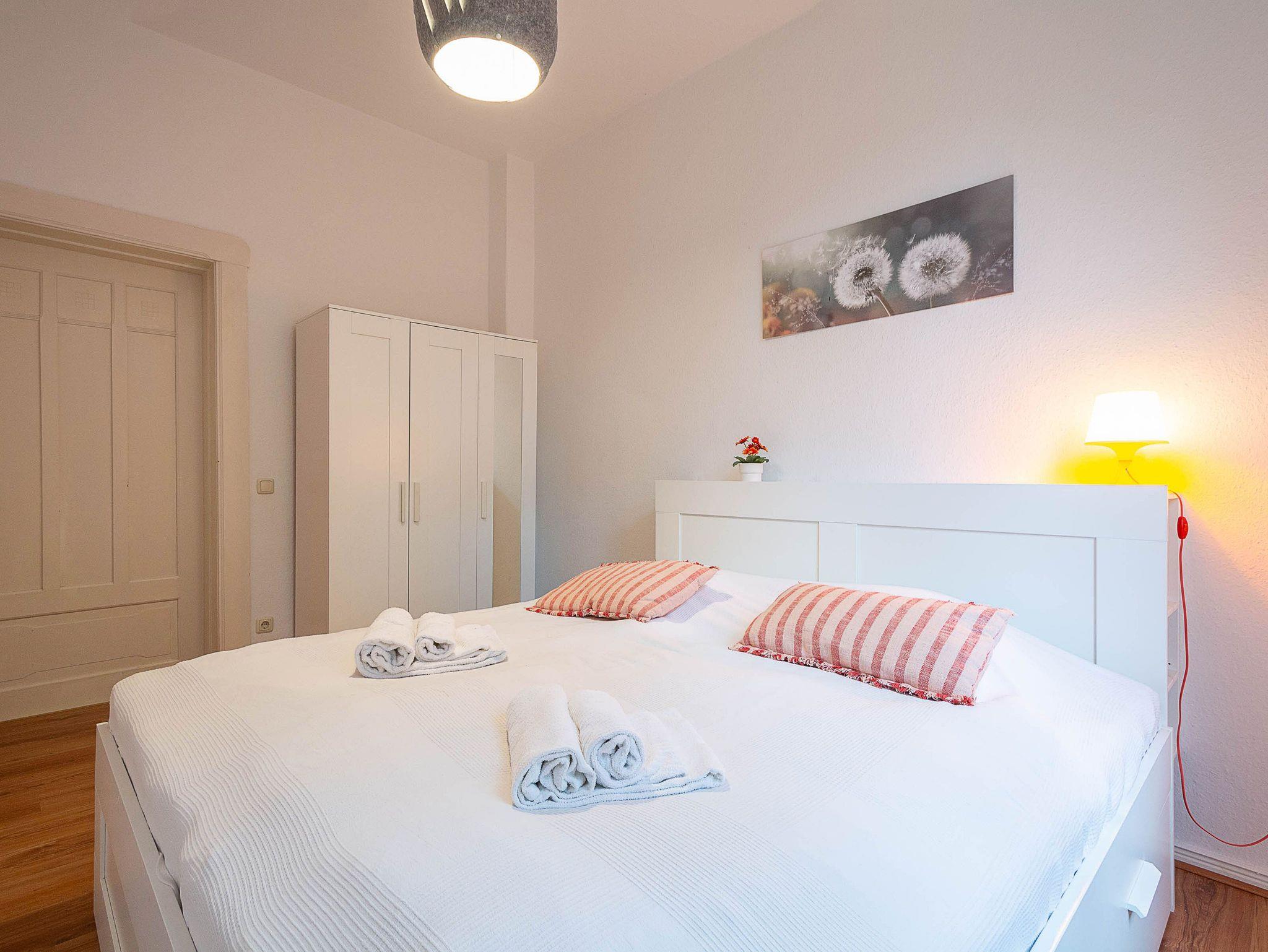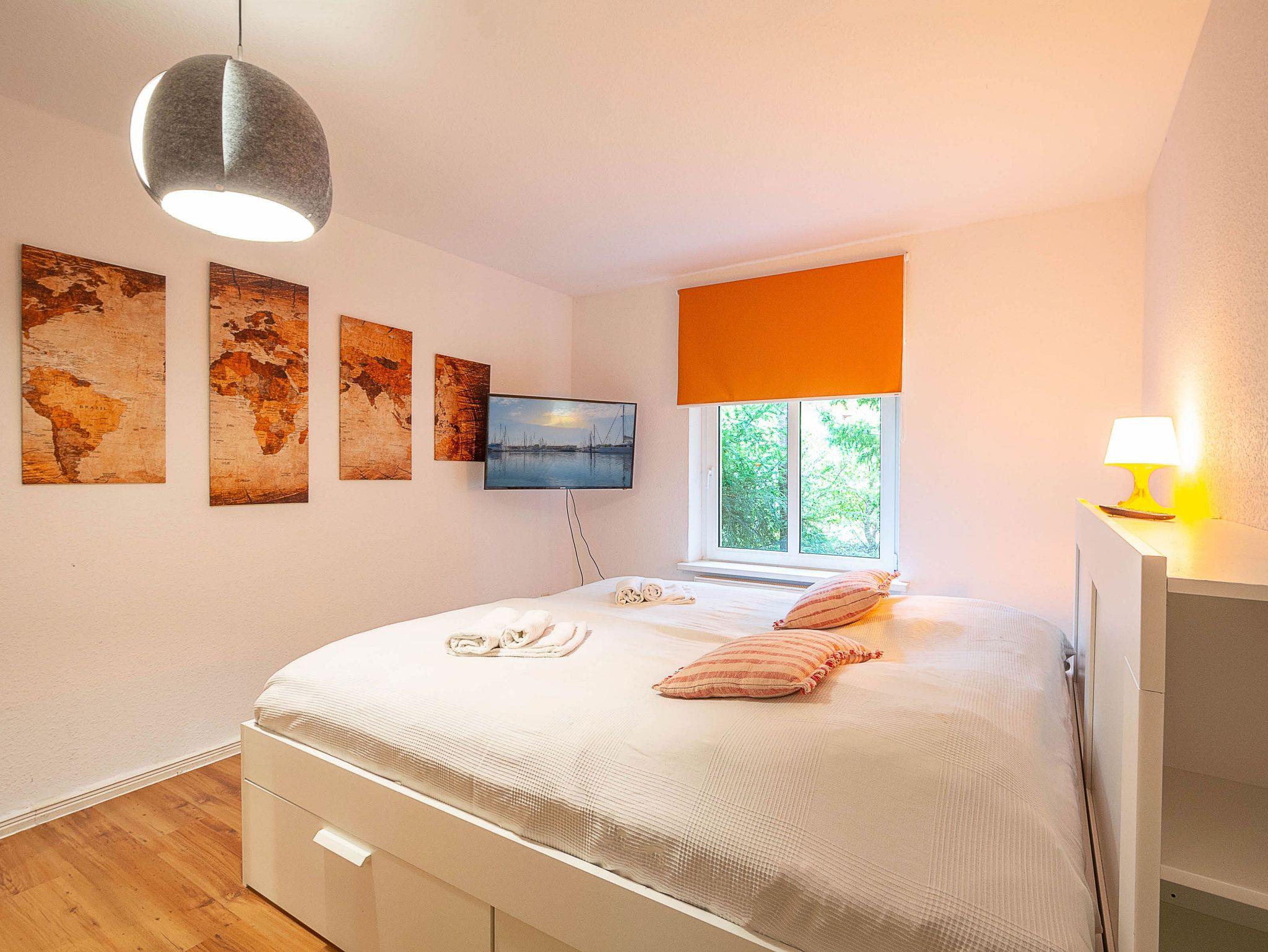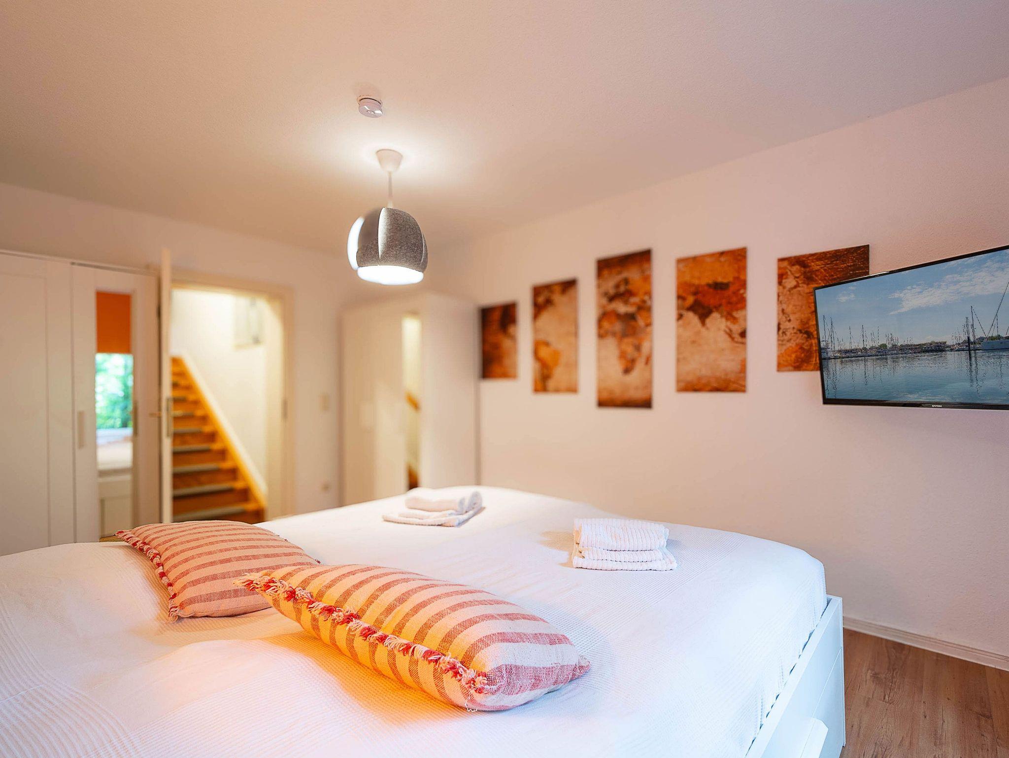 Die Wohnung verfügt über 3 Schlafzimmer, zwei davon sind mit bequemen Doppelbetten (je 180 cm x 200 cm) eingerichtet, das dritte Schlafzimmer verfügt über ein ausziehbares Kojenbett (80 cm x 200 cm / ausgezogen 160 cm x200 cm).