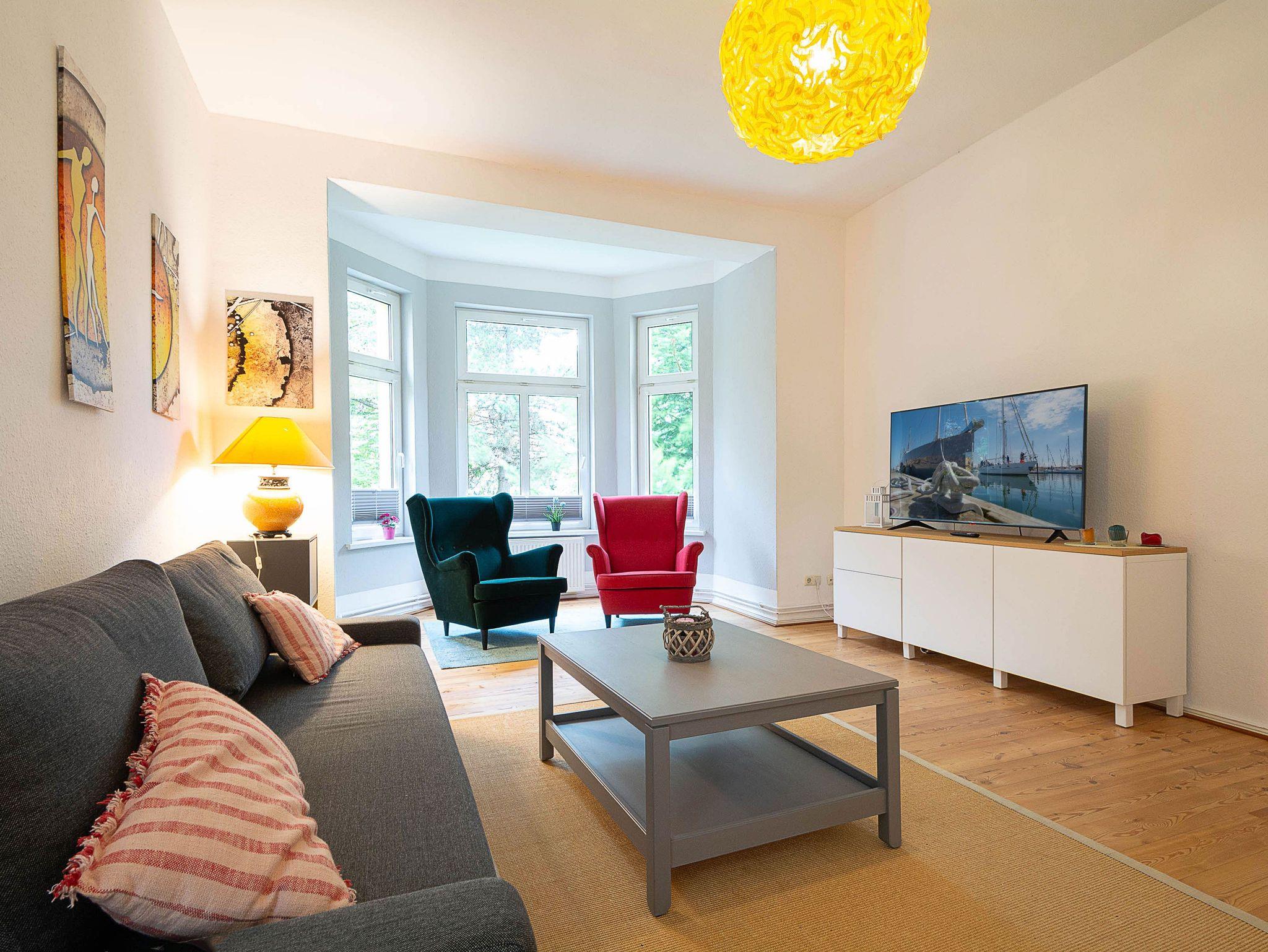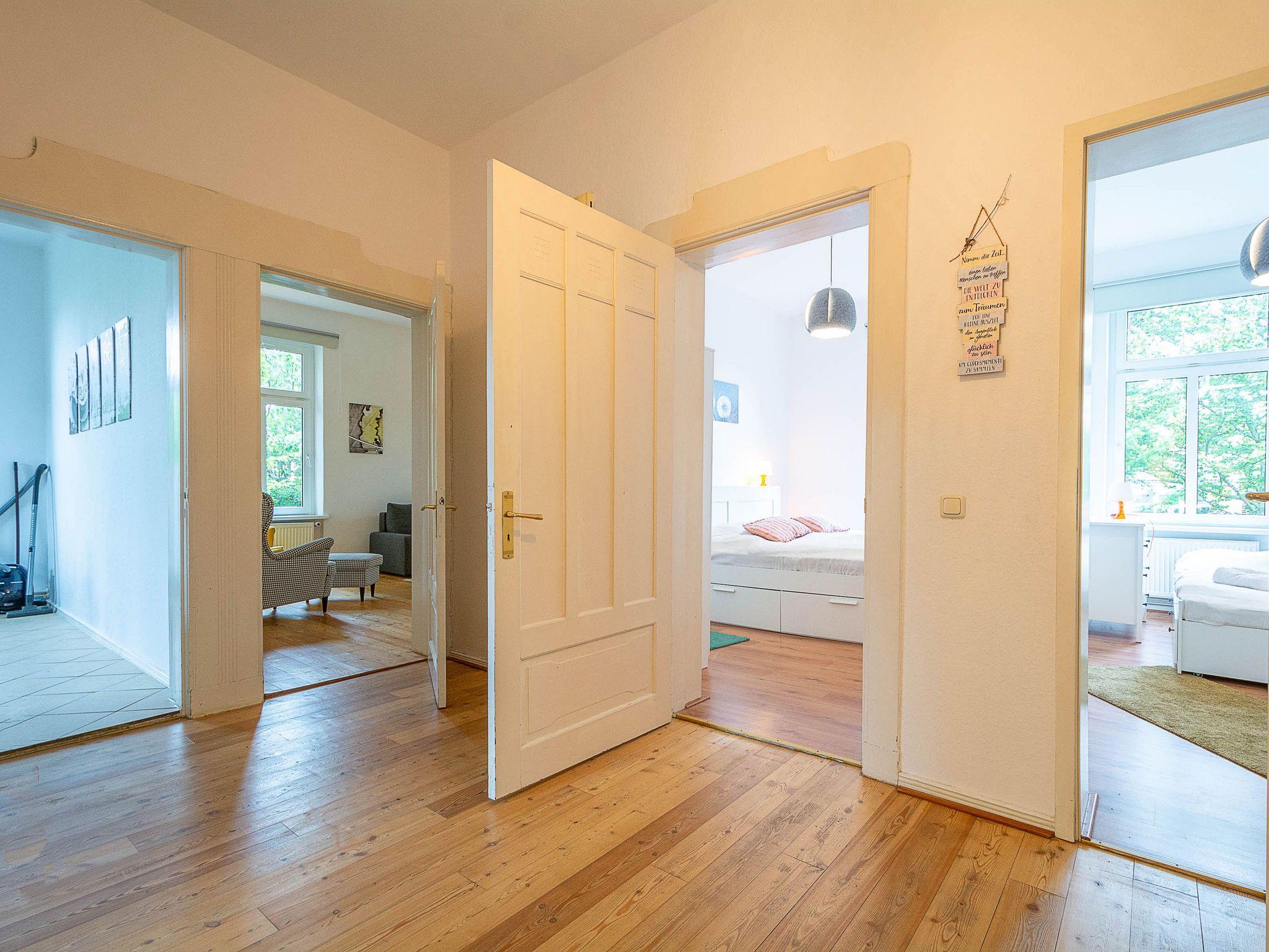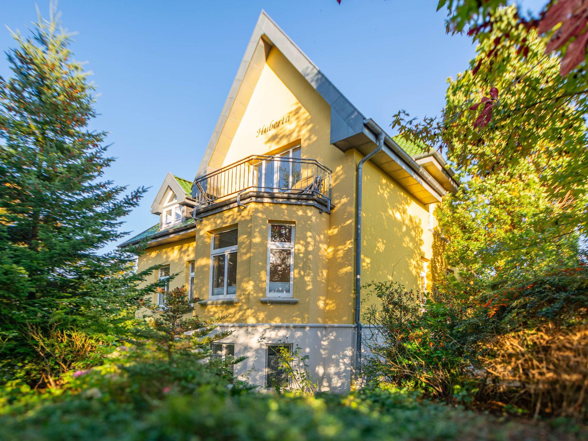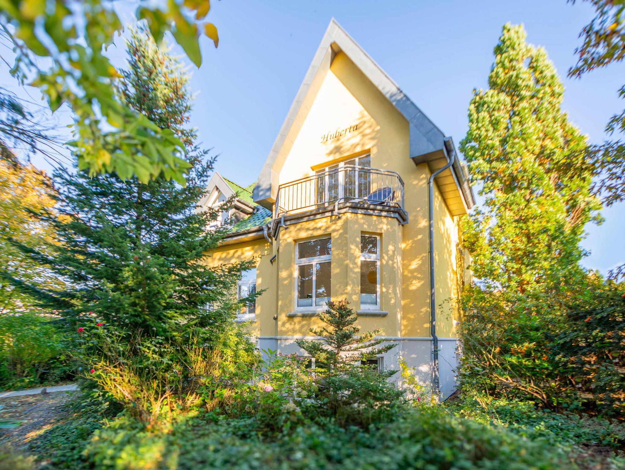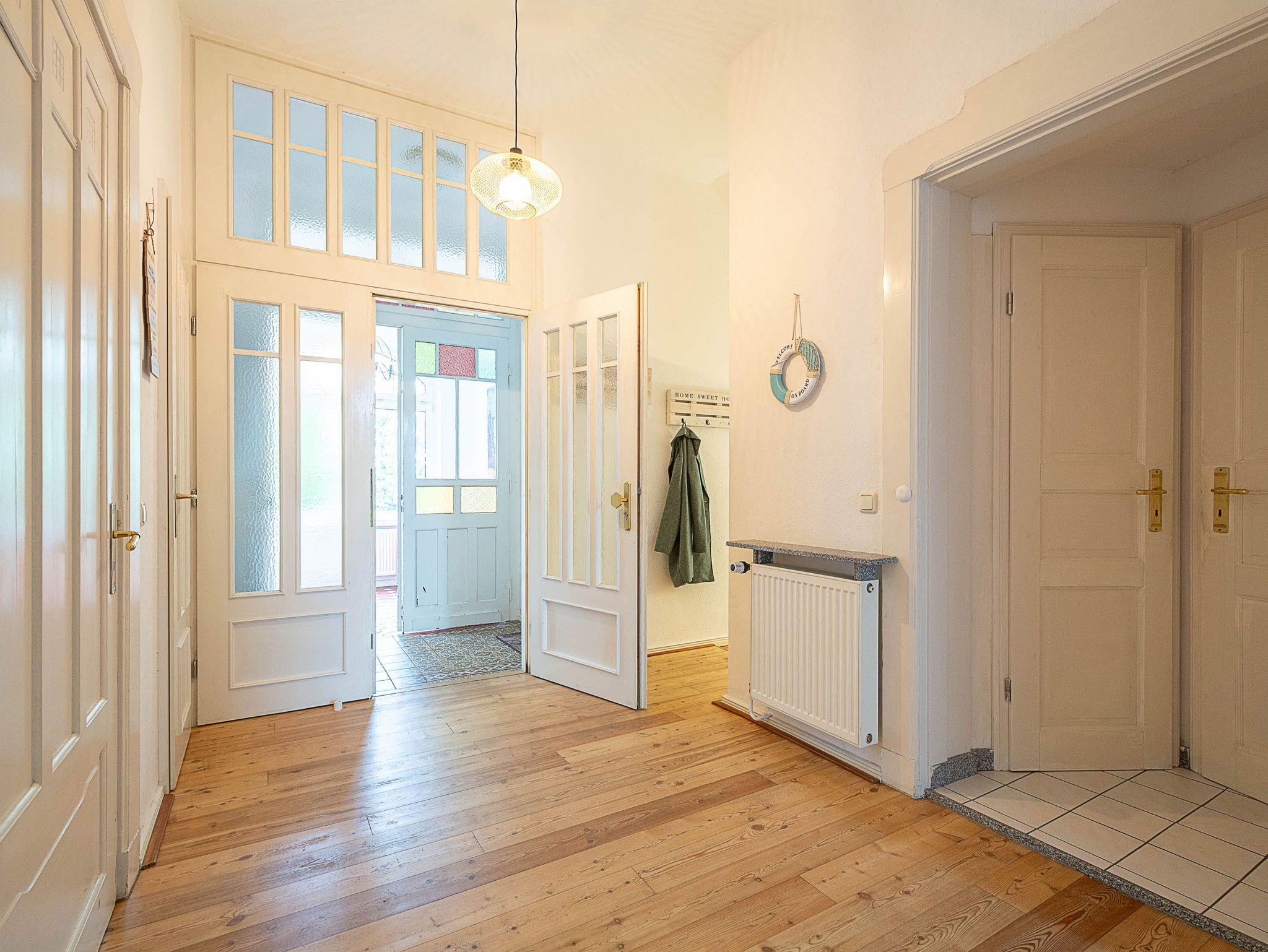 Herzlich willkommen in der Wohnung Nr. 01 in der Villa Huberta! Die helle freundliche 4-Raum-Ferienwohnung befindet sich im Hochparterre der wunderschönen Jugendstilvilla und bietet auf 110 qm Platz für 6 Personen. Die Wohnung verfügt über 3 Schlafzimmer, 2 Bäder, eine separate Küche und eine Süd-Terrasse. Die gesamte Ferienwohnung ist mit hochwertigem Echtholzfußboden ausgestattet, der für eine warme und einladende Atmosphäre sorgt.