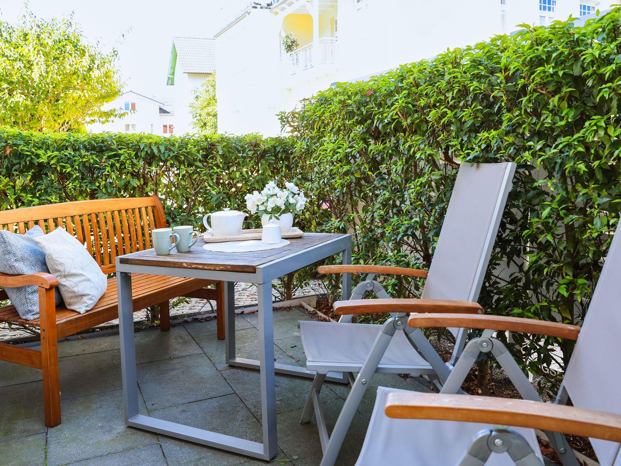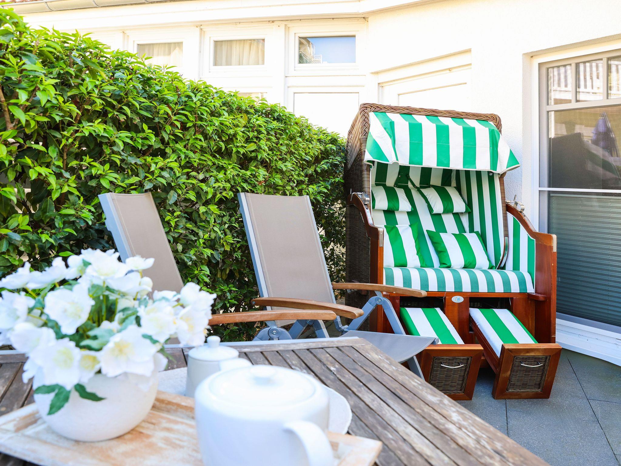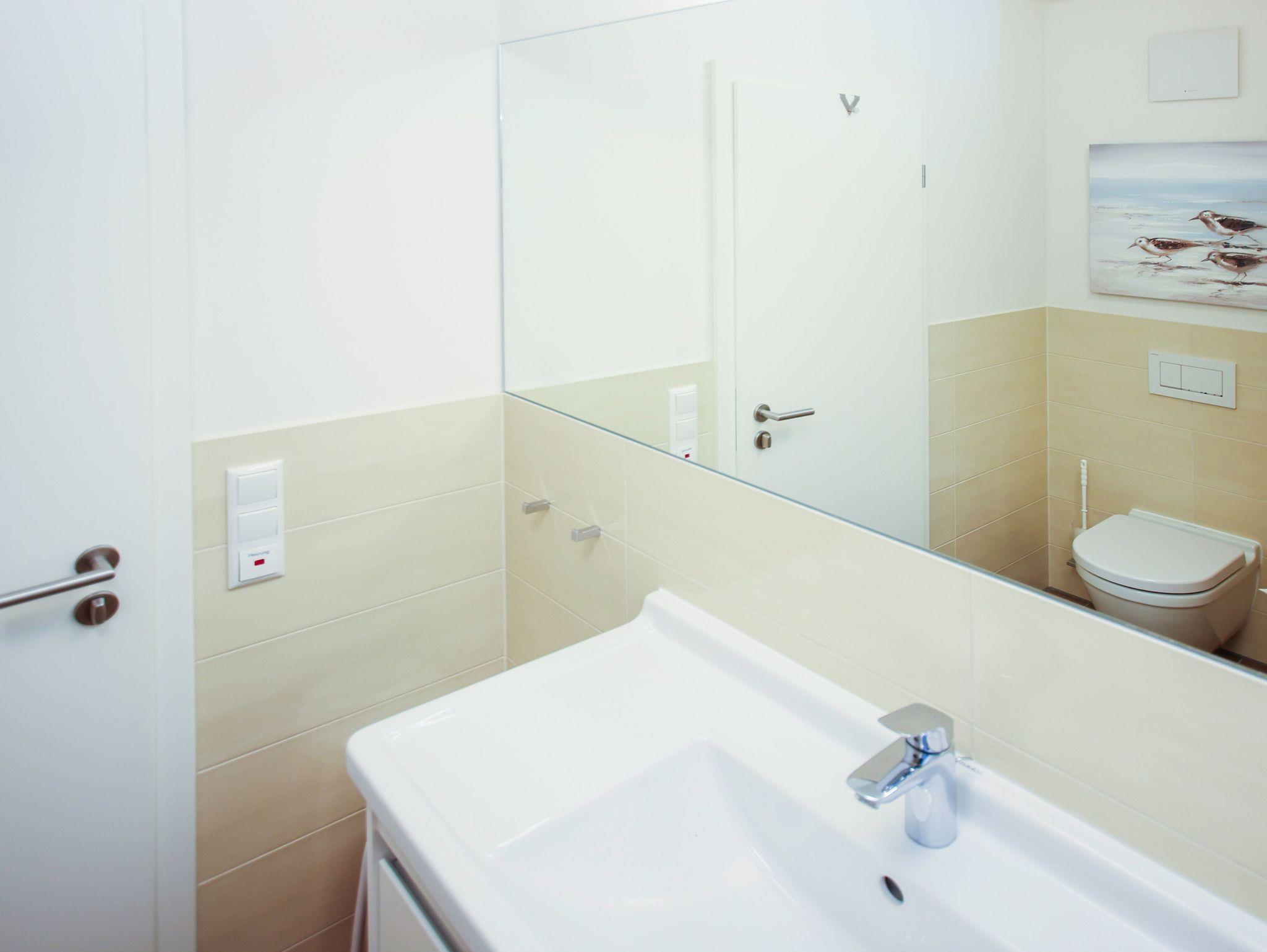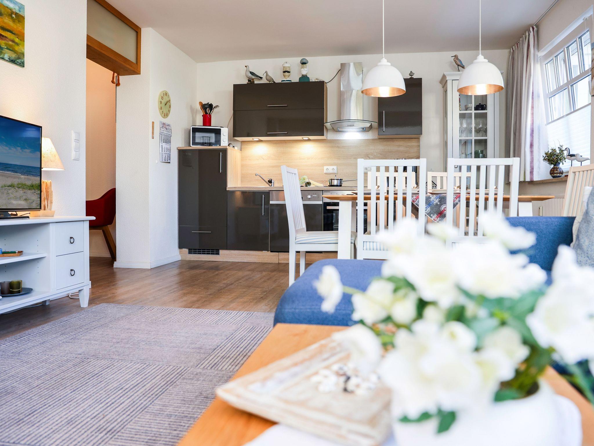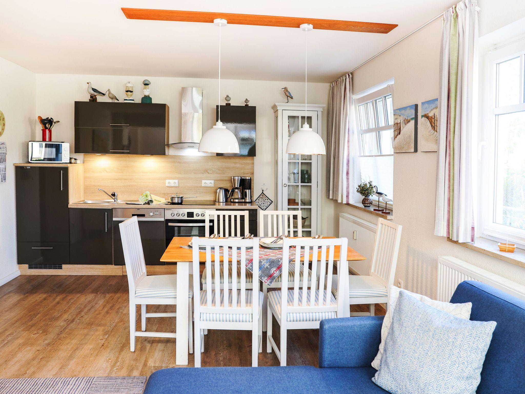 Dieses geräumige 2-Raum-Ferienwohnung strahlt einen ganz besonderen Charme aus. Die Küchenzeile ist mit hochwertigen Geräten wie, Geschirrspüler, E-Herd mit Backofen, Kühlschrank, Mikrowelle, Kaffeemaschine und div. Geschirr ausgestattet. Das Bad mit ebenerdiger Dusche und WC ist geschmackvoll eingerichtet. Die Terasse zur Nordseite komplettiert den hervorragenden Gesamteindruck der Wohnung.