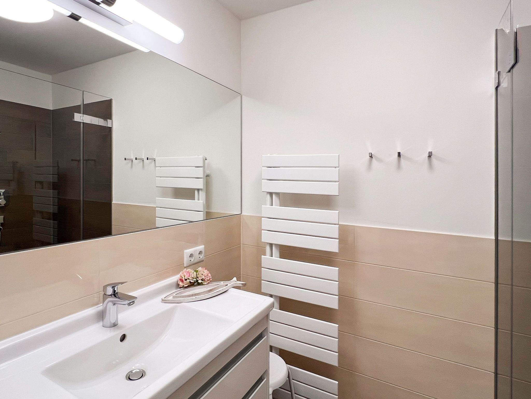 Bad mit ebenerdiger Dusche, WC und Terrasse