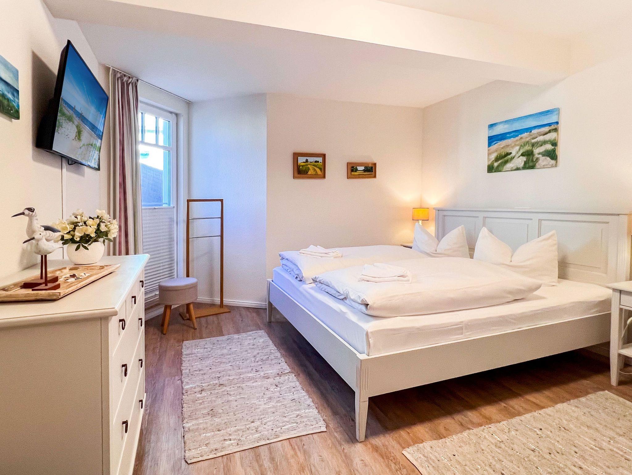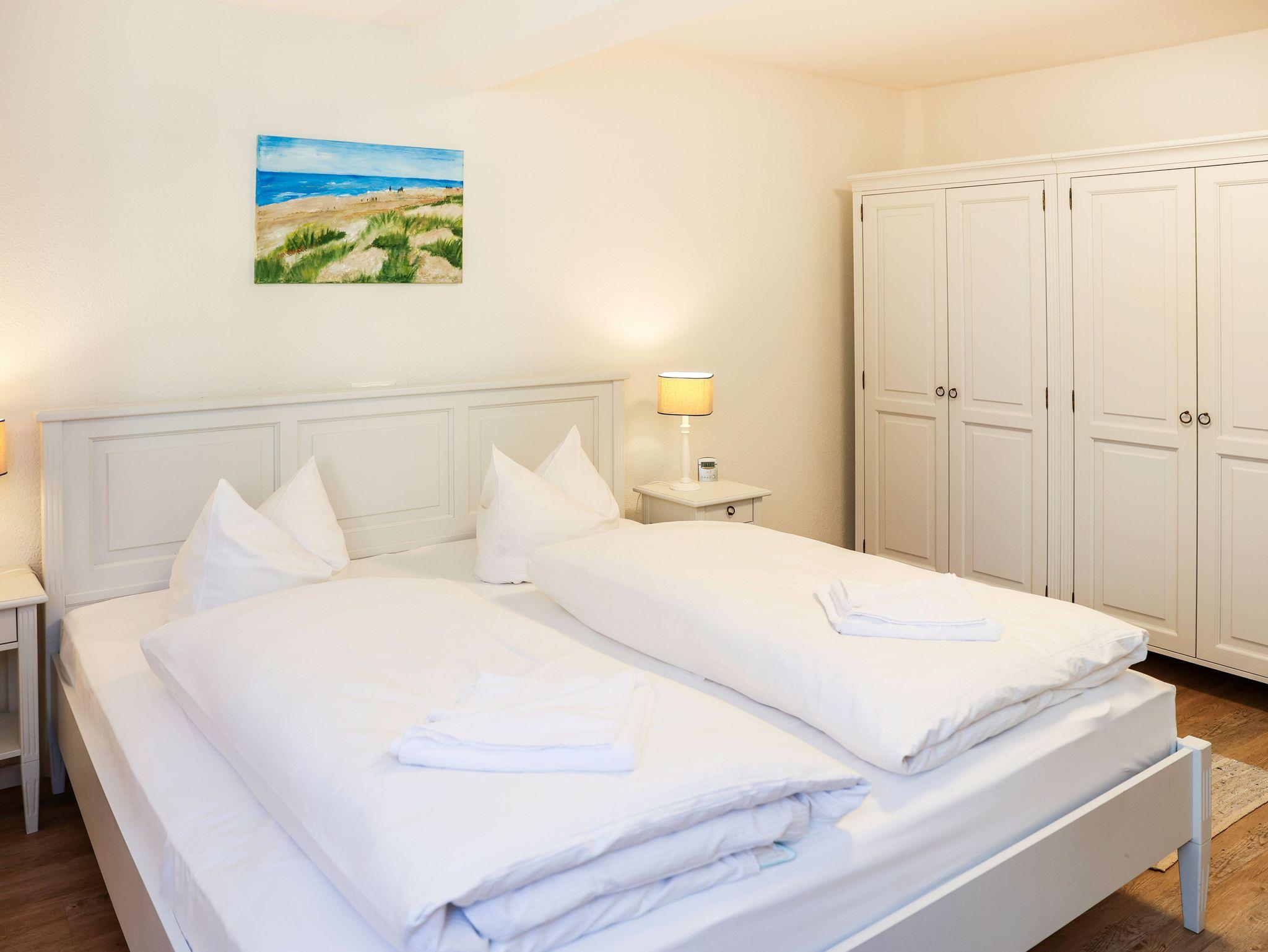 Schlafzimmer mit Doppelbett und Kleiderschrank