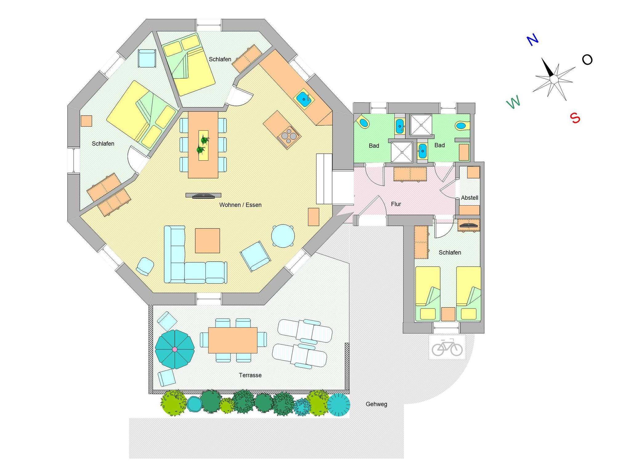Wir bitten um Ihr Verständnis, dass in dieser Nichtraucherwohnung keine Haustiere erlaubt sind. Gästen dieser wunderschönen Ferienwohnungen stehen 2 kostenlose Pkw-Stellplätze zur Verfügung. Am Haus befindet sich ein Schuppen, in dem Sie Ihre Fahrräder o.ä. unterbringen können.