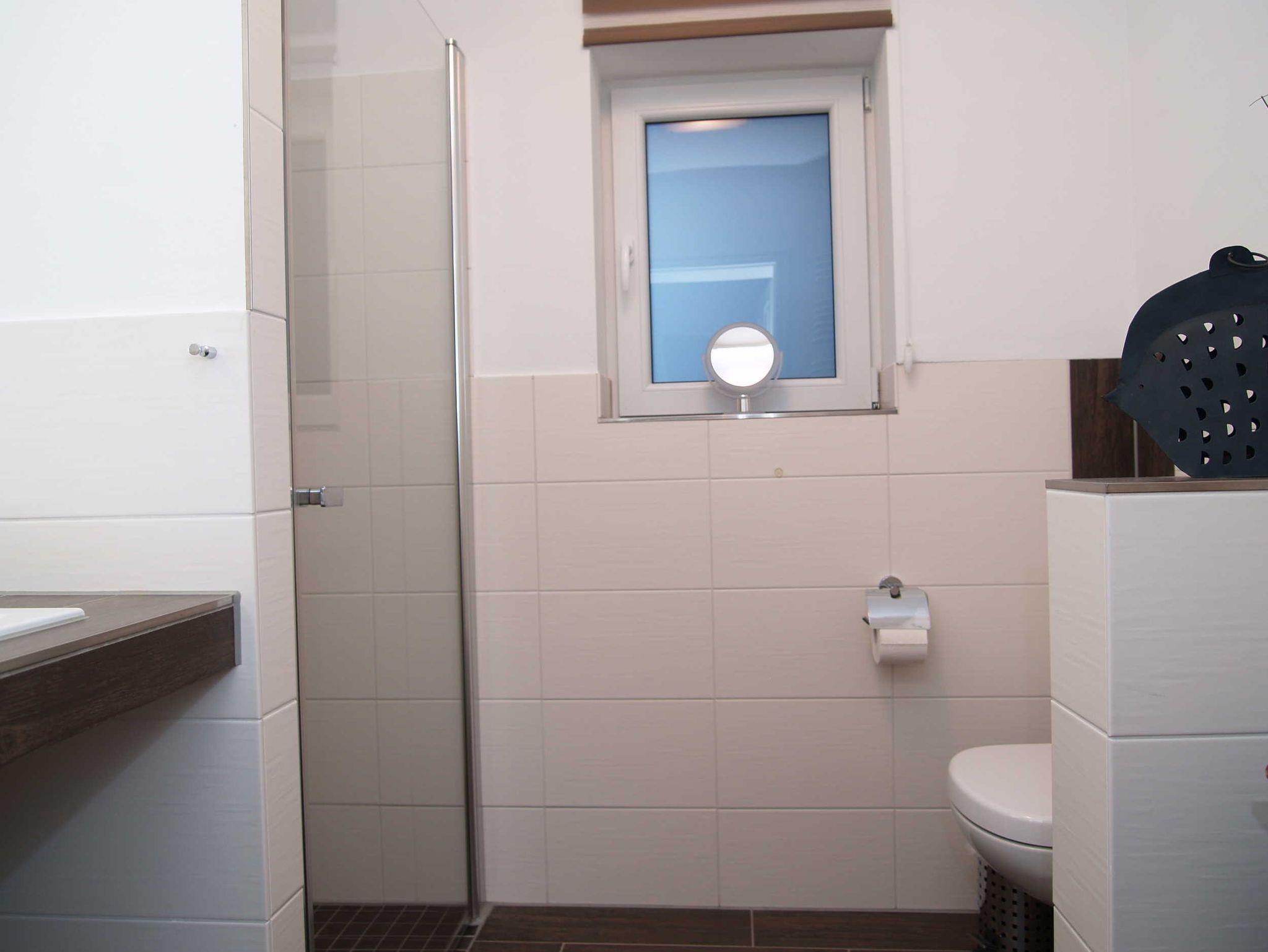 Sie wohnen in einer 100 qm großen 4-Raum-Ferienwohnung, die sich im Erdgeschoss befindet. Der Wohnbereich mit der gemütlichen Couchgarnitur und dem in der Holzkonstruktion integrierten Fernseher runden die Kombination aus neuestem modernen Wohnen und uriger Gemütlichkeit ab. Die Schlafzimmer sind ausgestattet: 1.Schlafzimmer: Doppelbett 180x200 und Kleiderschrank. 2. Schlafzimmer: 2 Einzelbetten je 90x200, Kleiderschrank und LCD-Fernseher. 3. Schlafzimmer: 1 Bett 140x200, Kleiderschrank. Die voll ausgestattete Küche beinhaltet alle wichtigen Geräte und Utensilien (Geschirrspüler, Ceranfeld, Backofen, Mikrowelle, Gefrierfach u.v.m). Gleich 2 Bäder mit Fußbodenheizung, bodengleicher Dusche und WC vervollständigen das Gesamtbild dieser traumhaften Wohnung. Die große Bangkirai Süd-Terrasse mit Tisch und Stühlen, großer Sonnenschirm und Grillmöglichkeit laden zum Sonnen und entspannen ein.