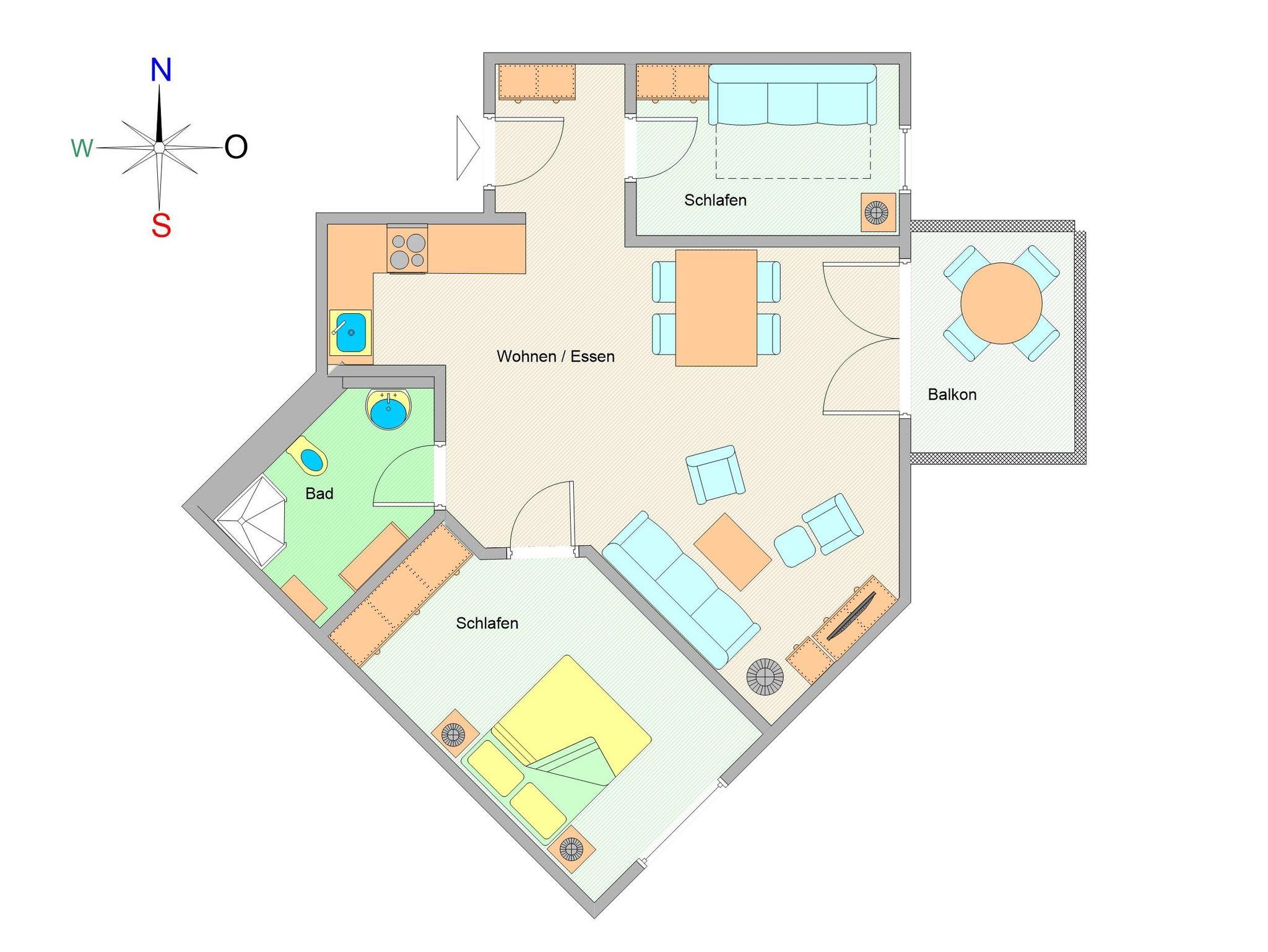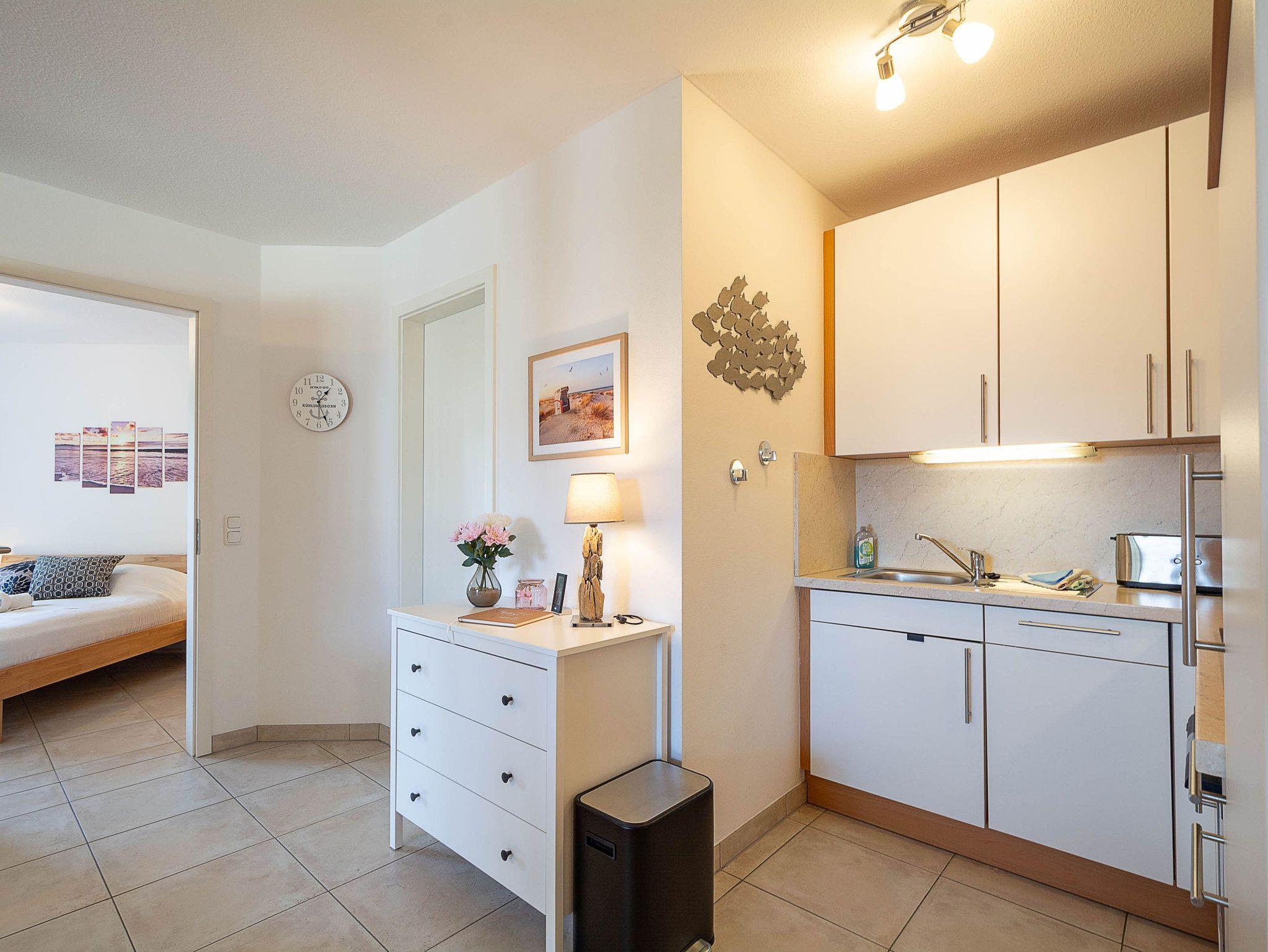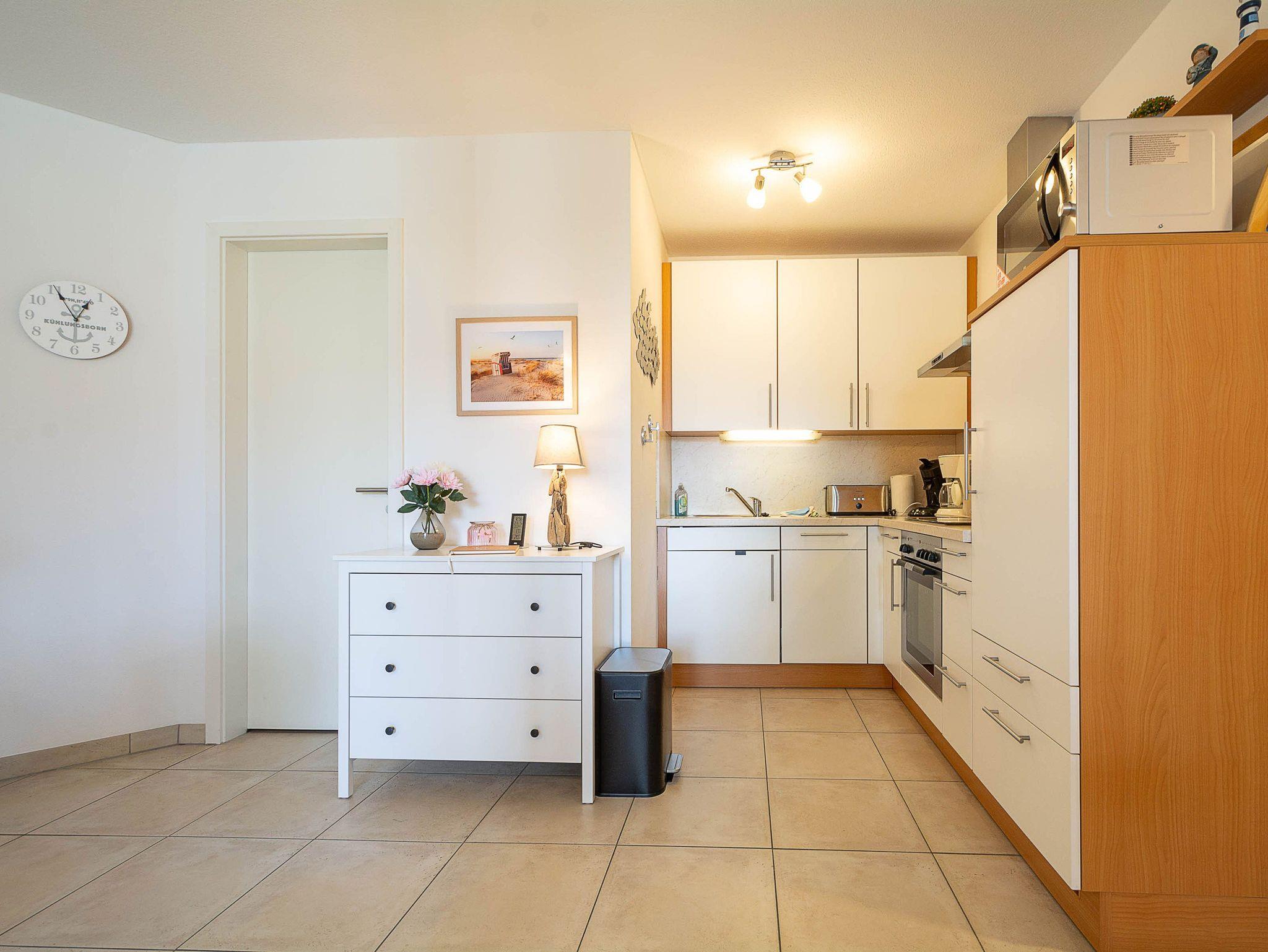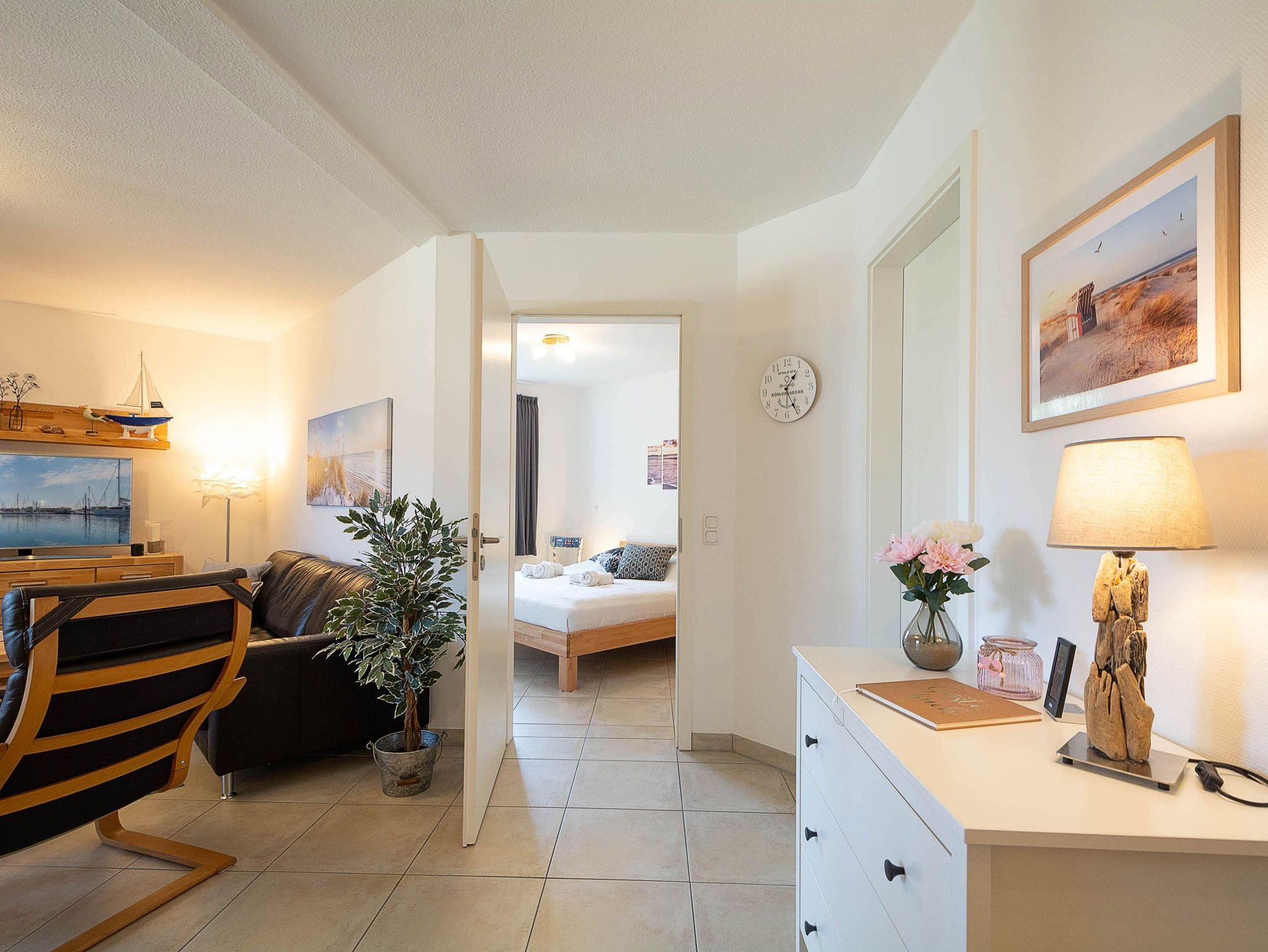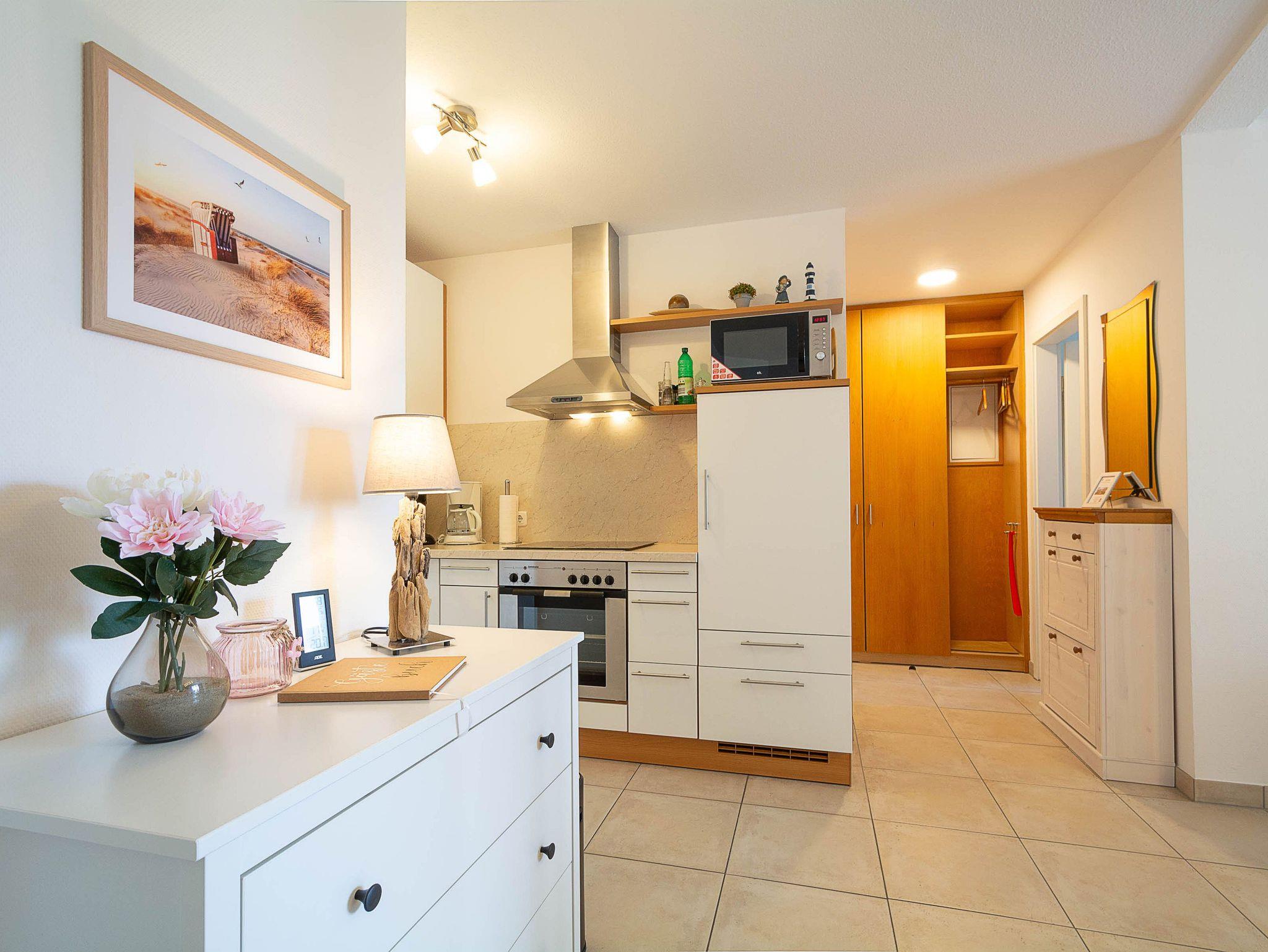Die Ferienwohnung verfügt über ein offenes Wohn- und Esszimmer mit integrierter Küchenzeile, zwei separate Schlafzimmer, ein modernes Badezimmer sowie einen möblierten Balkon mit Ostseeblick ? ideal, um den Tag bei einem Frühstück in der Morgensonne zu beginnen oder gemütlich ausklingen zu lassen.