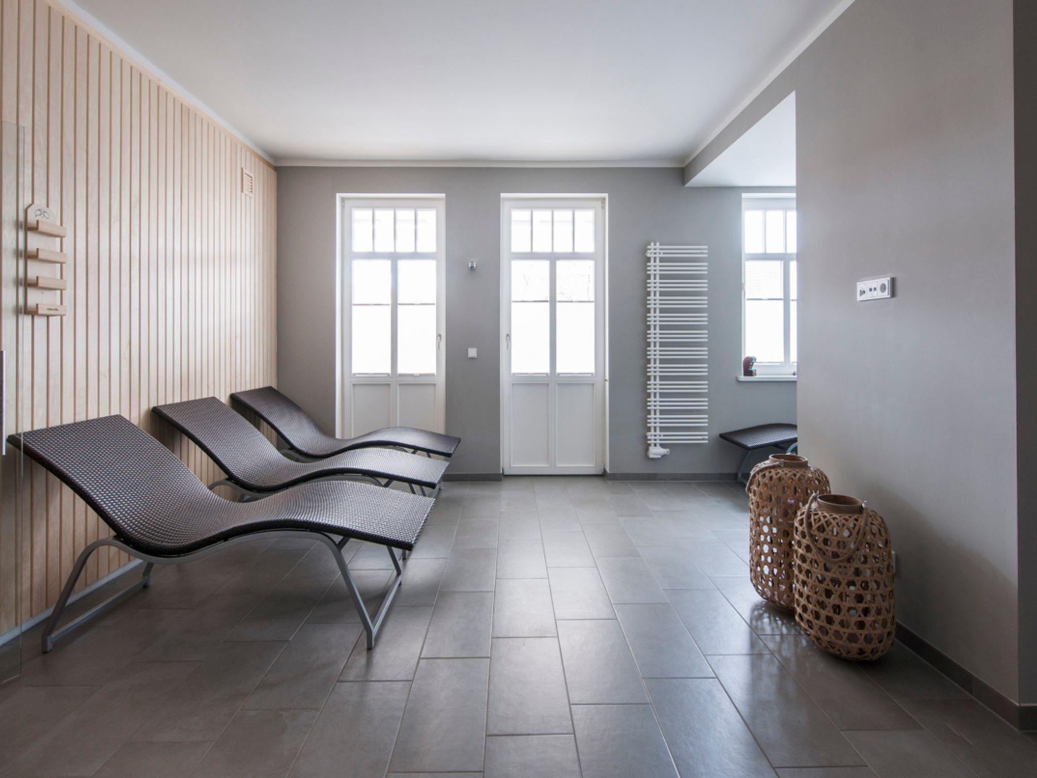 Zum Relaxen lädt der hochwertige Sauna- und Wellnessbereich ein, der sich im neuen Anbau der Villa befindet. Nach dem Saunagang können Sie sich im großzügigen Ruheraum erholen.