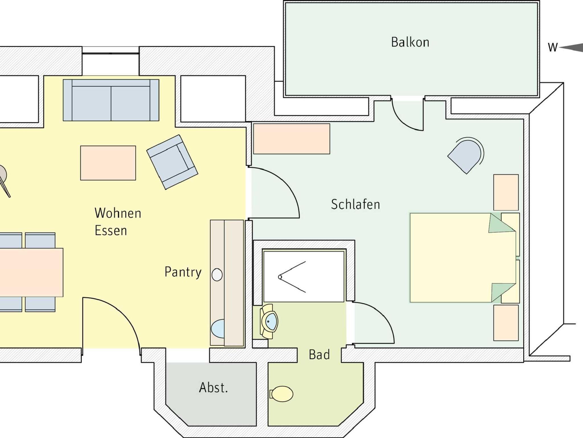 und Balkon mit Möbeln zur Nordseite.