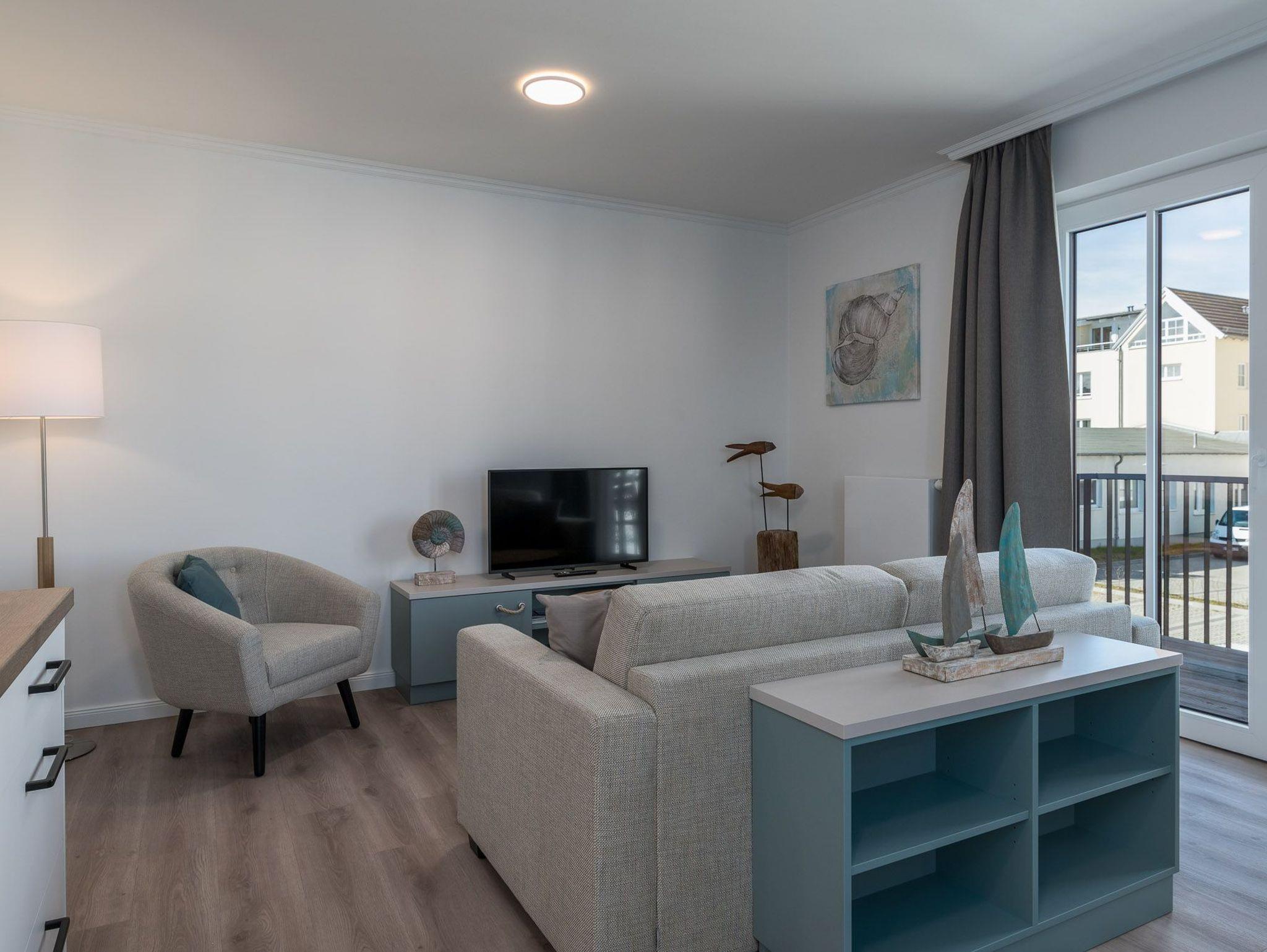 Das komfortabel eingerichtete Apartment liegt im ersten Stock und ist bequem über die Treppe oder den Aufzug zu erreichen. Es bietet mit seinen zwei Zimmern genügend Platz für 4 Personen. Außerdem verfügt es neben seiner Wohnfläche von ca. 60 qm, auch über einen nach Südwesten ausgerichteten Balkon. Dieser ist mit Balkonmöbeln und einem Sonnenschirm ausgestattet.