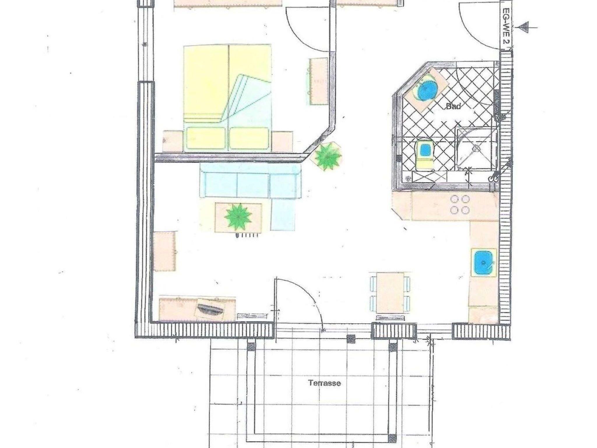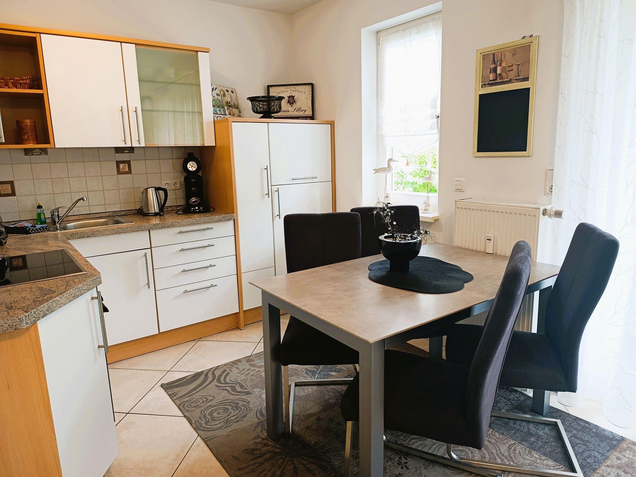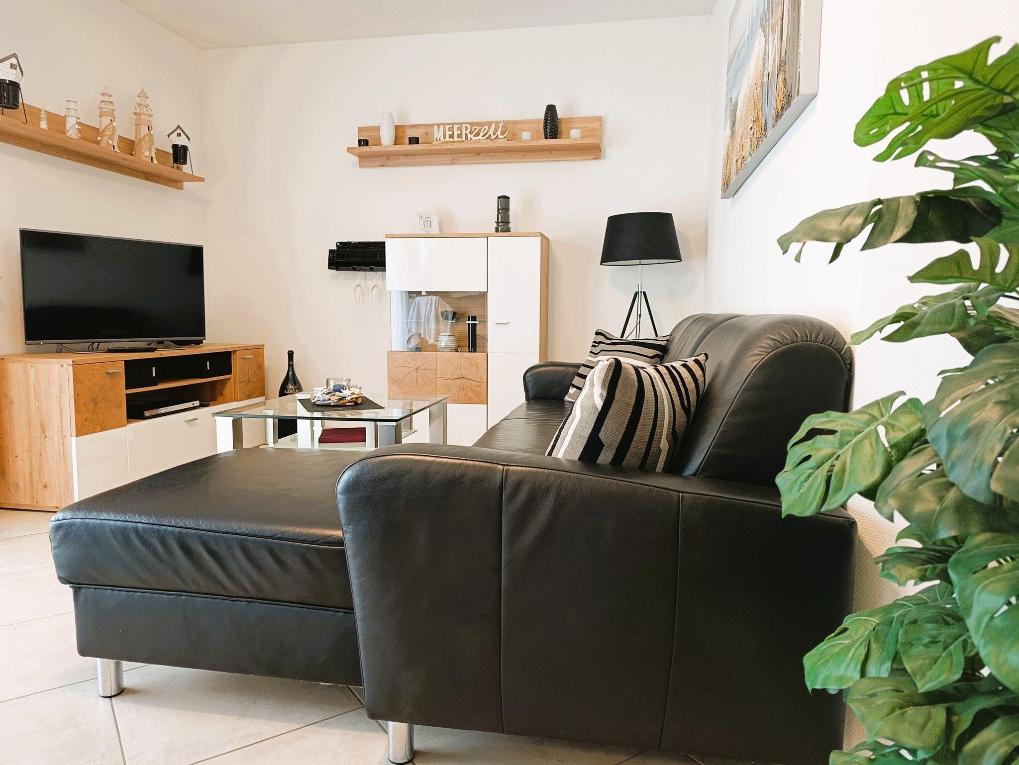 Nur 100 m vom Strand wohnen Sie in einer modern eingerichteten 2-Raum-Ferienwohnung. Die 45 qm große Wohnung liegt im Erdgeschoss. Das Wohnzimmer ist mit einer Schlafcouch, Couchtisch, Anrichte, Regal, Kabel-TV, Radio, Essbereich (Tisch und Stühle) und Küchenzeile ausgestattet. Die Terrasse geht zur Nordseite. Im Schlafzimmer stehen ein Doppelbett und ein Kleiderschrank. Die Küchenzeile wurde sehr modern ausgestattet mit Mikrowelle, Kühlschrank, Kaffeemaschine, Vierplattenherd mit Backofen, Toaster, Geschirrspüler und Wasserkocher. Das Bad mit Dusche und WC komplettiert die Wohnung.